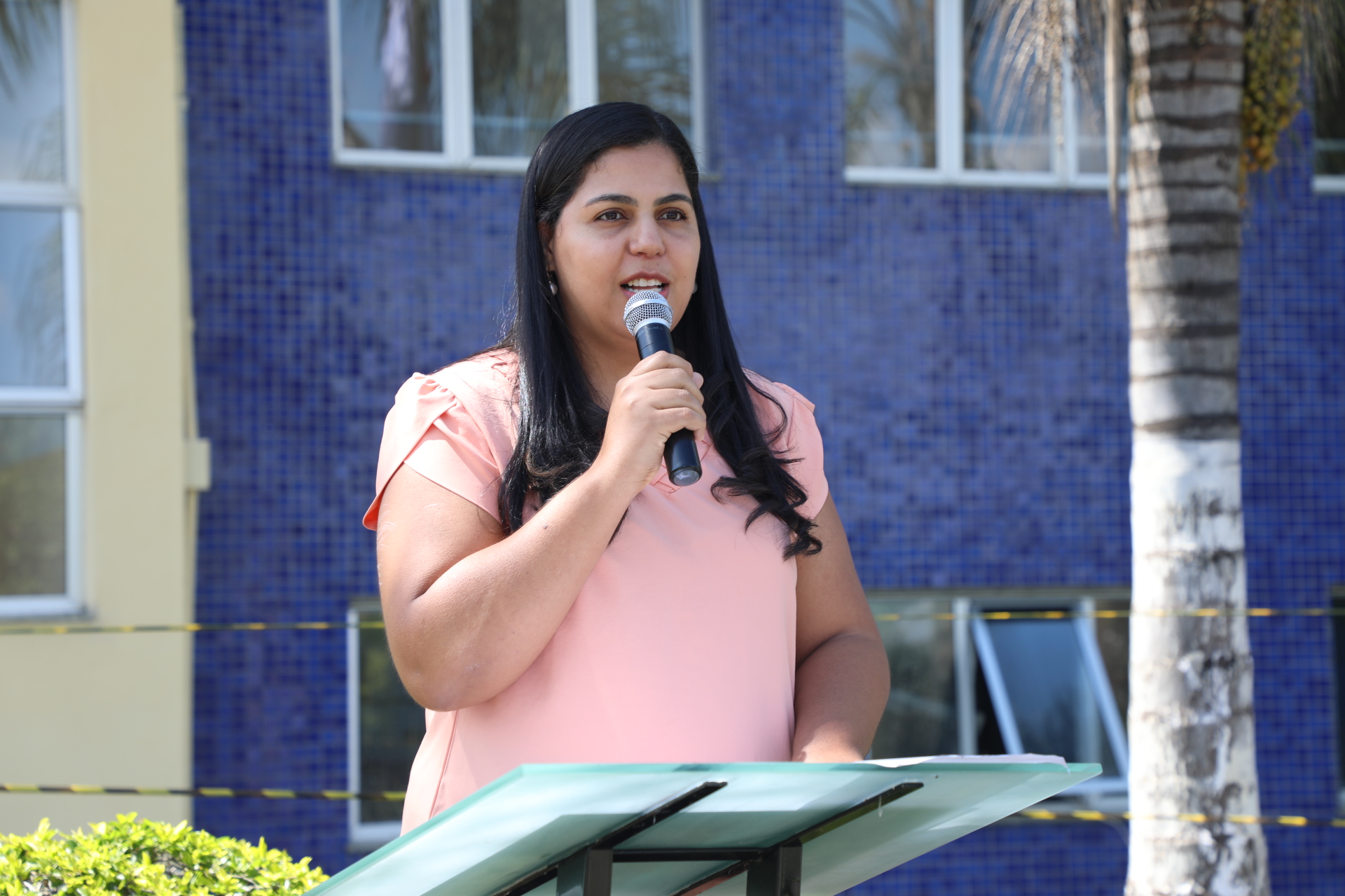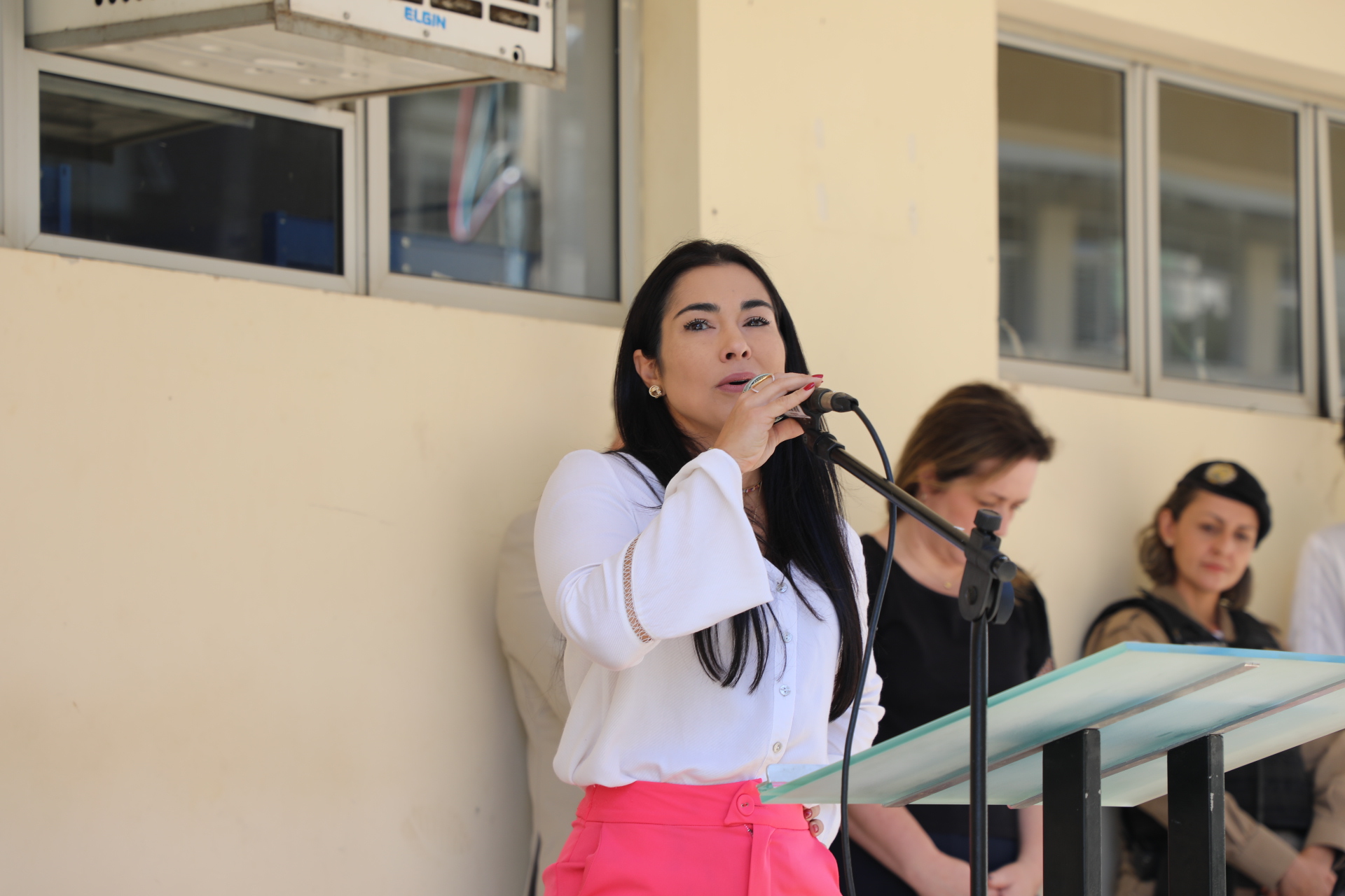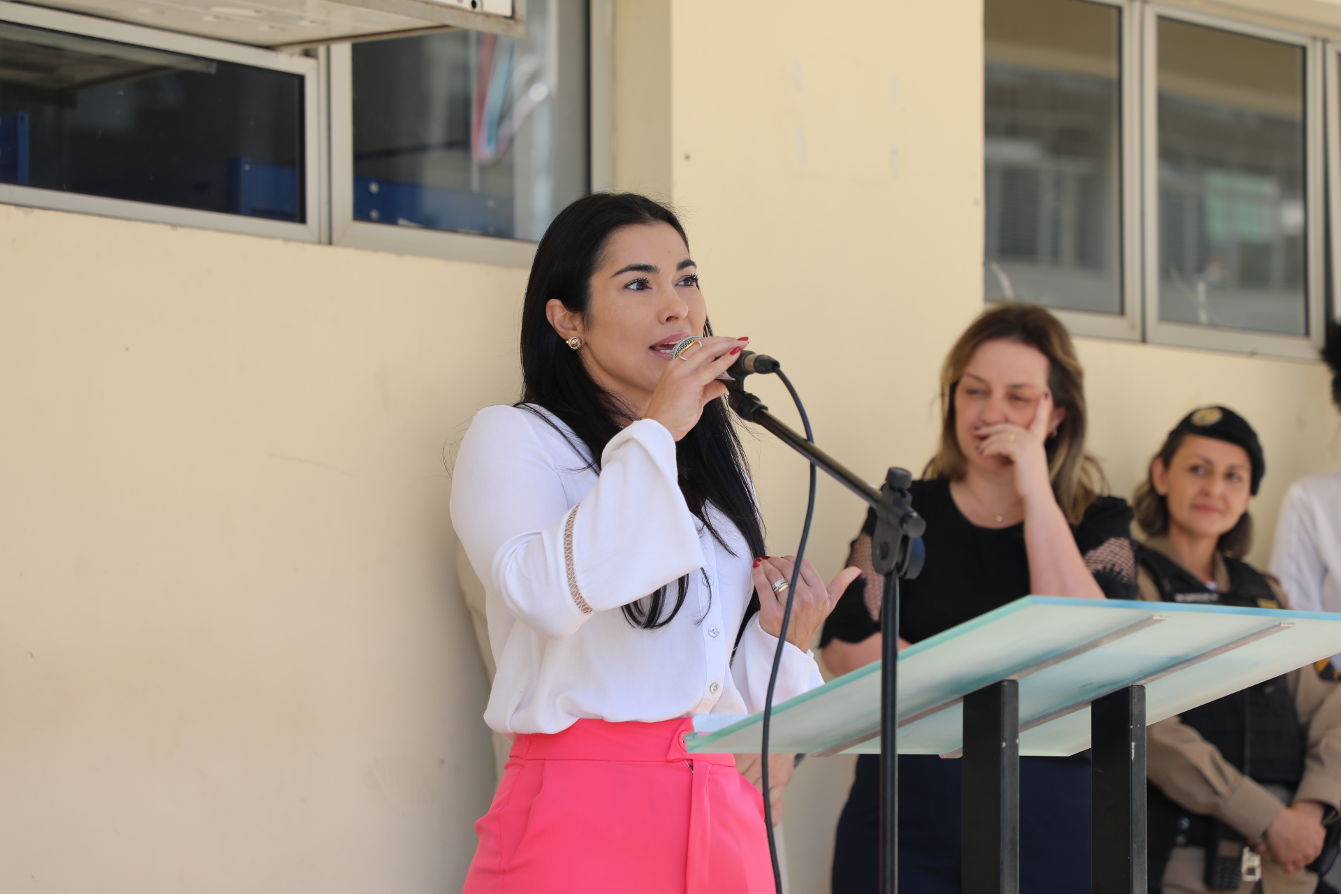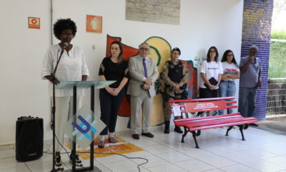 A técnica em educação Carla Cristina Esteves, integrante do grupo, falou com emoção sobre o que representa inaugurar um banco vermelho sendo mulher e o que representa lutar pelo feminicídio zero.