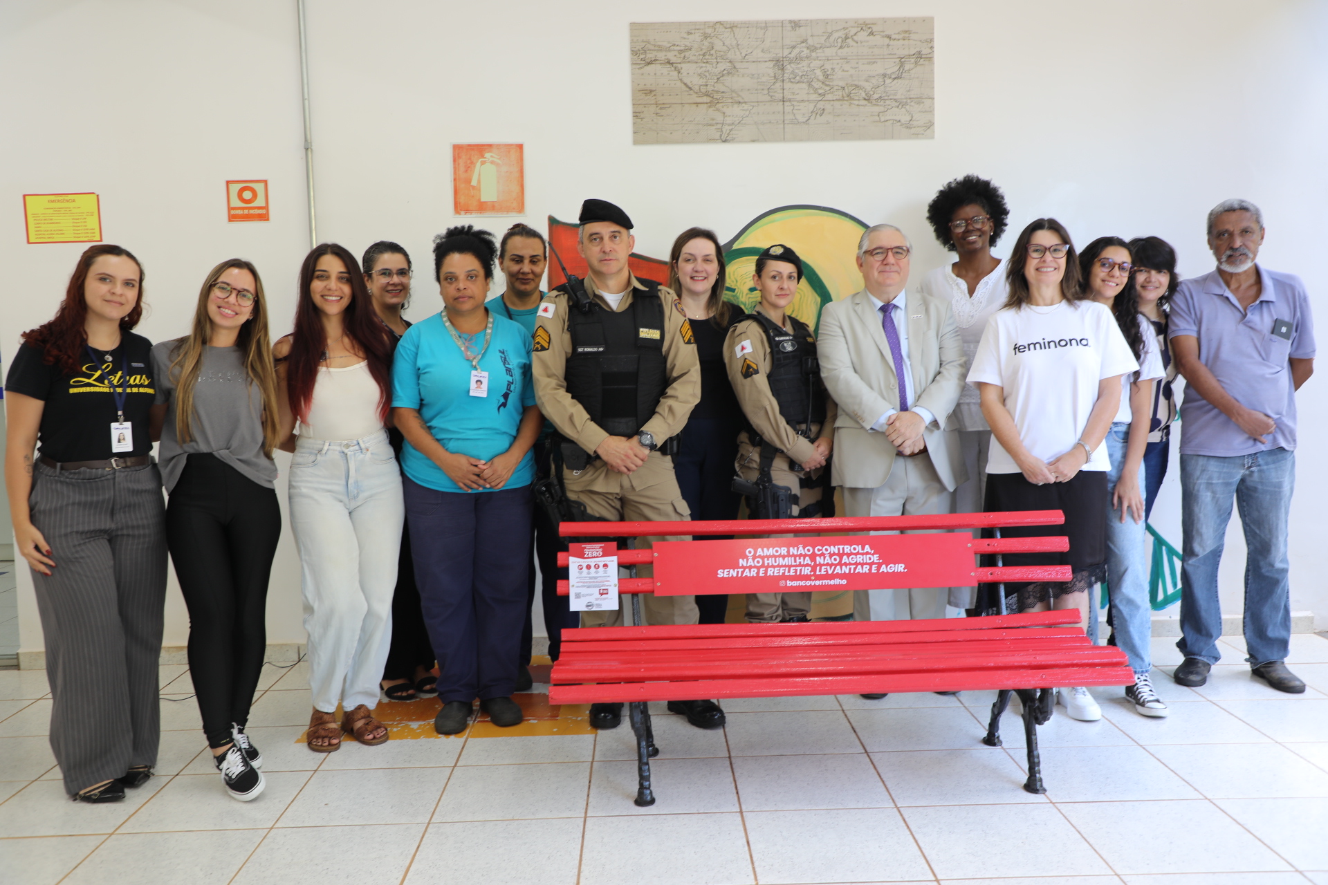 A instalação do banco vermelho na UNIFAL-MG fez parte de uma programação com início no dia 13 de março, no campus Poços de Caldas. No dia 16, a ação ocorreu em Alfenas, com cerimônias realizadas na Sede e na Unidade Santa Clara. O ciclo foi concluído nesta terça-feira, dia 17, no campus Varginha. Em todos os espaços, o banco vermelho passou a ocupar lugar visível e permanente, como forma de convocar a comunidade a “Sentar e Refletir, Levantar e Agir” – lema que atravessou todos os pronunciamentos das cerimônias realizadas na Universidade.