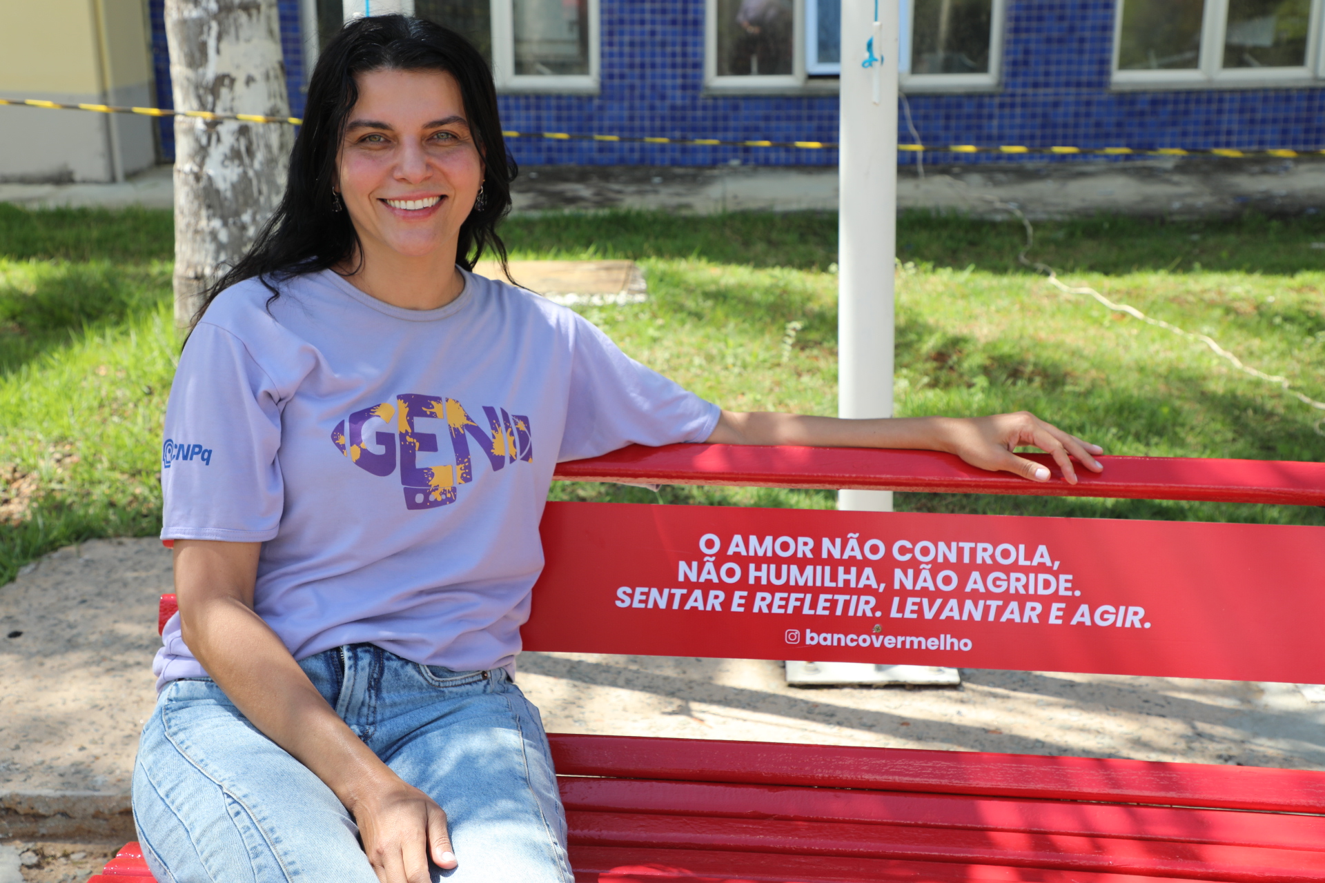 “O banco vermelho representa as mulheres que foram silenciadas pela violência, que não puderam continuar sonhando e existindo em nossa sociedade. Ele é um convite à reflexão e à conscientização. Todas as pessoas que nele se sentar poderão lembrar o que ele significa e e refletir sobre o enfrentamento da violência contra a mulher.”