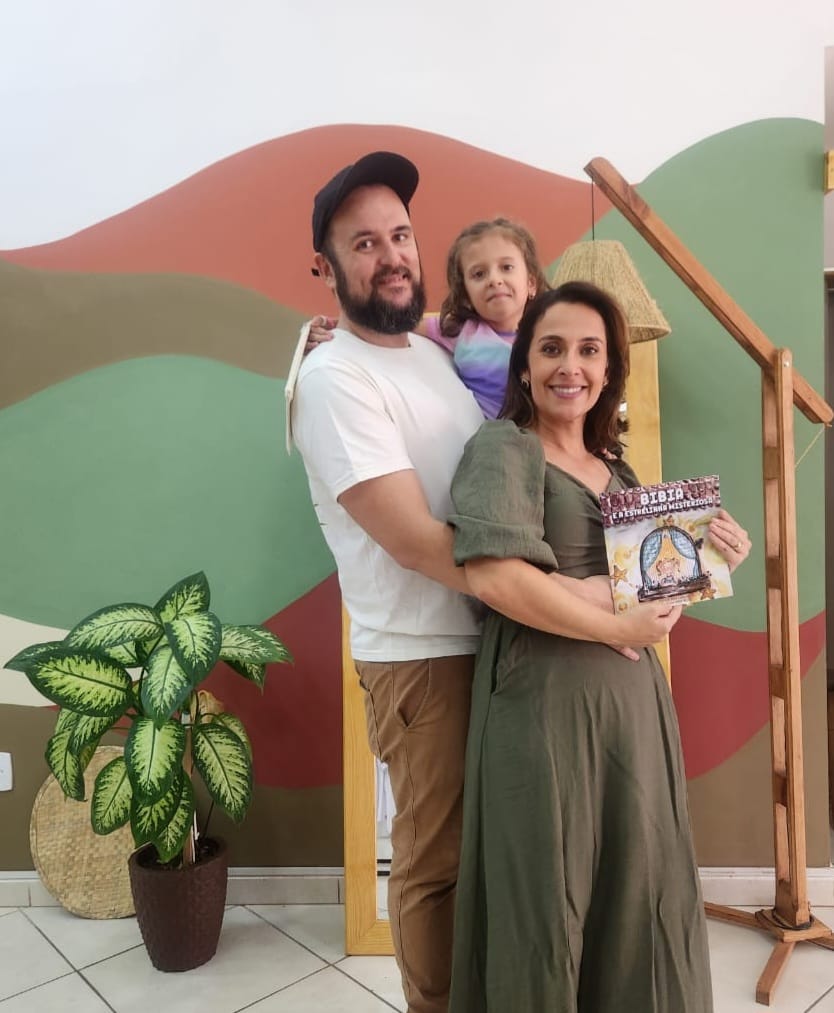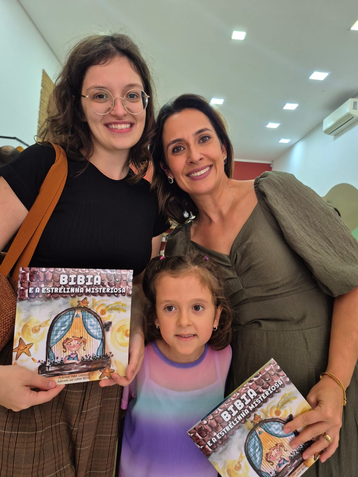 Luana Bruno, ilustradora; Flaviane Carvalho, autora; e Beatriz. (foto: arquivo pessoal)