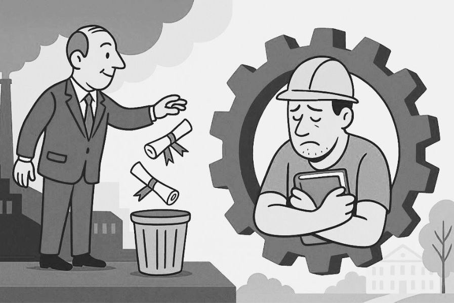 Recentemente, um político da direita brasileira, apontado por muitos como pré‑candidato à presidência da república em 2026, afirmou, ao anunciar a expansão do ensino técnico no ensino médio, que “o diploma cada vez tem menos relevância”. Para sustentar sua tese, ele listou uma série de competências e habilidades, todas requeridas para quem deseja concluir uma graduação, que seriam, segundo ele, mais valorizadas pelo mercado do que a formação de nível superior. Embora não tenha indicado nenhuma fonte de dados da realidade é plausível supor que estivesse apenas ressoando interpretações simplificadoras de notícias publicadas na imprensa sobre trajetórias de bilionários dos EUA.
