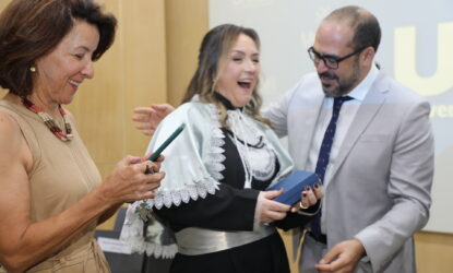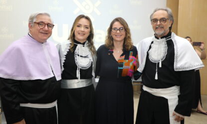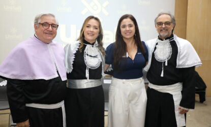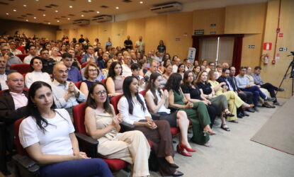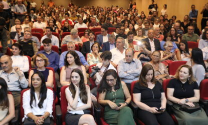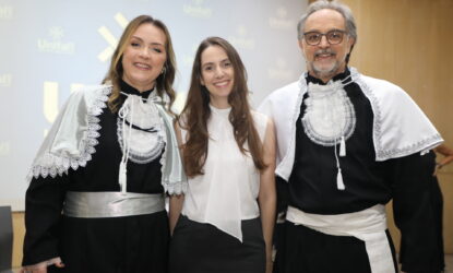 A professora Vanessa Boralli Marques emocionou o público ao assumir a Vice-Reitoria com um discurso marcado por gratidão e sensibilidade. “Eu recebo do fundo do coração essa missão, com gratidão pela confiança que a comunidade acadêmica nos depositou” , disse.