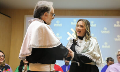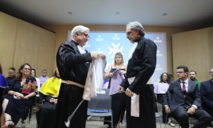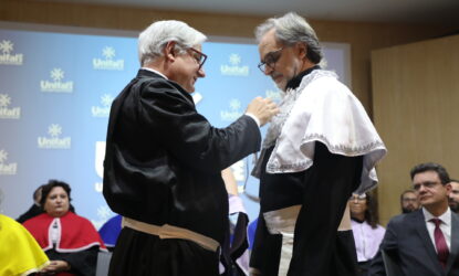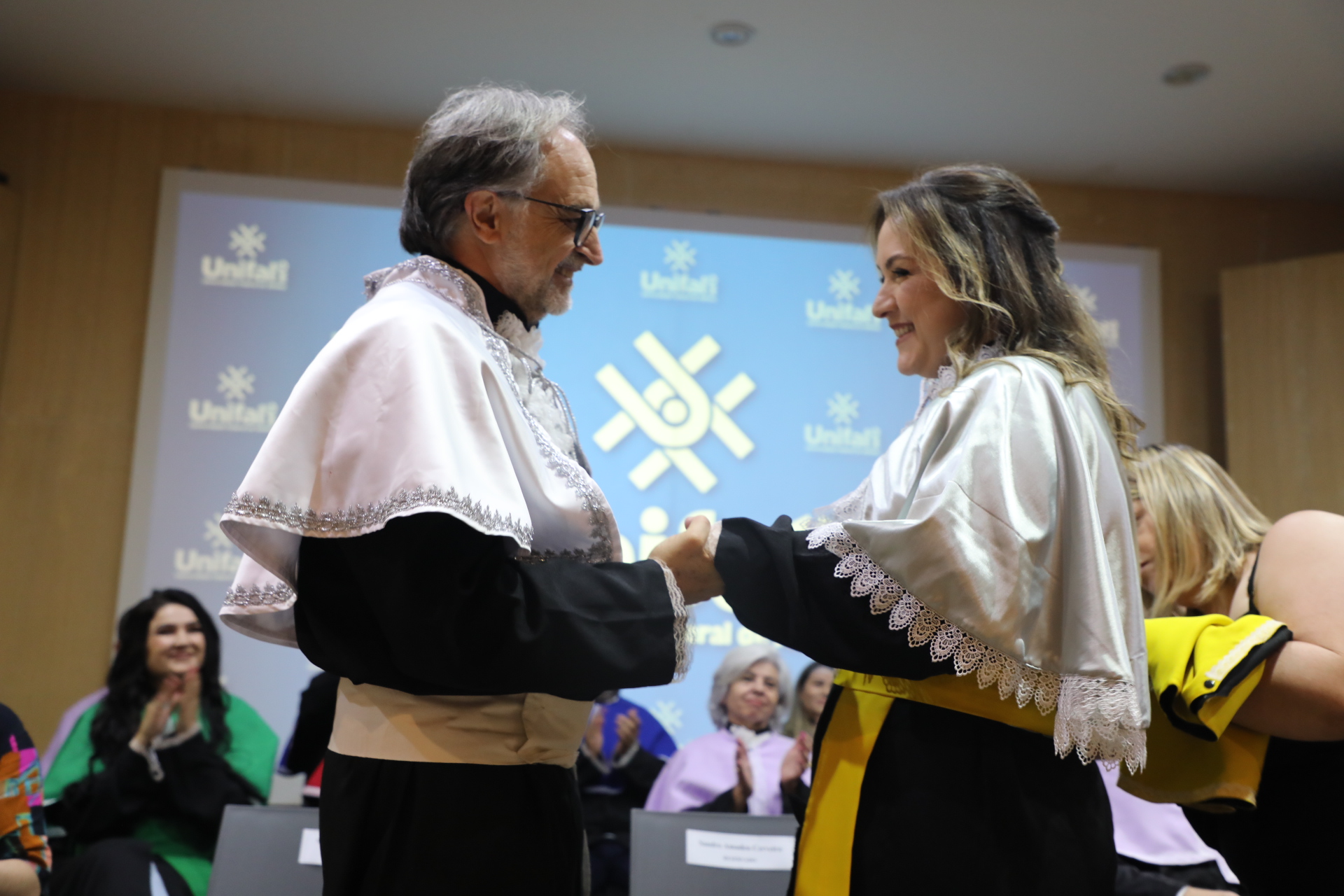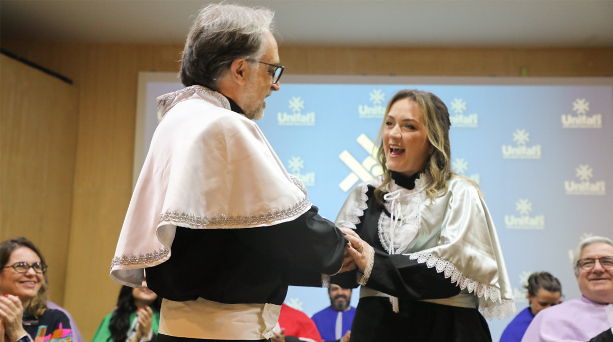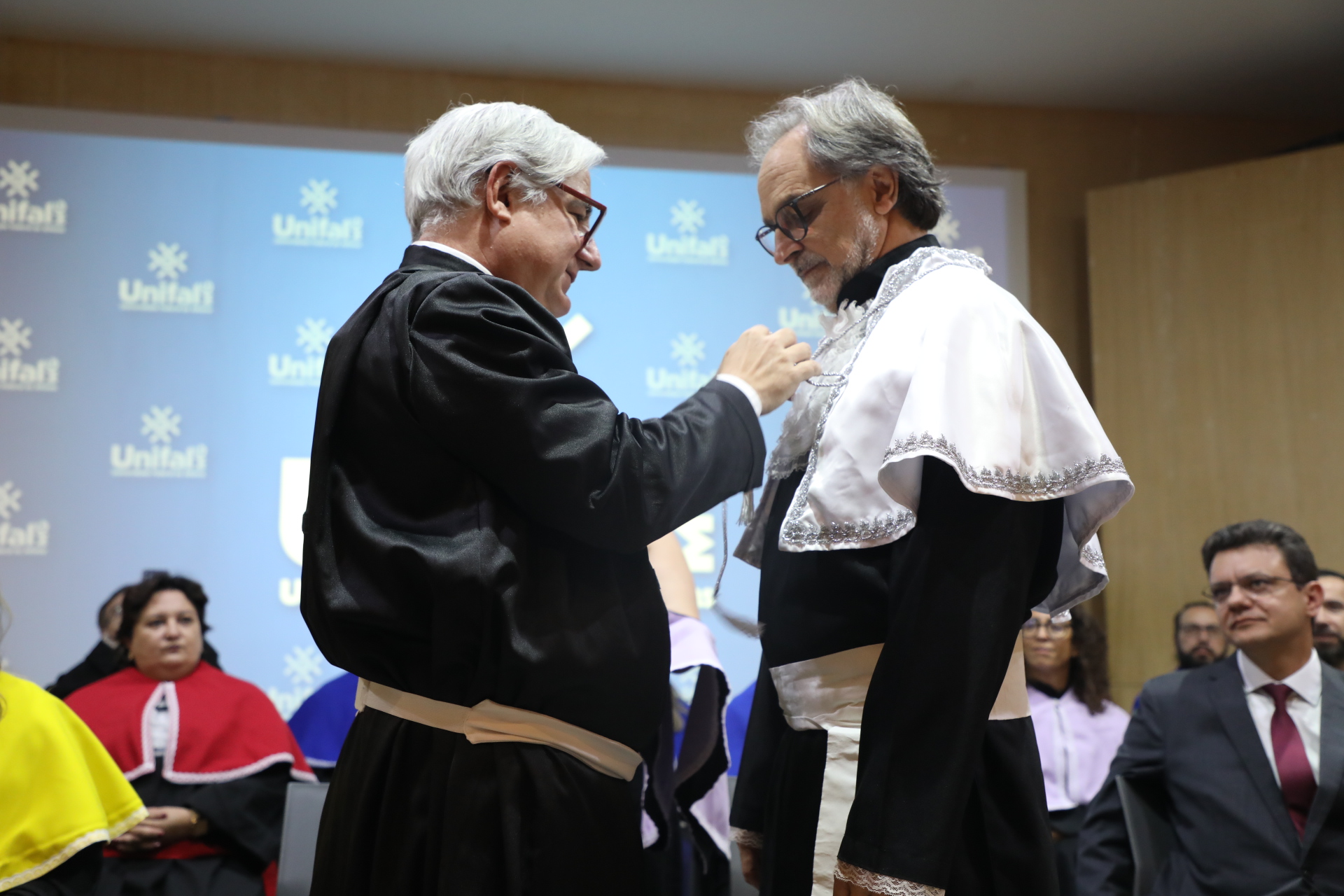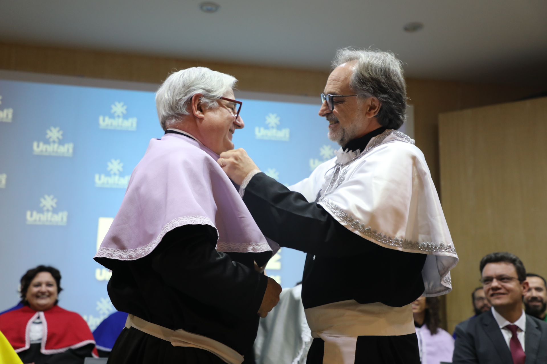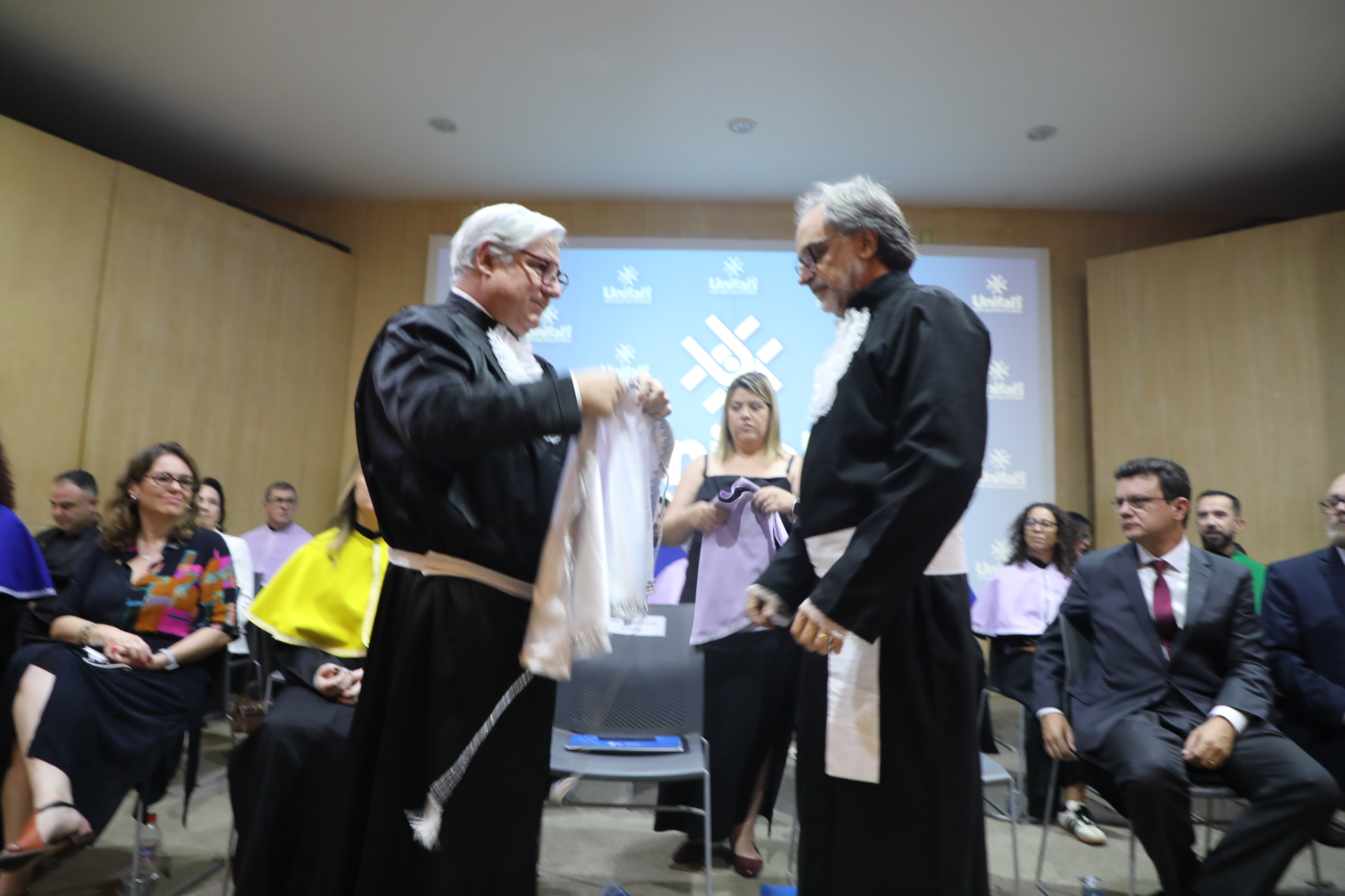 Momento simbólico da investidura foi marcado pela troca das vestes talares – um gesto que remete às origens medievais das universidades europeias