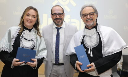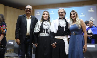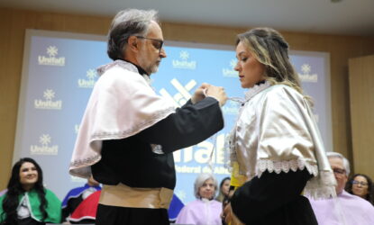 Em cerimônia que foi ao mesmo tempo despedida e promessa, o professor Alessandro Antônio Costa Pereira assumiu o cargo de reitor da UNIFAL-MG para o mandato 2026-2030, posto que ajudou a moldar por oito anos como vice-reitor do professor Sandro Amadeu Cerveira. Ao seu lado, a professora Vanessa Bergamin Boralli Marques, que também participou da gestão anterior como pró-reitora de Pesquisa e Pós-Graduação, foi empossada vice-reitora. A solenidade aconteceu na tarde de sexta-feira, 27 de março, no auditório Leão de Faria, em Alfenas, e foi transmitida ao vivo pelo canal da UNIFAL-MG no YouTube, com retransmissão no hall do Prédio V.