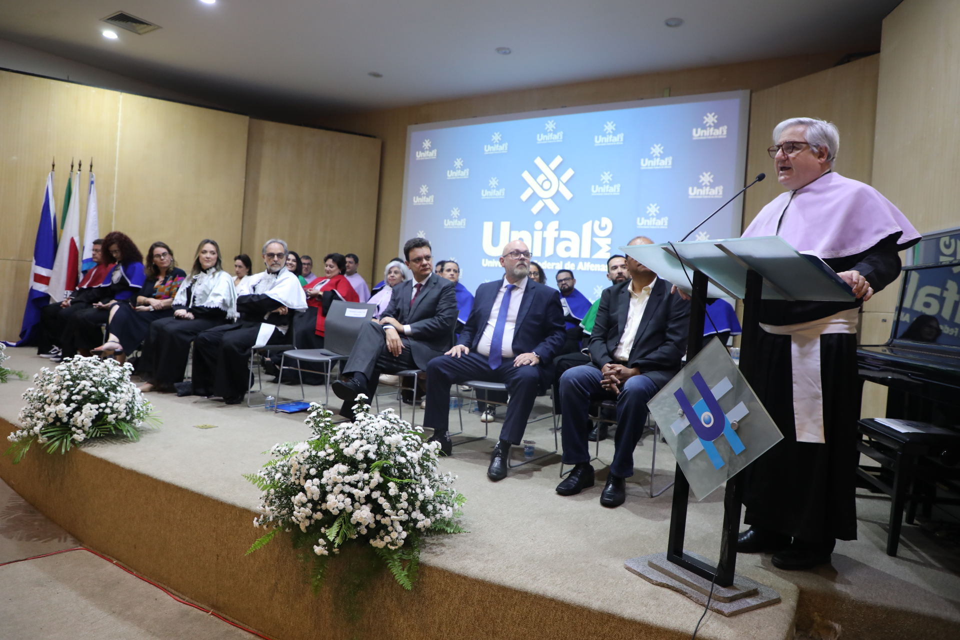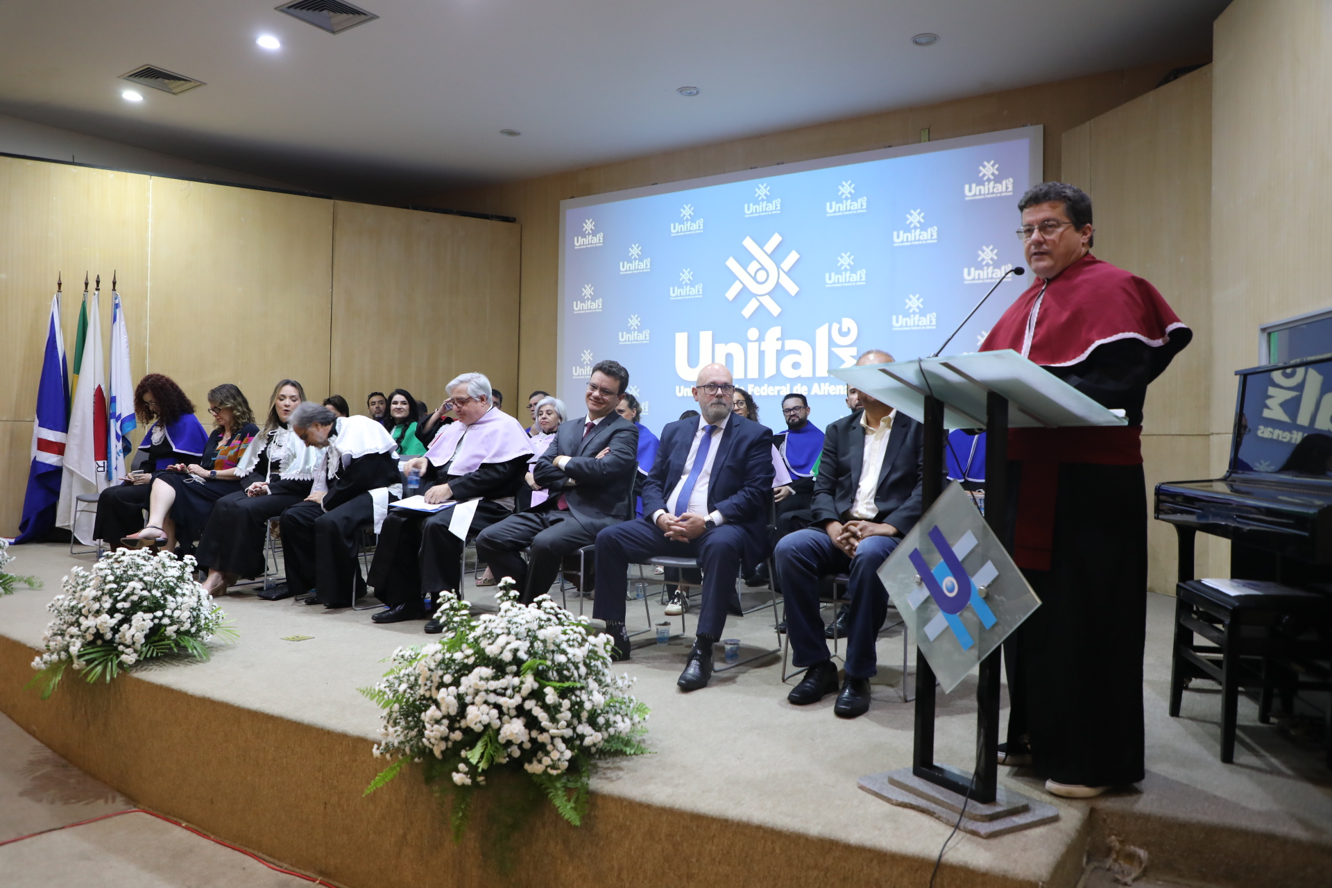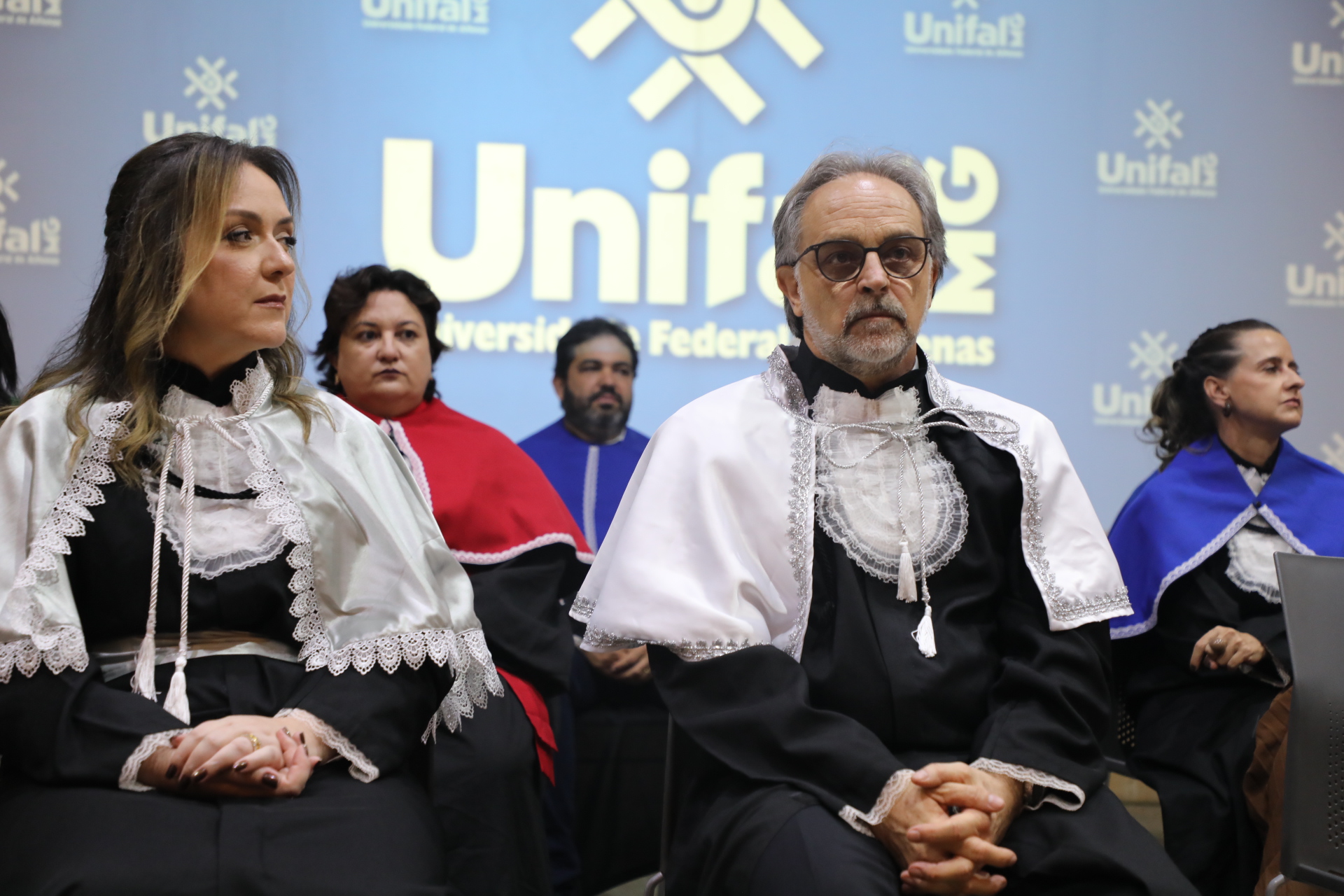 Ao relembrar sua trajetória na Instituição, reforçou a identidade construída com a UNIFAL-MG e o papel da comunidade acadêmica nesse percurso. “Estou vinculado a esta Universidade há 28 anos, tempo bastante para nos conhecermos, apesar de ela continuar nos surpreendendo com suas transformações”, disse.