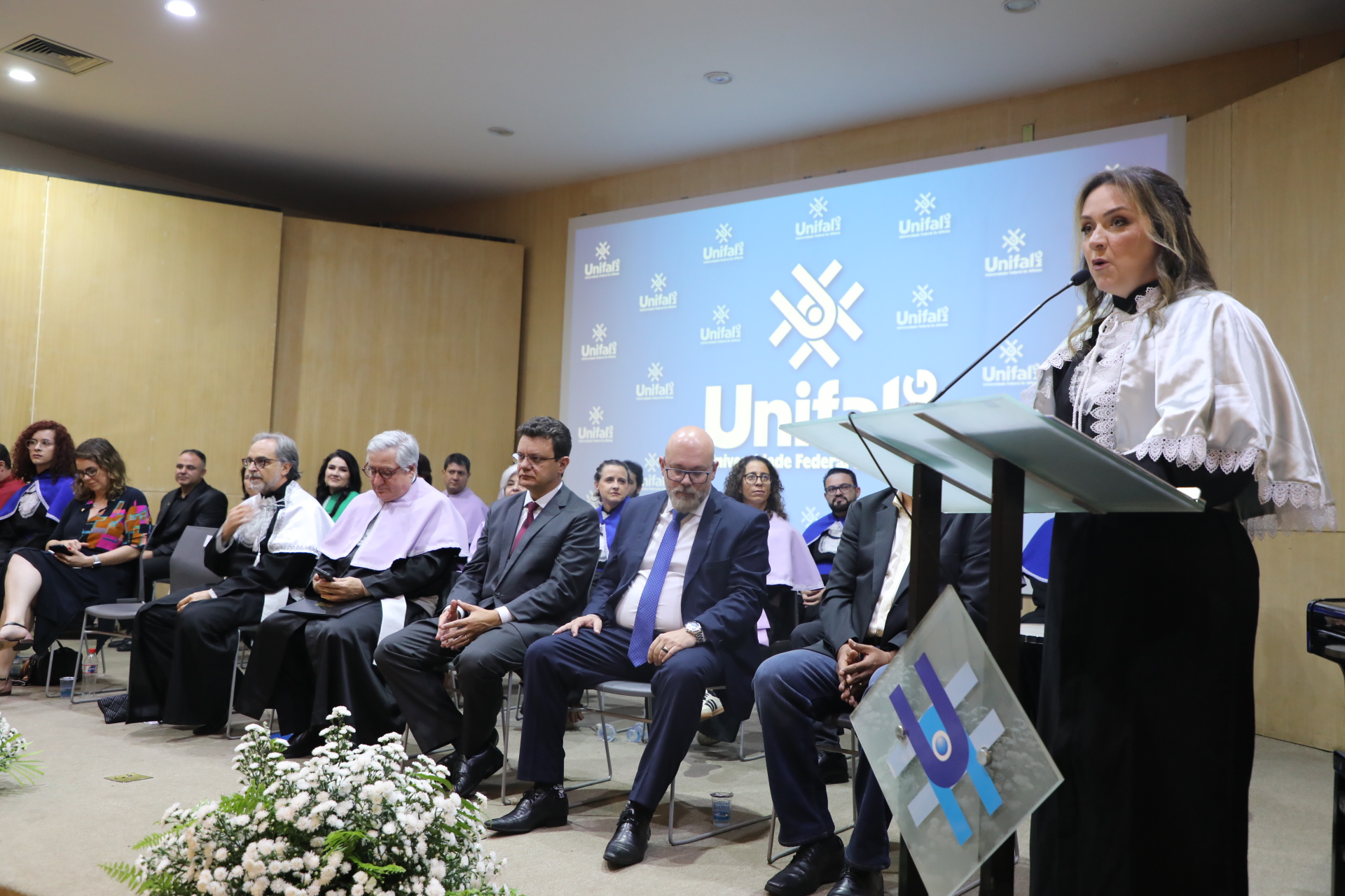 Ao enfatizar o caráter coletivo da gestão, ressaltou a importância do diálogo e da construção conjunta. “Compartilho esse projeto de Universidade, um projeto coletivo construído com diálogo, com escuta e muito trabalho”, comentou.