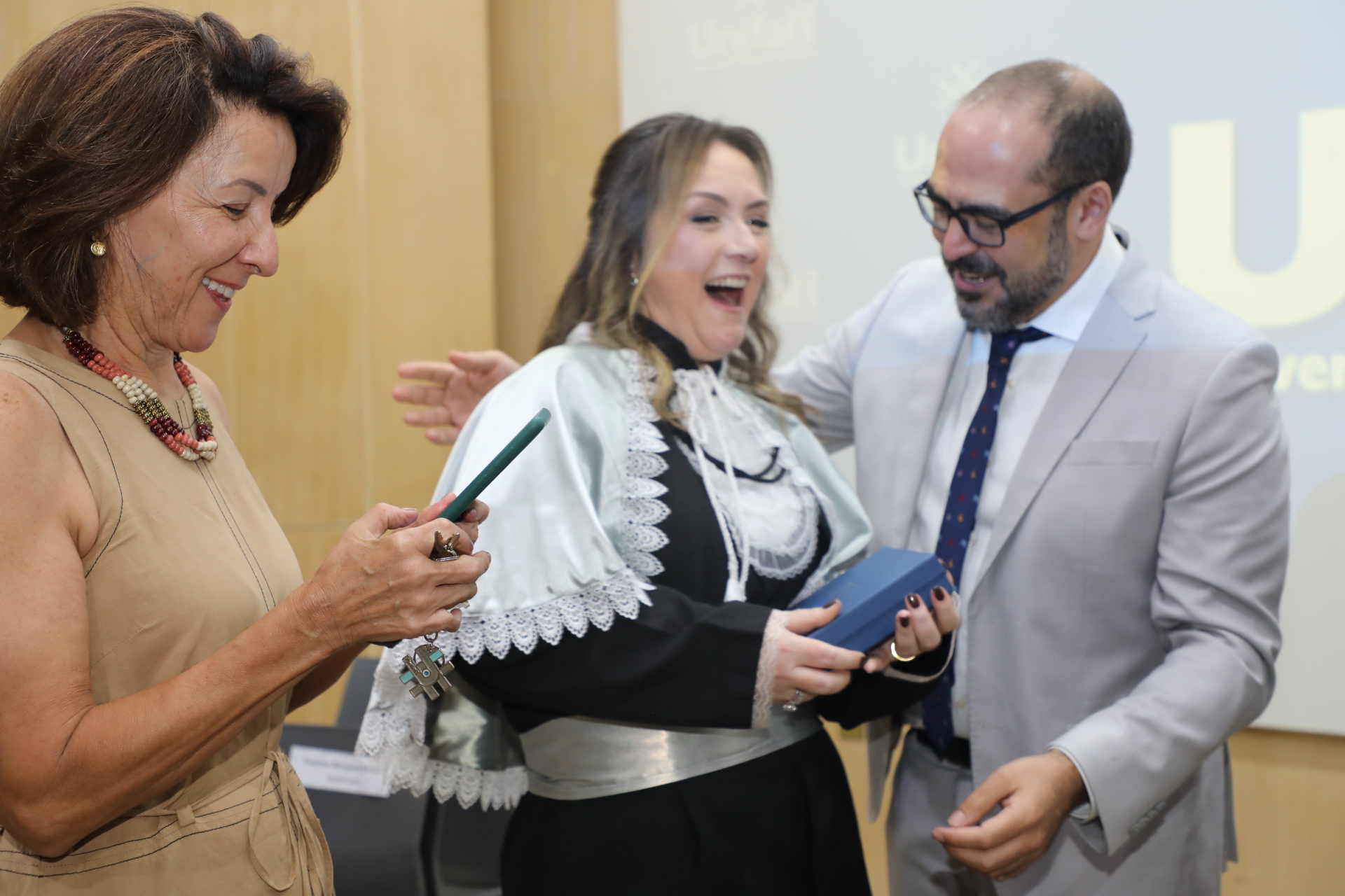 A vice-reitora também destacou o eixo central da nova administração, ao destacar a permanência e o pertencimento. “A permanência não é só ficar. É pertencimento, é sentir-se parte, é crescer junto com a universidade.”