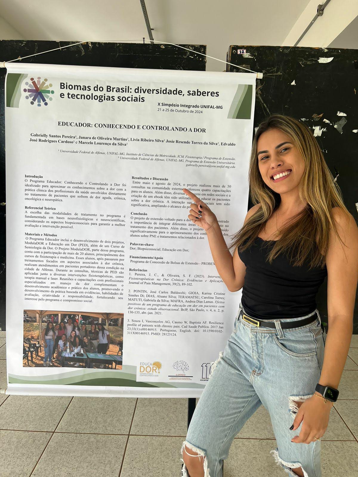 Além disso, a UNIFAL-MG é referência na região e sempre admirei a seriedade do trabalho desenvolvido na Universidade. Outro ponto que me motivou muito foi a possibilidade de me envolver cedo com pesquisa científica. Hoje, atuando no Laboratório de Neurociência, Neuromodulação e Estudo da Dor (LANNED), vejo que fiz a escolha certa, foi um espaço onde eu consegui unir a curiosidade científica, prática clínica e vontade de contribuir para a área da dor e da neuromodulação.
