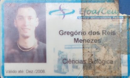 A descoberta e o interesse pelas áreas de zoologia e ecologia, o estágio com a professora Érica Hasui, do Instituto de Ciências da Natureza (ICN) da UNIFAL-MG, e a bolsa trabalho, para ele, foram os momentos mais importantes da graduação. Gregório Menezes também foi bolsista de iniciação científica, participou do grupo Laboratório de Ecologia de Fragmentos Florestais (Ecofrag), atuou durante toda a graduação no centro acadêmico e no projeto de extensão Maracatu Muiraquitã. “Tive professores, colegas de sala e de república maravilhosos. Joguei bastante vôlei e basquete em uma quadra que já não existe mais e aproveitei as muitas festas que sempre aconteciam”, complementa.