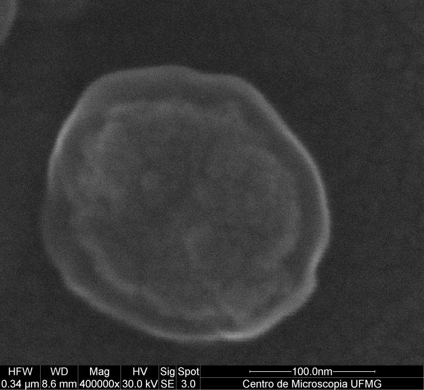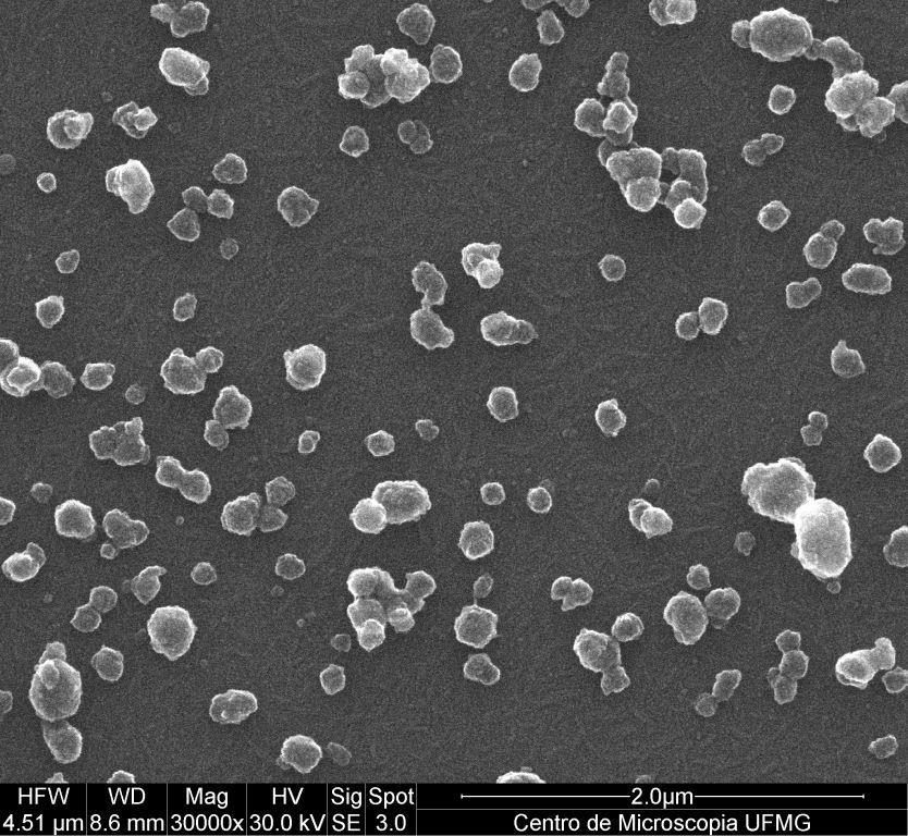 Nanopartículas contendo o bacteriófago encapsulado. (Imagens: Reprodução/Grupo de pesquisa)