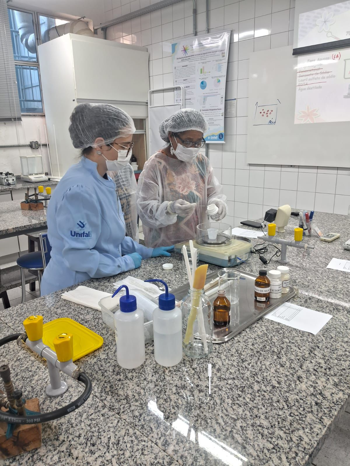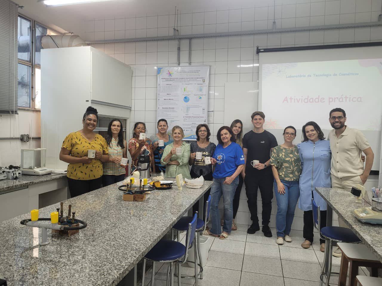 No dia 18/11, o Laboratório de Tecnologia de Cosméticos da Faculdade de Ciências Farmacêuticas da UNIFAL‑MG recebeu participantes da Universidade Aberta para a Terceira Idade (UNALIS) para a oficina “Autocuidado e responsabilidade: cosmetologia na terceira idade e educação ambiental sobre contaminantes emergentes”. A atividade extensionista, alinhada ao Plano de Desenvolvimento Institucional da Universidade, promoveu um diálogo entre ciência e cotidiano e reforçou o compromisso da Instituição com o envelhecimento ativo, a preservação do meio ambiente e o ensino público de qualidade.