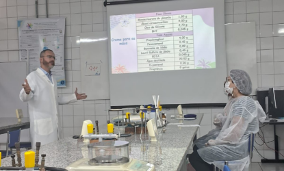 A doutoranda Daniela Mayra de Oliveira Figueiredo relatou que a oficina começou com palestras sobre descarte correto de medicamentos e cosméticos. Ela e a colega Lais de Castro Carvalho Silva apresentaram os diferentes tipos de cosméticos e a legislação da Anvisa. “Foi gratificante ver a dedicação e curiosidade de cada participante durante a manipulação do creme para as mãos”, disse.