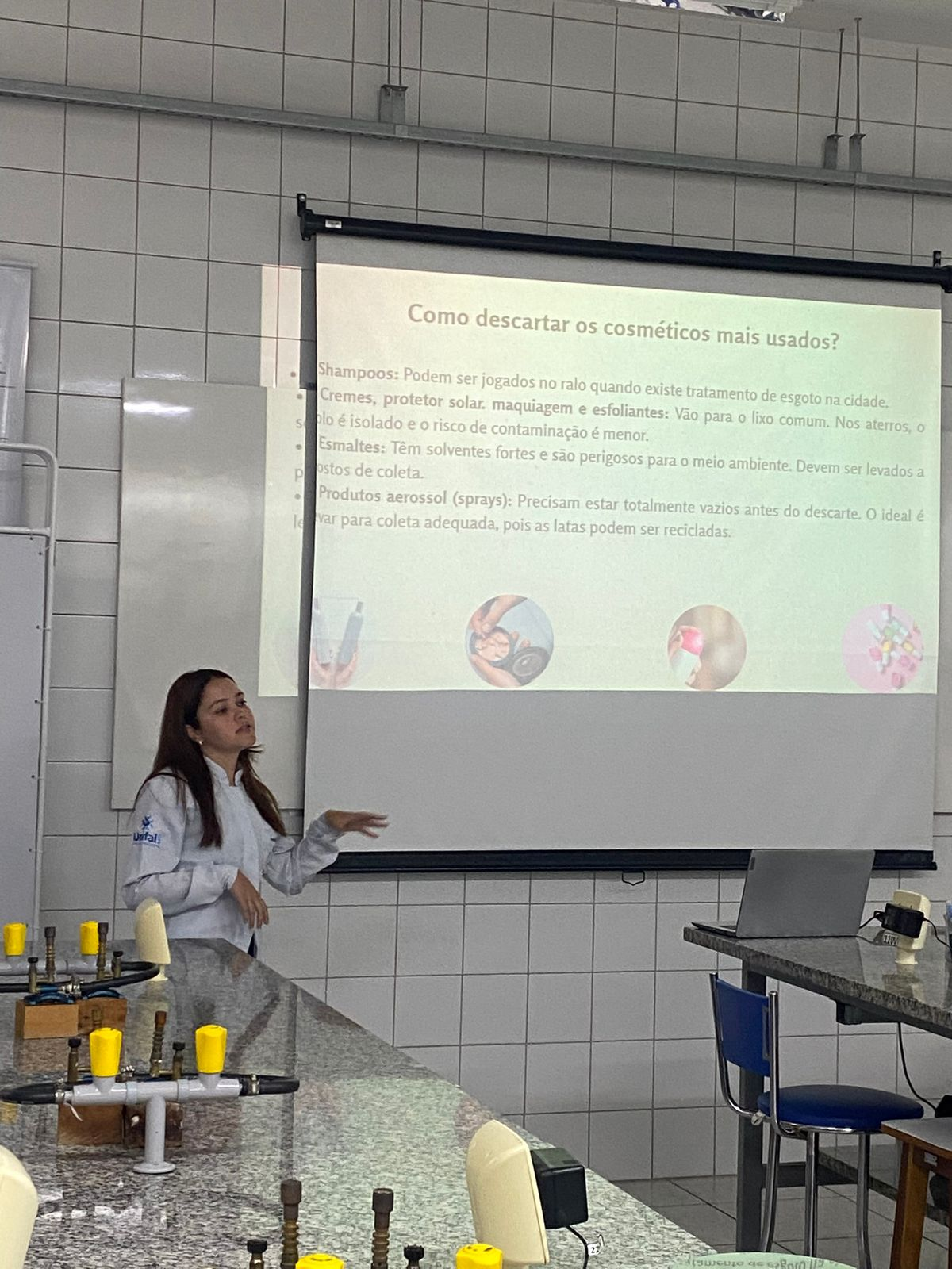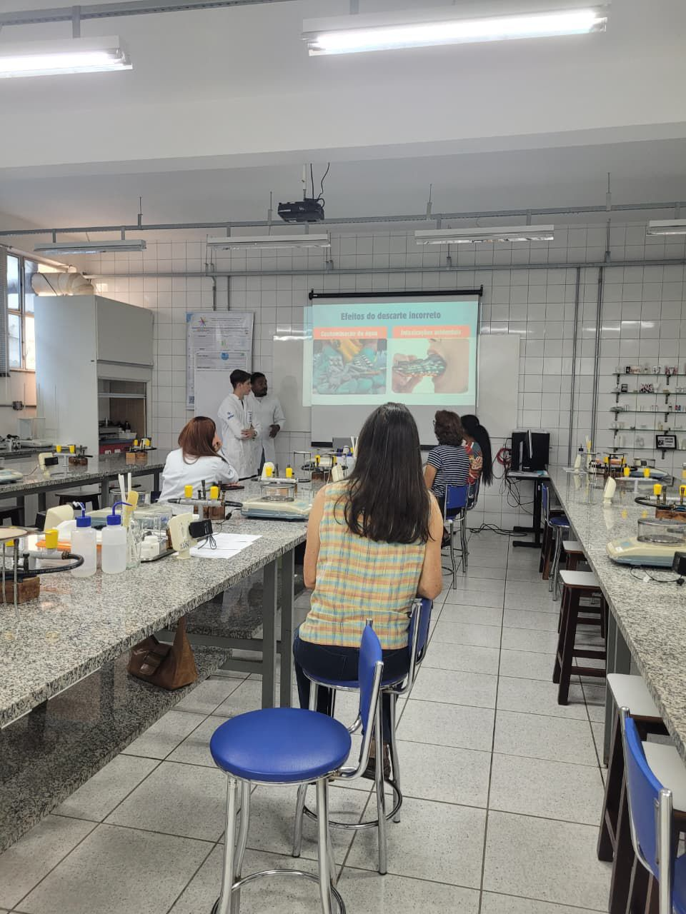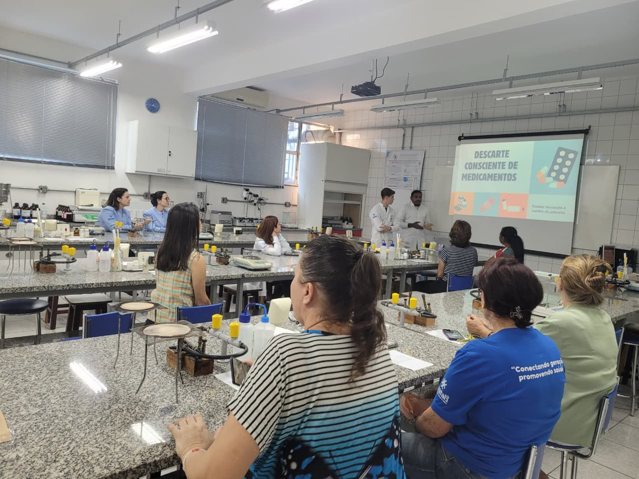 Lais enfatizou que a troca de conhecimentos foi enriquecedora: “As opiniões e dúvidas das participantes mostraram como precisamos levar o conhecimento científico à população para que saibam da importância de descartar resíduos de maneira correta e preservar o meio ambiente.” Para ela, a parte prática de manipulação foi a mais interessante, pois permitiu interação direta e a percepção do interesse das participantes.