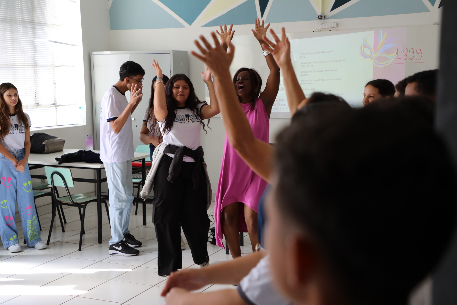 “Em uma das oficinas realizadas, foi muito interessante ouvirmos uma das professoras e os(as) estudantes relatarem que fizeram com Chiquinha Gonzaga o mesmo que ocorreu com Machado de Assis, pois por muito tempo ambos foram apresentados como pessoas brancas. As professoras e os(as) estudantes destacaram que gostaram de saber que Chiquinha Gonzaga era negra e conhecer sua trajetória de vida”, contou a professora Ana Lúcia da Silva.