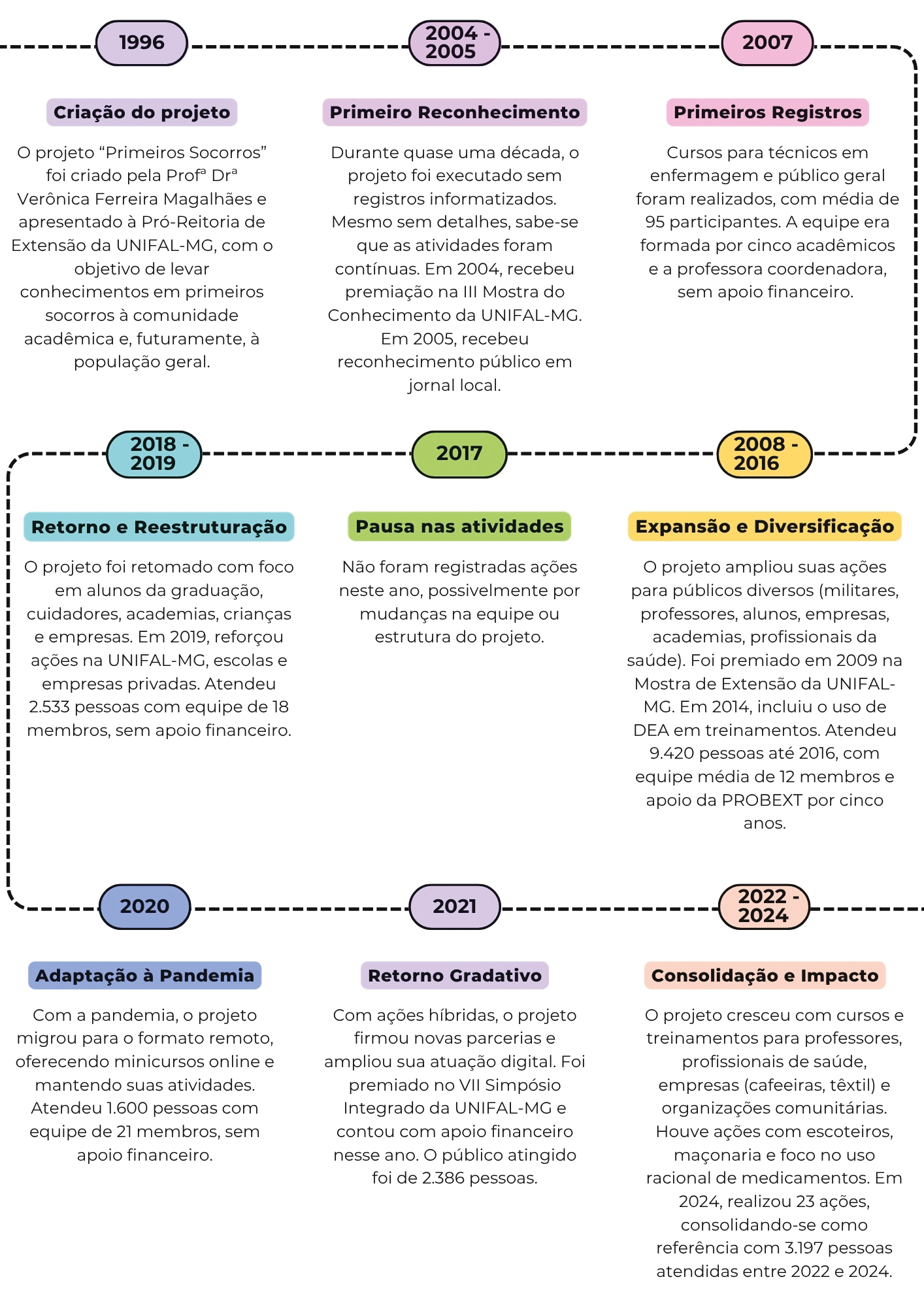Entre cursos, minicursos, oficinas, palestras, treinamentos e eventos comunitários, o projeto contabilizou 158 atividades realizadas ao longo desses quase 30 anos. Além disso, capacitou diretamente mais de 19.200 pessoas, de diferentes faixas etárias e perfis profissionais. A maior parte do público atendido é composta por adultos entre 25 e 59 anos, mas as ações alcançam também adolescentes, jovens, crianças e idosos, em contextos educacionais, comunitários e profissionais.