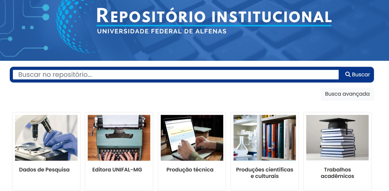 O Repositório Institucional está disponível na página do Sistema de Bibliotecas ou diretamente no endereço eletrônico: https://repositorio.unifal-mg.edu.br/home.