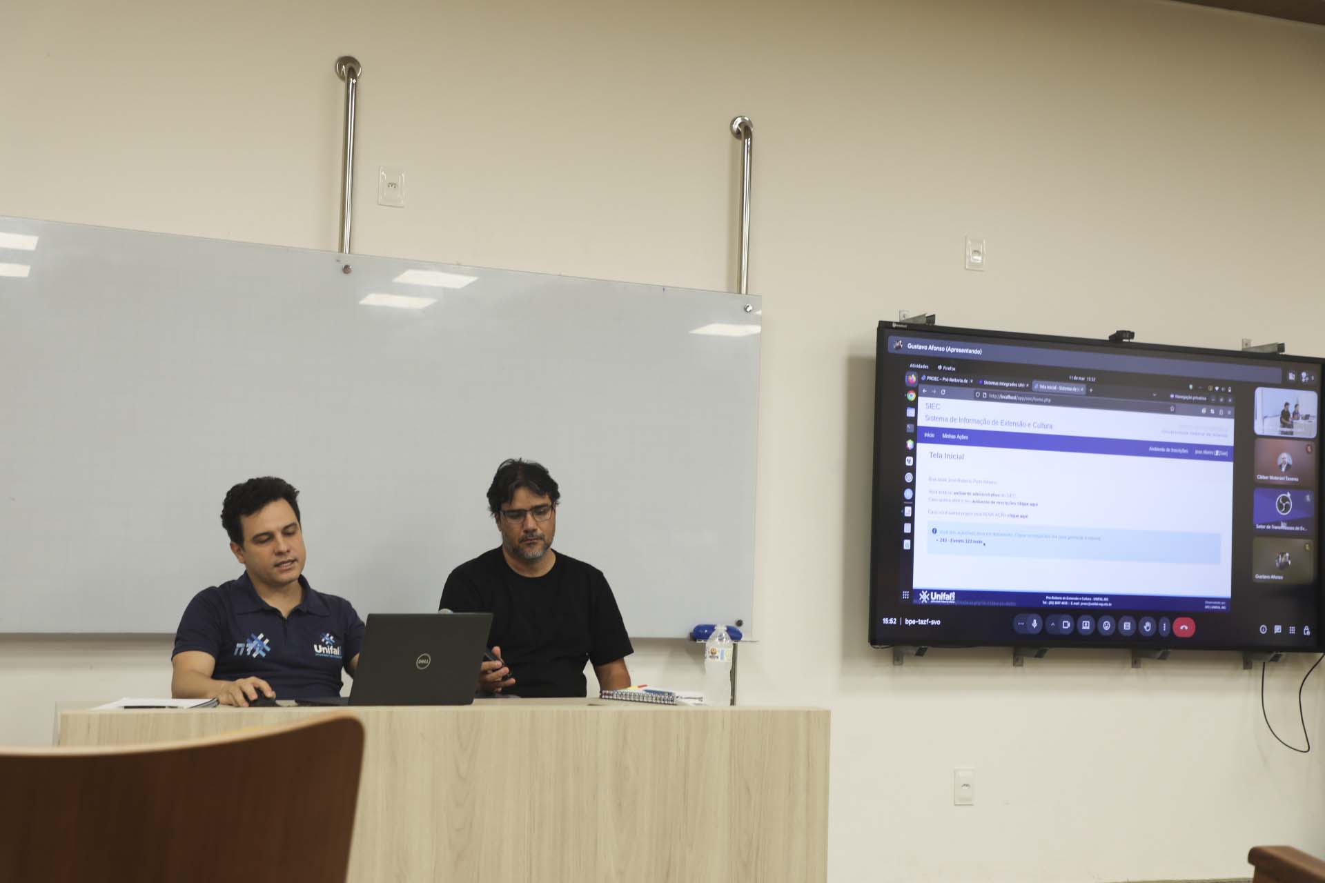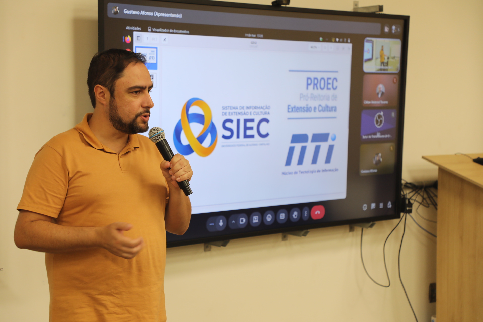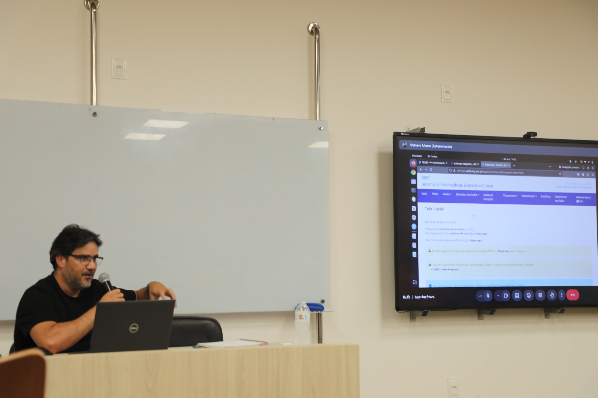 Na apresentação prática da ferramenta, o analista de tecnologia de informação Gustavo Ferreira Afonso, também do NTI, demonstrou dois fluxos centrais do SIEC: a submissão de propostas e a inscrição em ações. Entre as novidades, destacou a possibilidade de acesso por diferentes formas de autenticação, inclusive pela plataforma Gov.br, login institucional da UNIFAL-MG e cadastro com CPF ou passaporte para usuários externos.