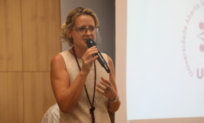 “Temos muitas atividades interessantes, muito importantes, que vão promover longevidade por meio da inclusão social, por meio da educação, por meio do bem-estar e por meio da saúde. Eu acho que esse momento aqui é o momento de celebrar, mas também é o momento da gente se empoderar, da gente ficar feliz, satisfeito e se encontrar”, afirma a professora Tábatta Renata Pereira de Brito, especialista em gerontologia, durante sua fala no evento.