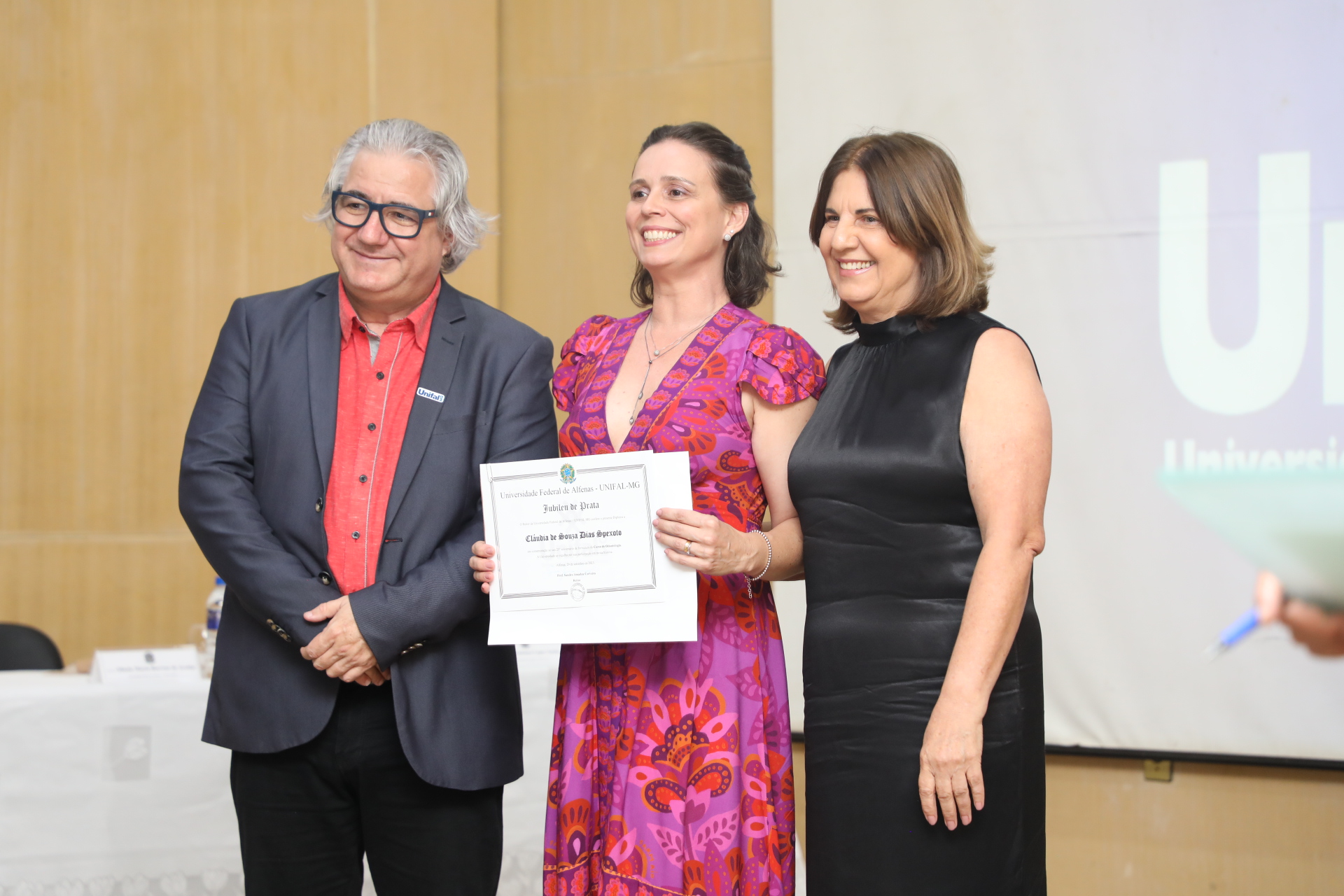 A UNIFAL-MG comemorou, nos dias 29/09, 06/10 e 27/10, os jubileus de prata dos cursos de Odontologia e Enfermagem e Farmácia, respectivamente. As turmas de 1998 que comemoraram os 25 anos de formação foram Prof. Carlos Roberto Colombo Robazza, Profa. Mônica La Salette da Costa Godinho e a turma de 1998 da Farmácia. Ao todo, 88 jubilados receberam os certificados comemorativos.