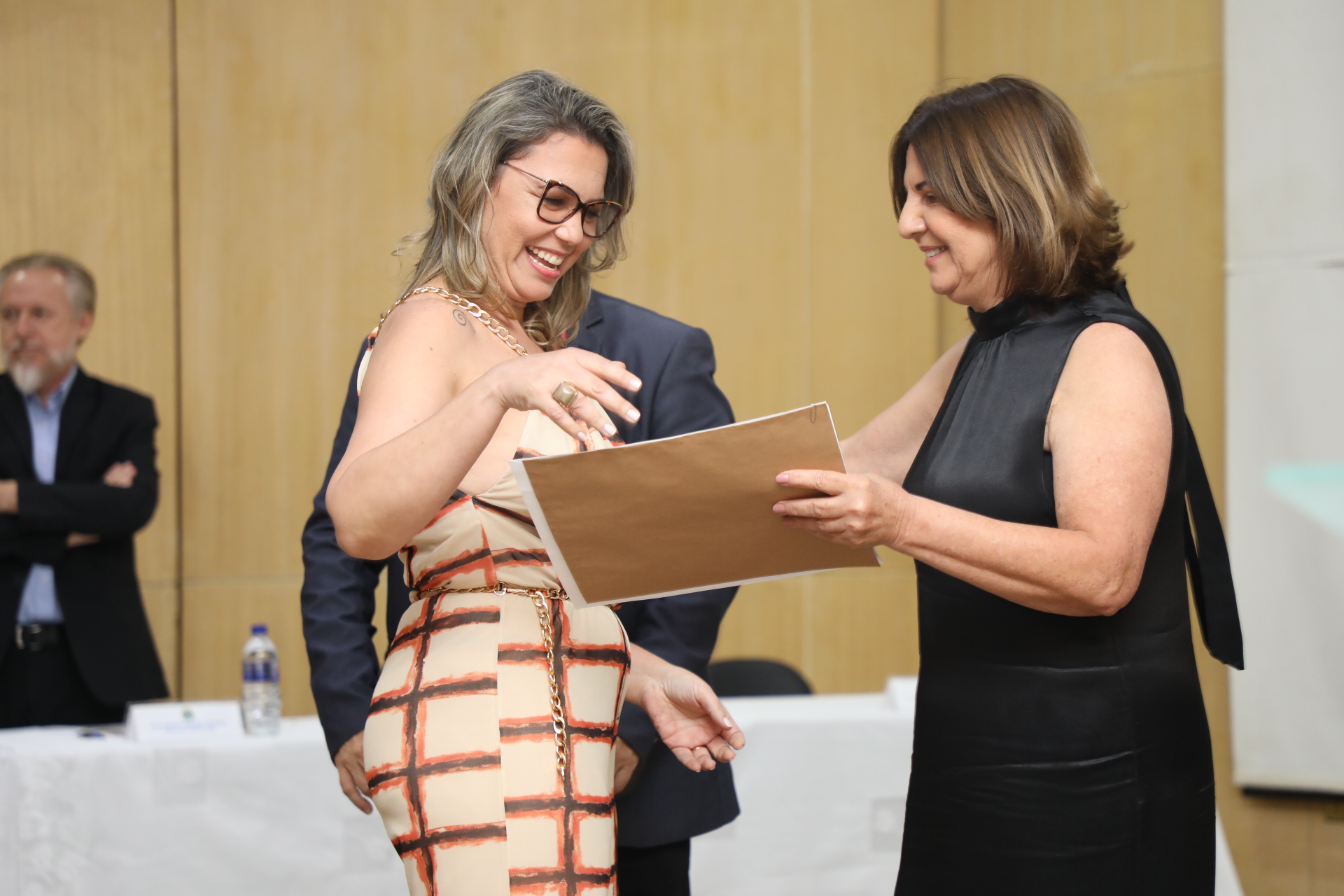 Participaram da solenidade o vice-reitor da UNIFAL-MG Alessandro Antônio Costa Pereira; a pró-reitora adjunta de Graduação, profa. Roberta Seron Sanches; a diretora da Faculdade de Ciências Farmacêuticas, profa. Maria Rita Rodrigues; o coordenador do curso de Farmácia, prof. Marcelo Aparecida da Silva; a patronesse, há época, e professora homenageada Olivina Maria Carneiro Vieira; e o egresso e orador na cerimônia, o farmacêutico Wesley Edmar Souza.