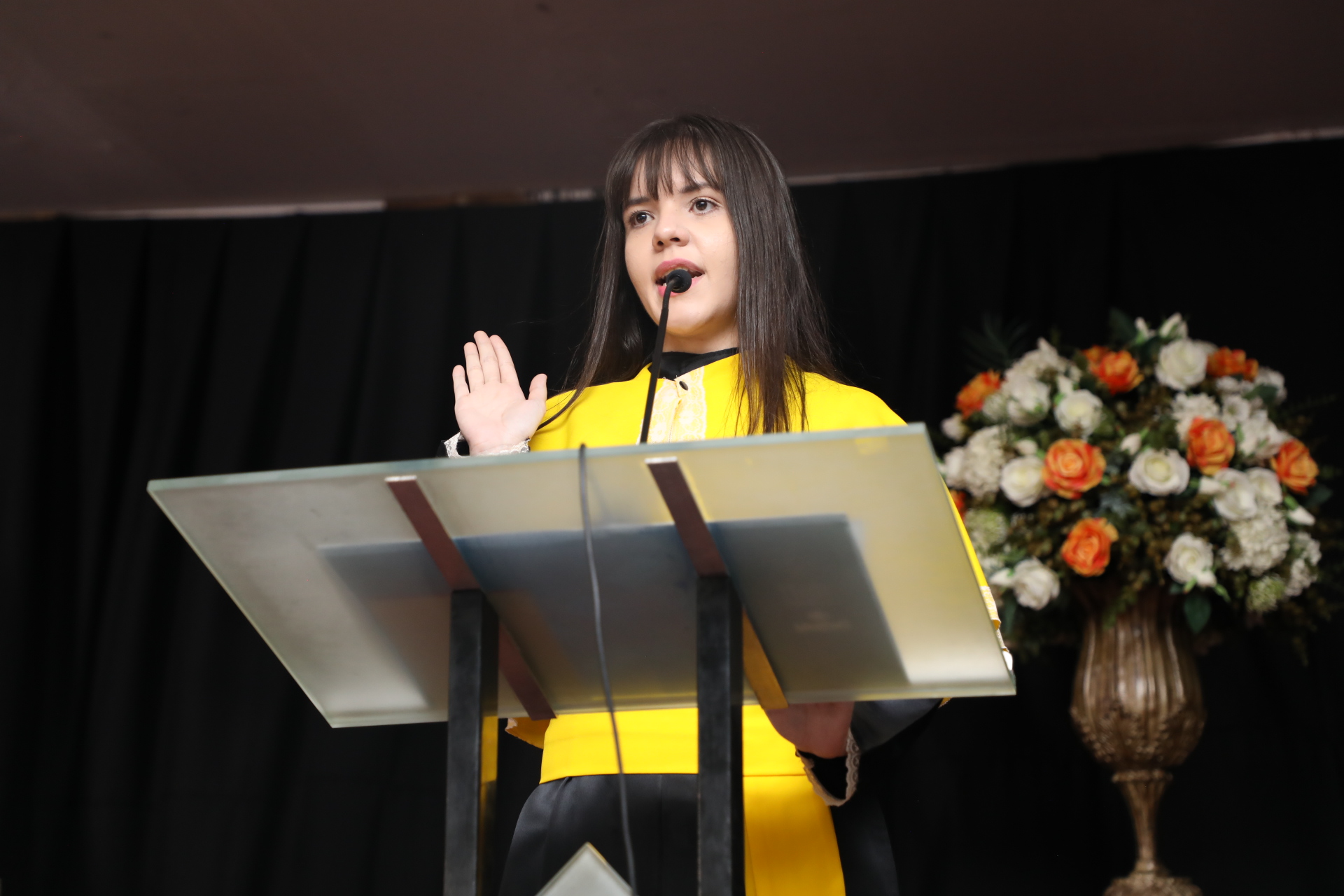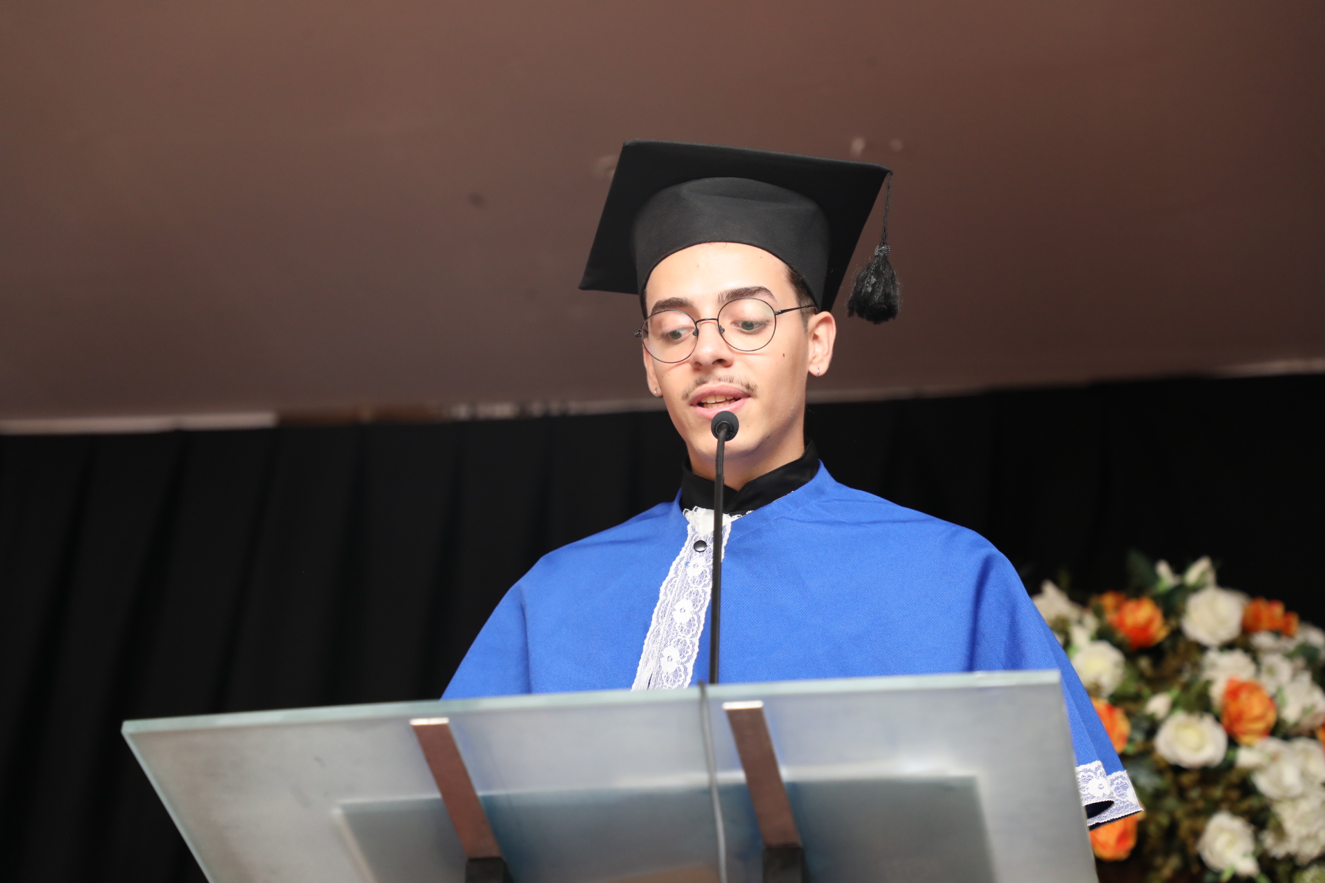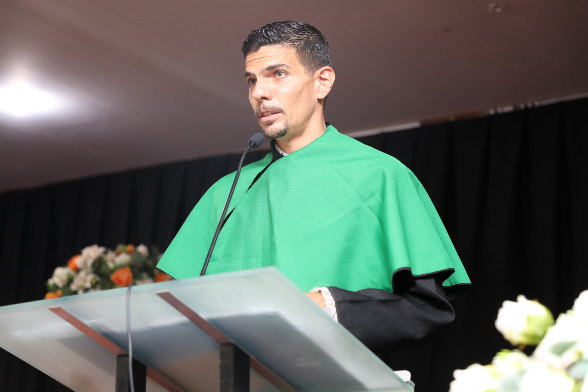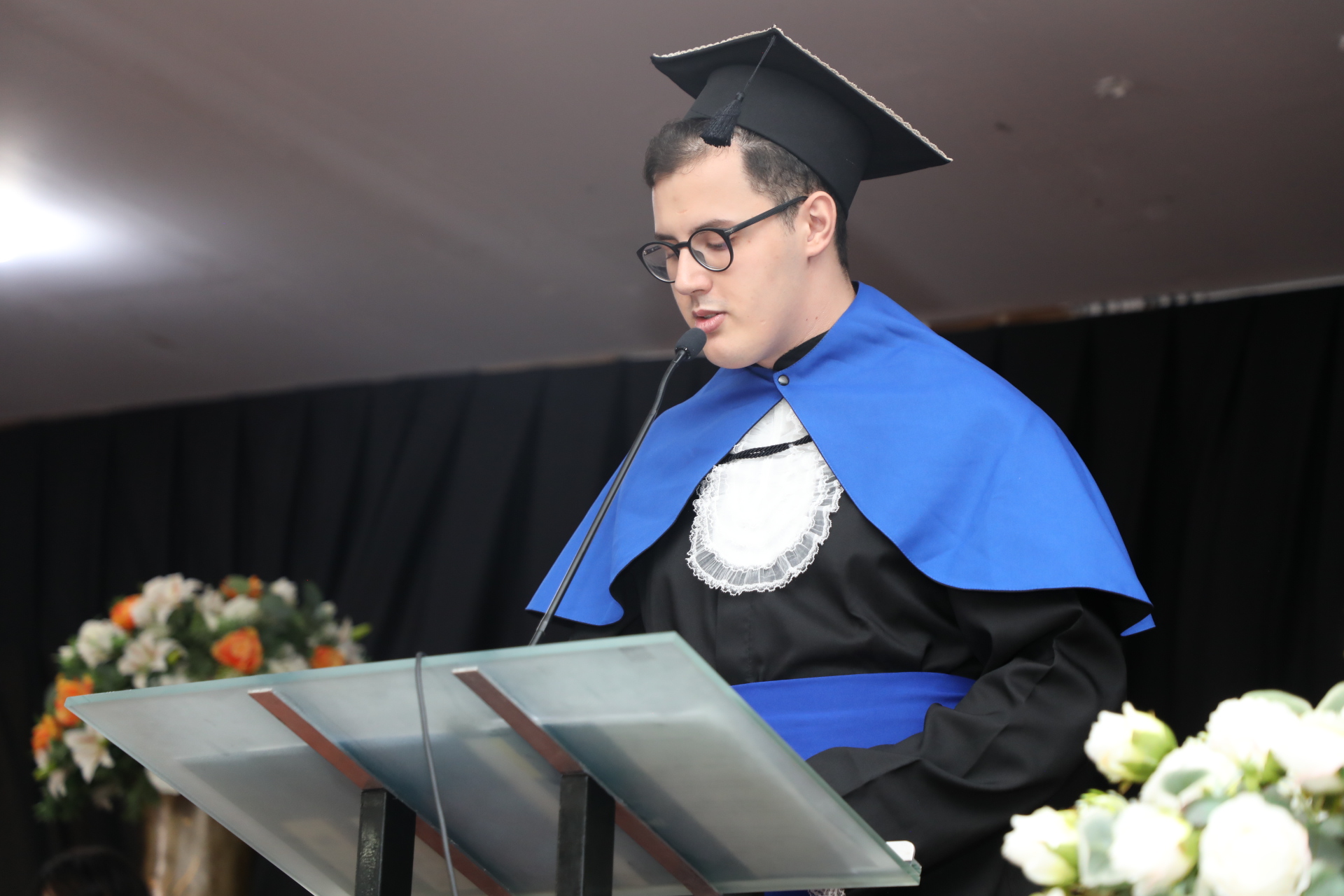 O orador Luckerman Duarte Gonçalves Botelho destacou em seu discurso a importância do aprendizado contínuo. “Com o diploma em mãos, sabemos que o verdadeiro aprendizado vai além da sala de aula. A trajetória que trilhamos durante esses anos prepara para o mundo que nos aguarda, com seus desafios e oportunidades. Estamos prontos para enfrentar o que vem pela frente, confiantes de que temos as ferramentas necessárias para fazer a diferença”, declarou.