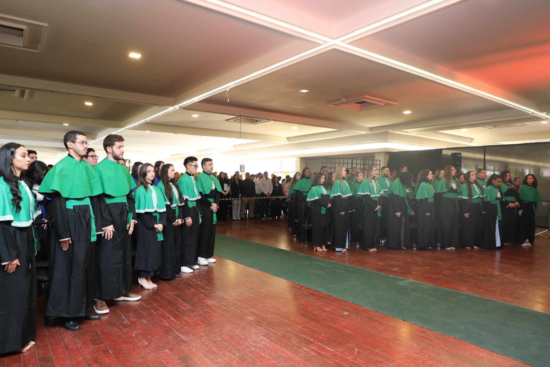 A celebração teve início com a execução do Hino Nacional, na sequência ocorreu o juramento solene, baseado nos objetivos fundamentais da República Federativa do Brasil, conforme o artigo 3º da Constituição Federal. O juramento foi proferido por Camila Tiengo Tagliari, formanda do curso de Nutrição.