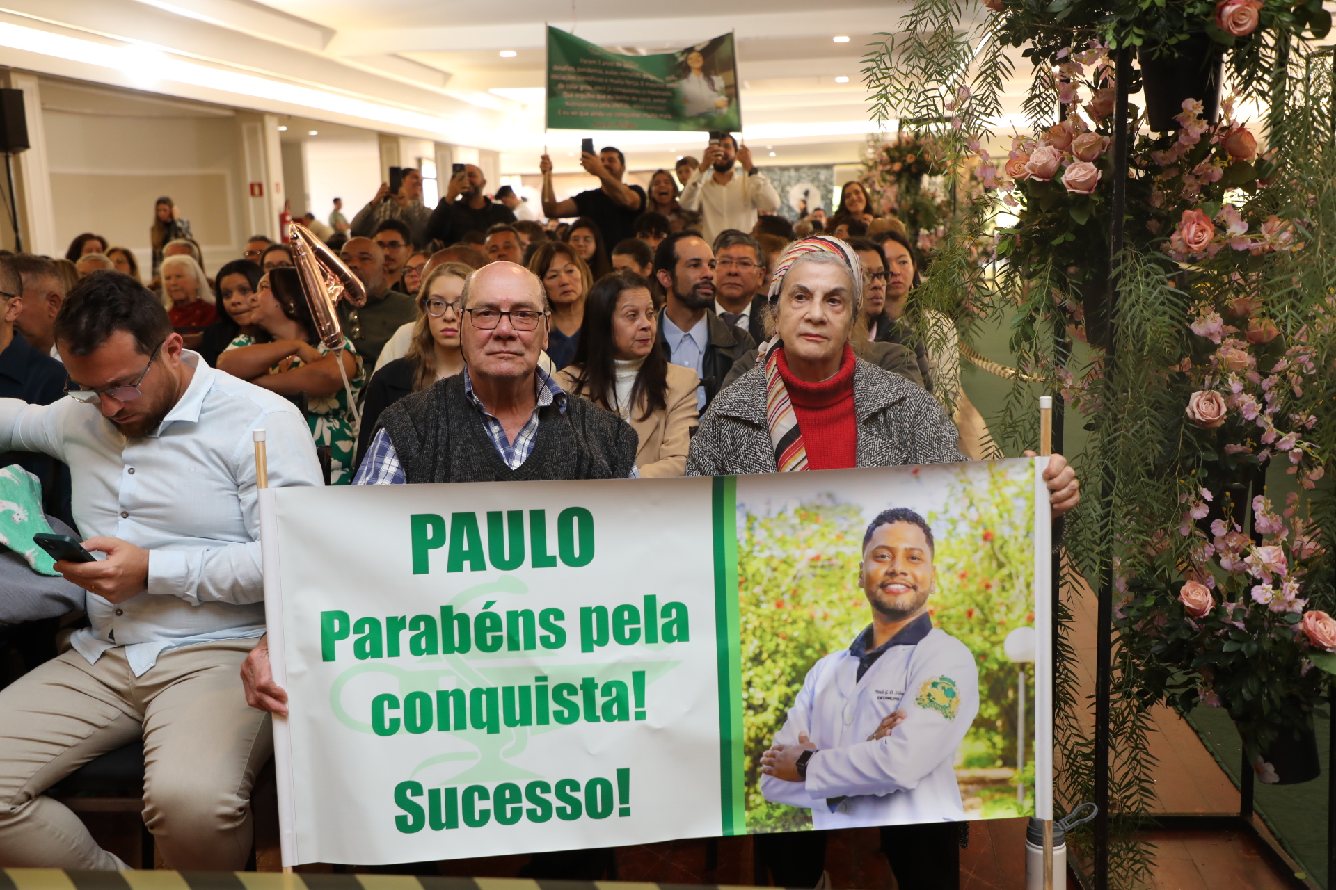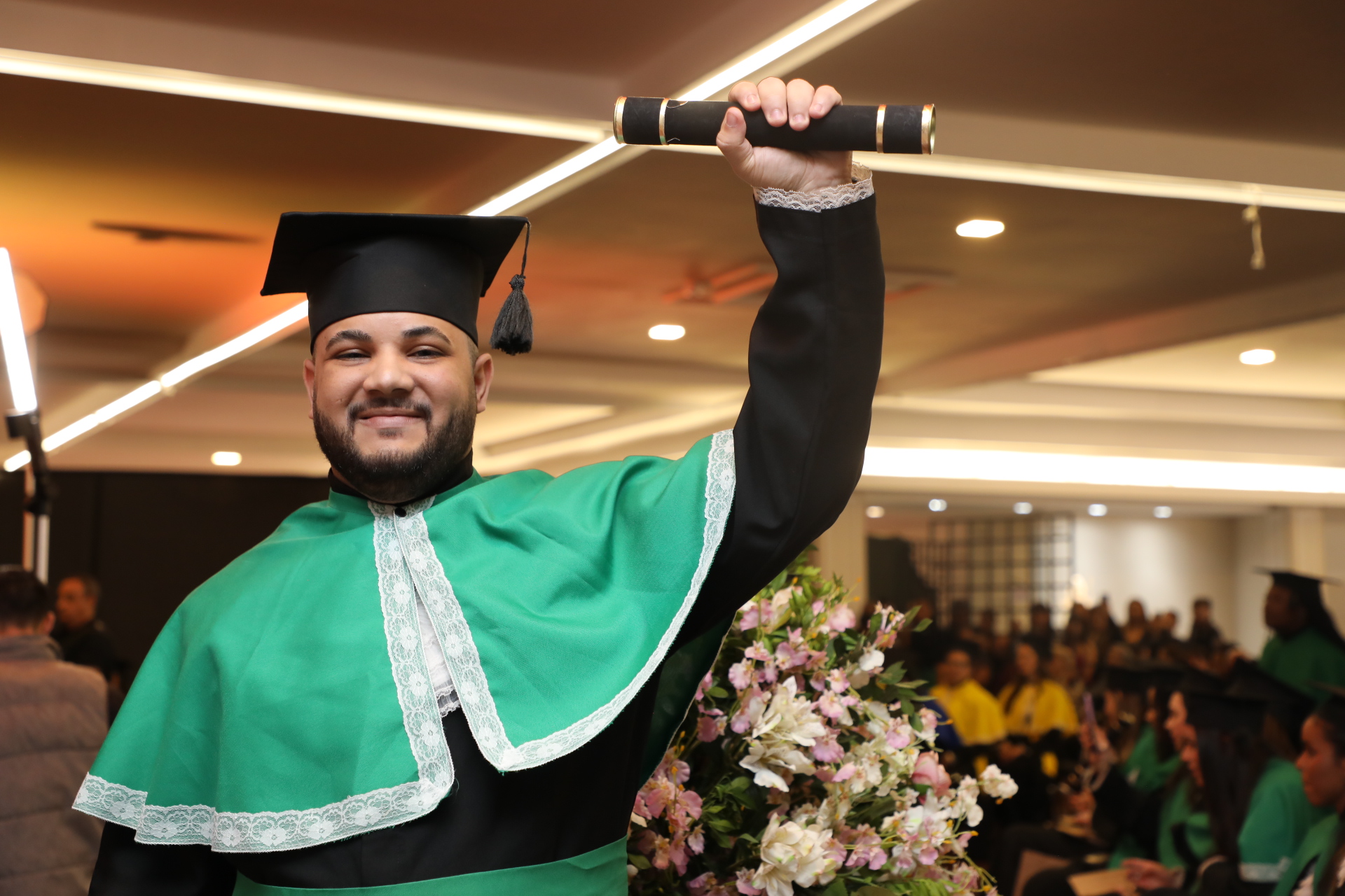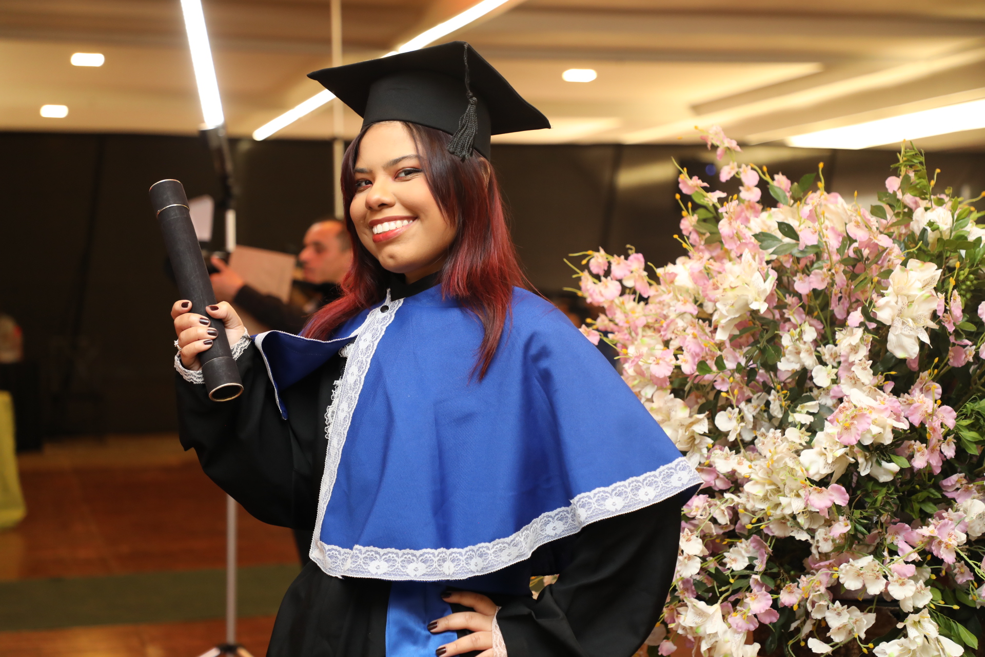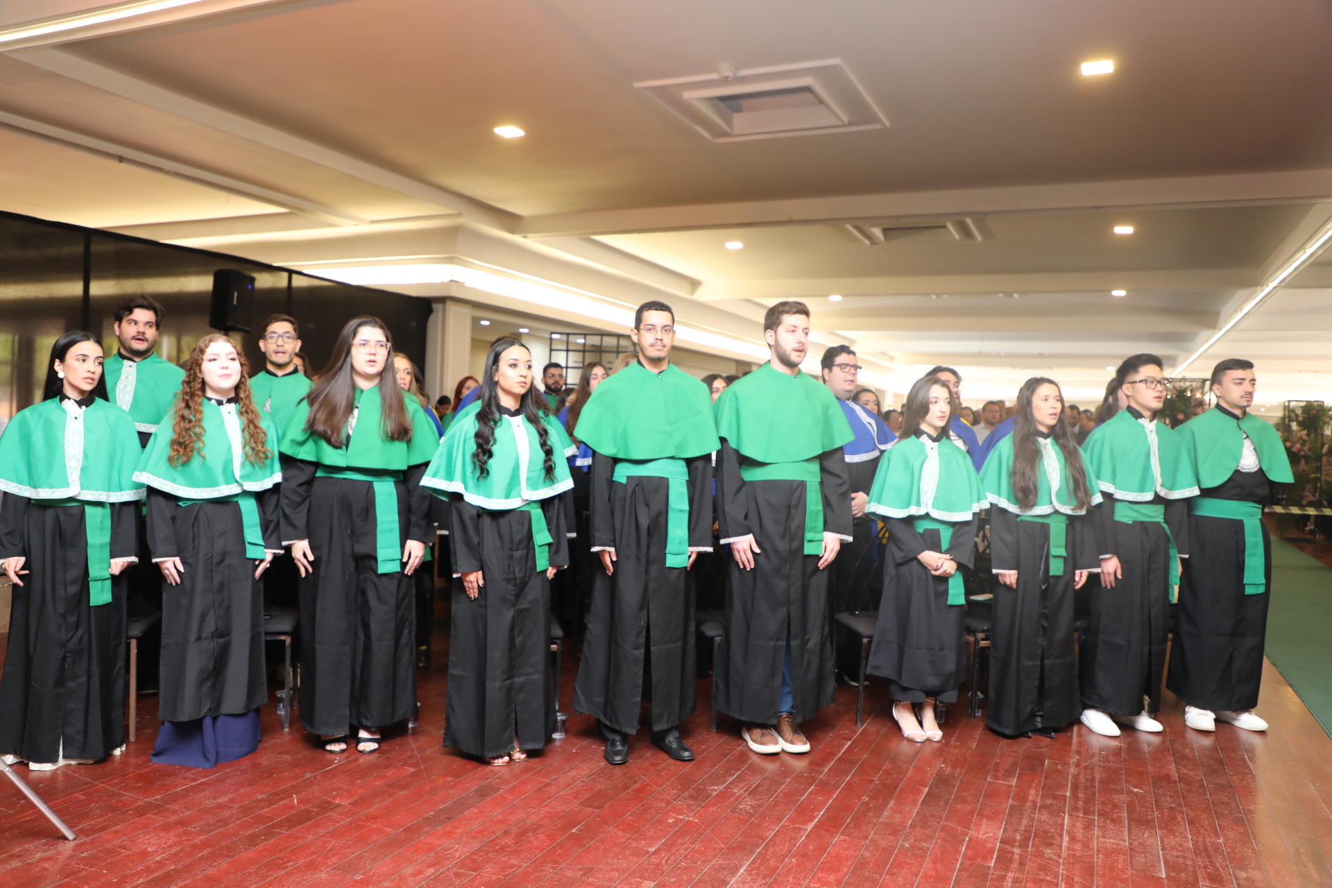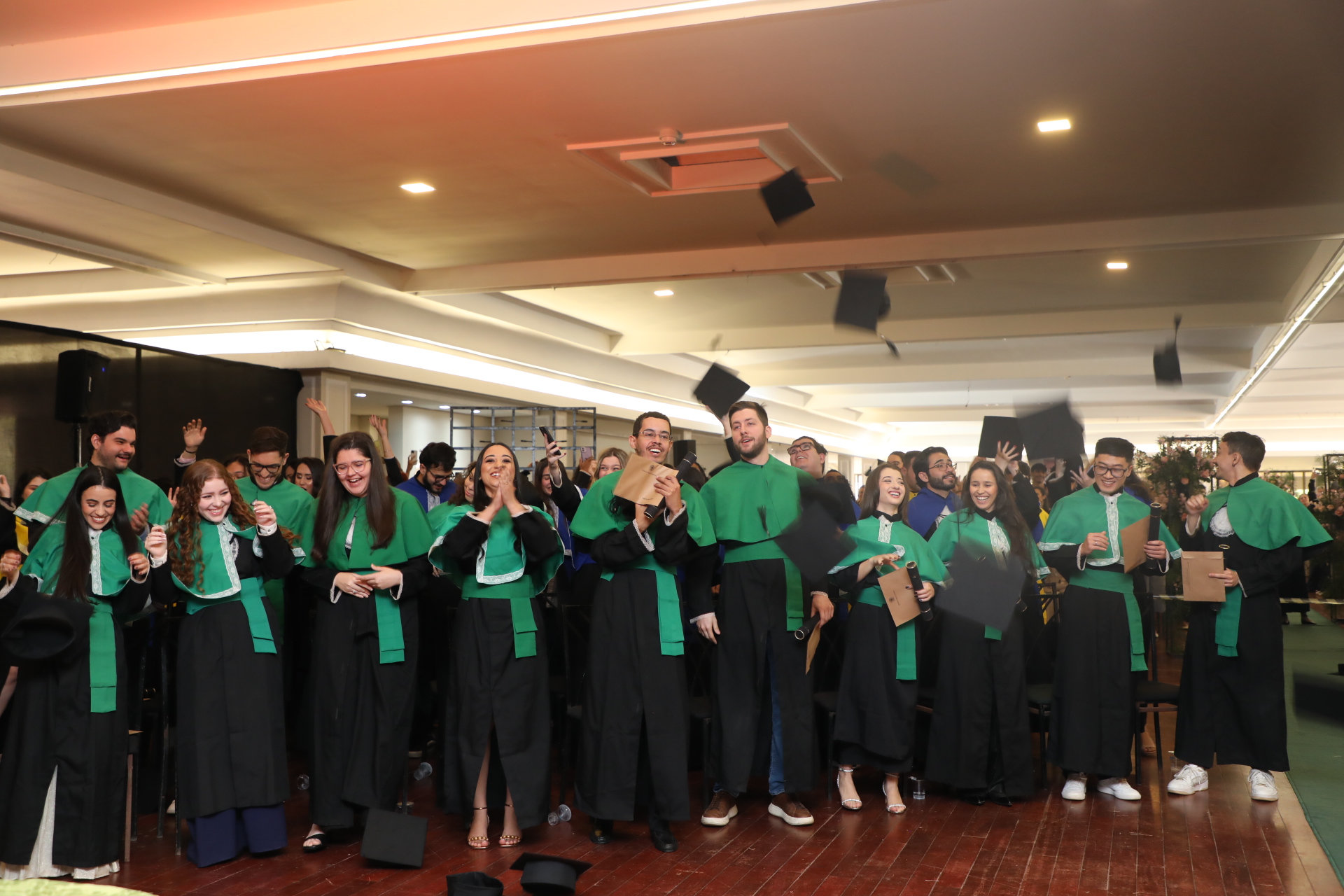 Seguindo a cerimônia, o reitor conferiu os graus de bacharéis (las) e entregou o capelo, simbolicamente, para Laura da Silva Cruz, formanda do curso de Farmácia. Os demais formandos receberam os certificados entregues pelos coordenadores.