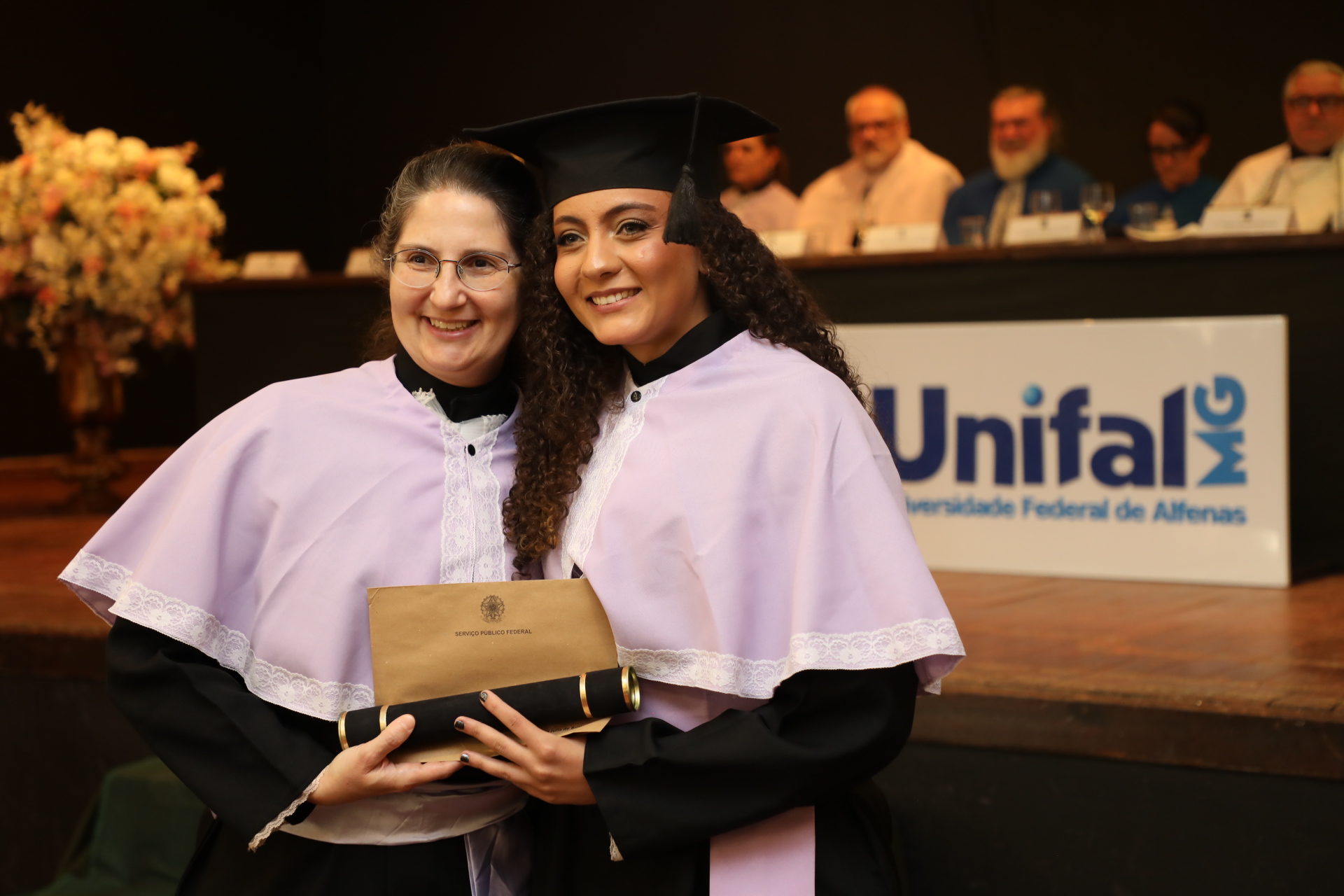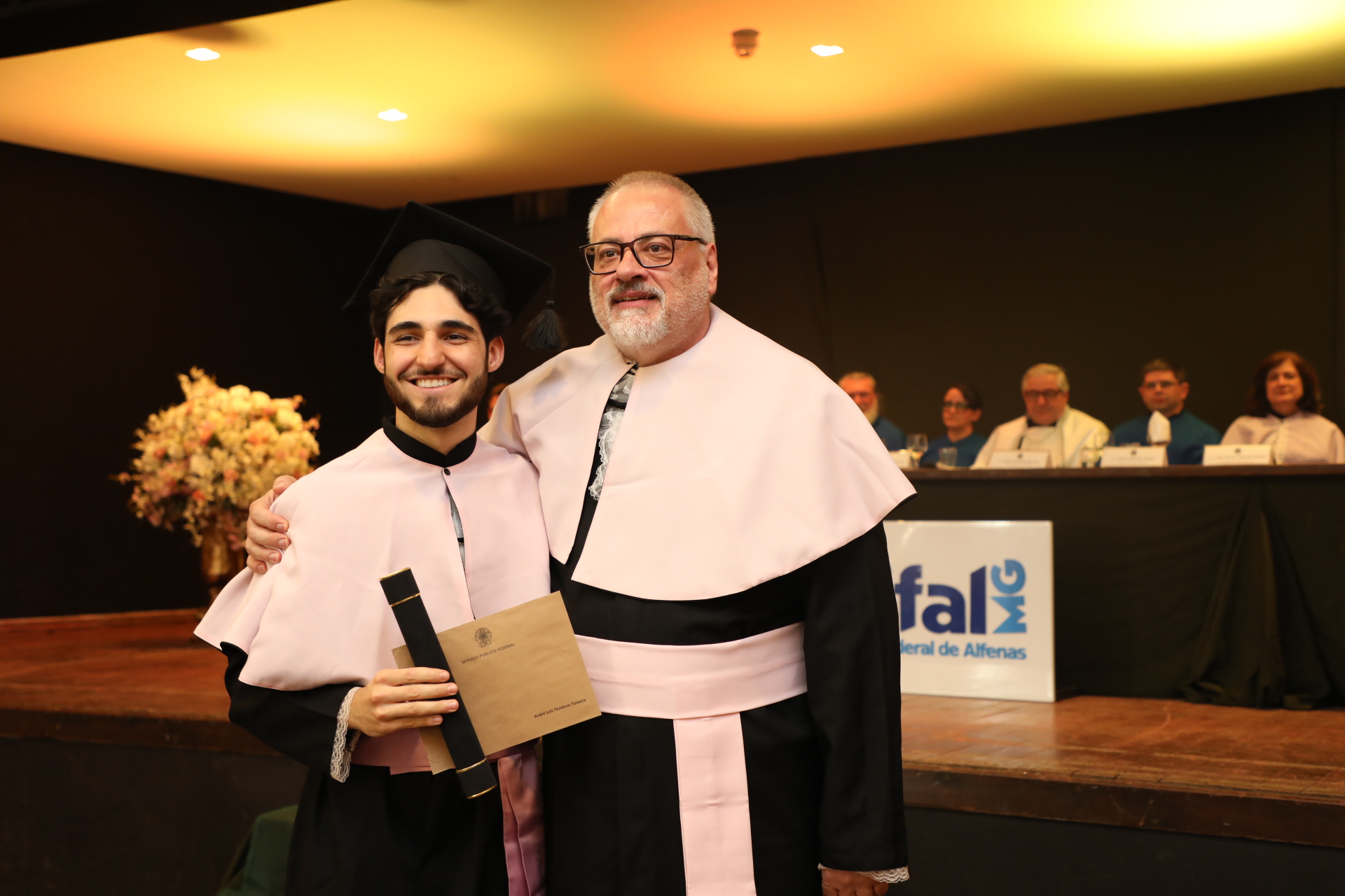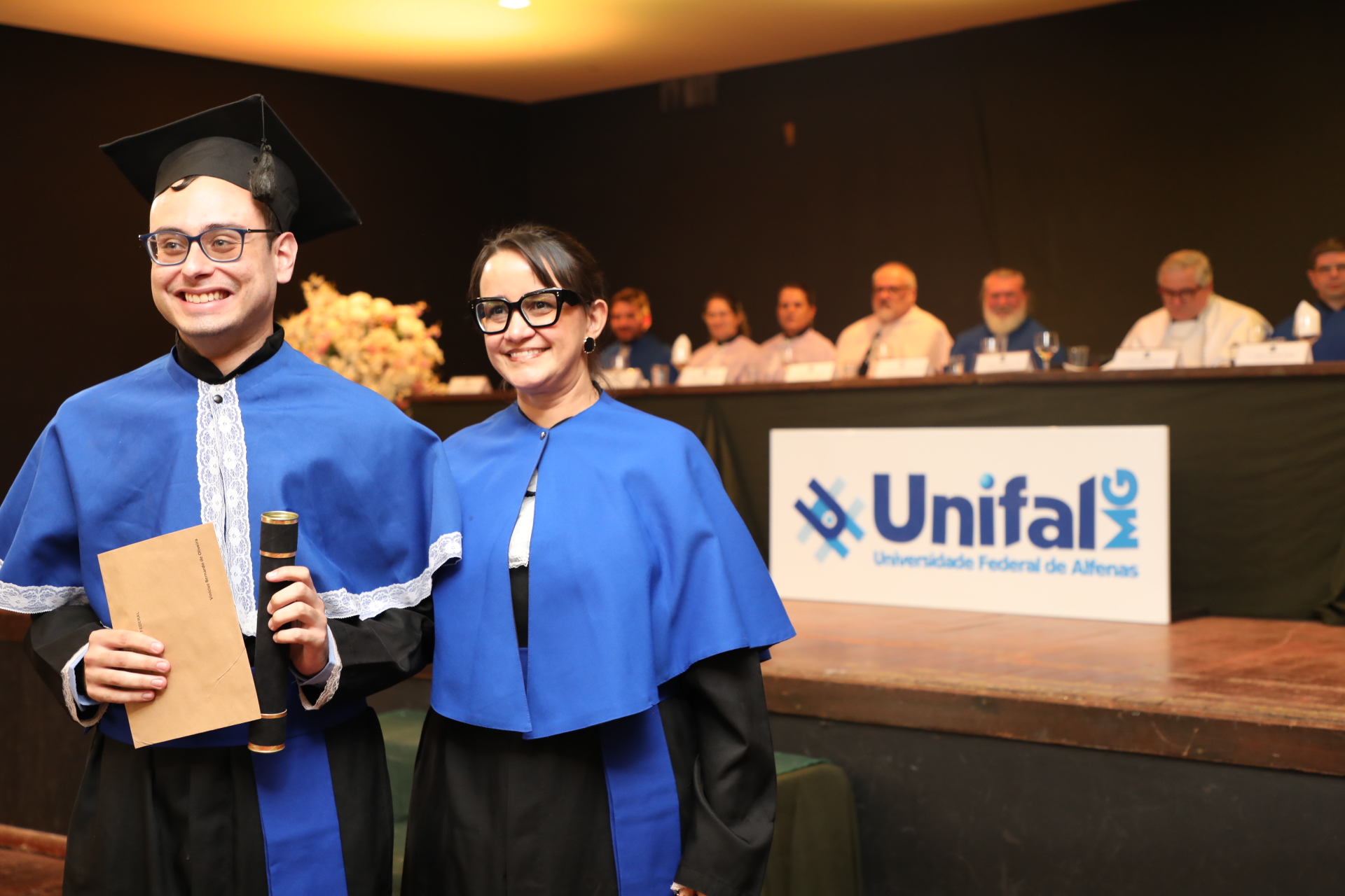 No dia 13 de agosto, a UNIFAL-MG celebrou duas cerimônias de colação de grau no Alfenas Tênis Clube. As solenidades marcaram a conquista dos formandos de 23 cursos da Universidade. Entre licenciados (as) e bacharéis (elas), estudantes receberam oficialmente o título em meio a emoções, aplausos, abraços, discursos e músicas, seus familiares e amigos prestigiaram essa conquista.