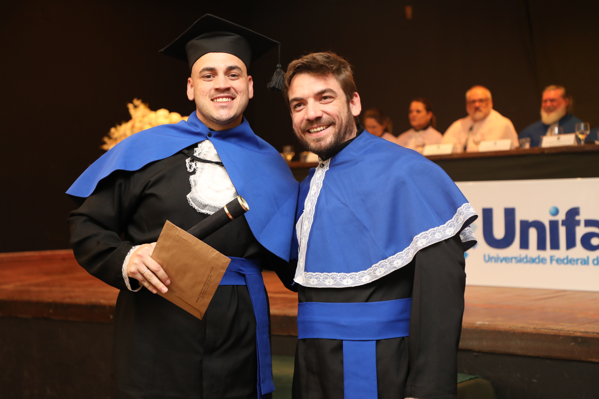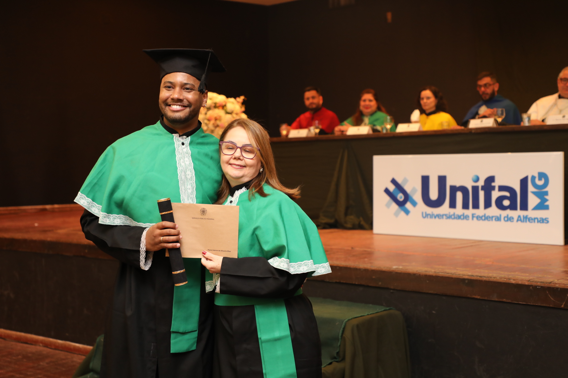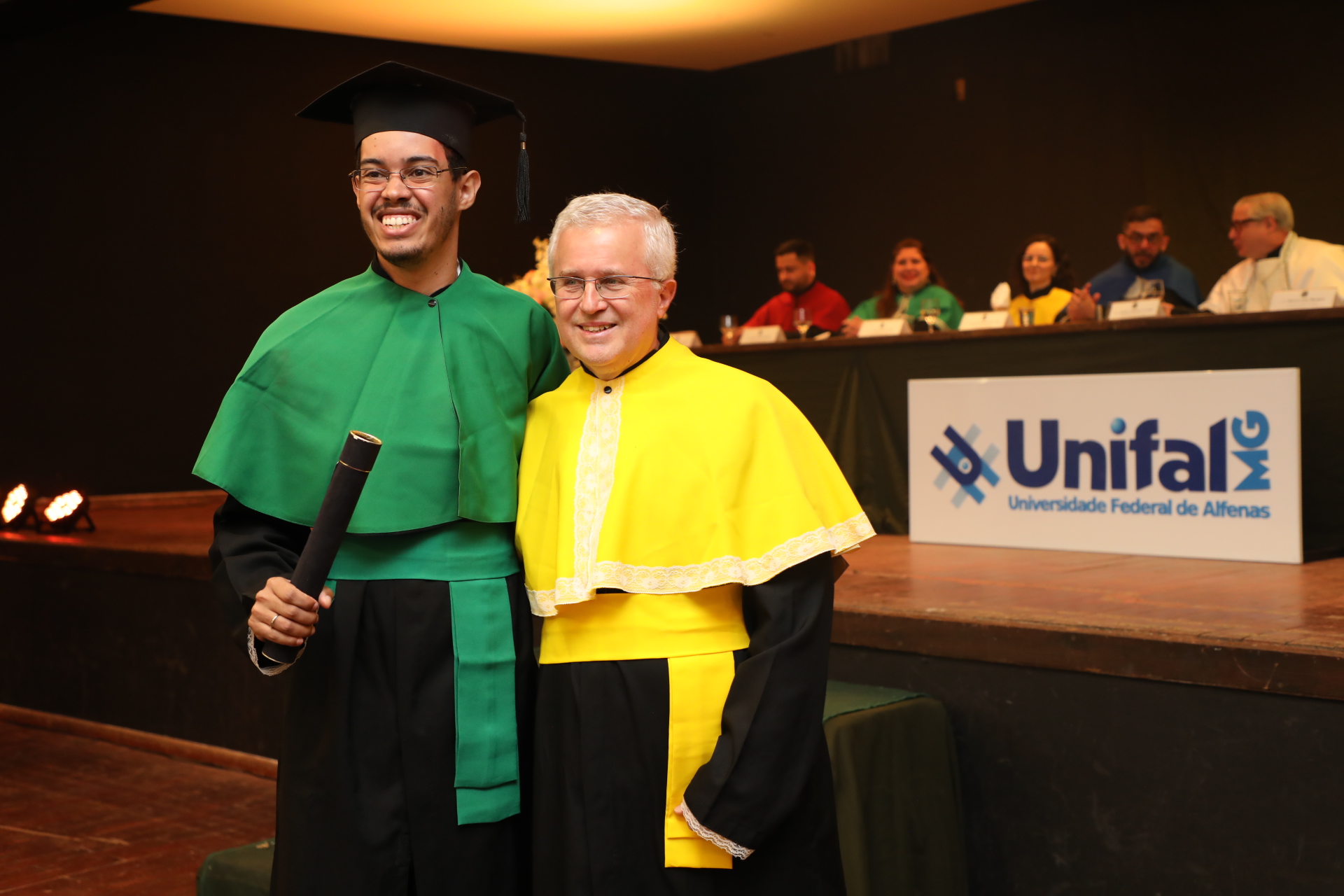 No dia 13 de agosto, a UNIFAL-MG celebrou duas cerimônias de colação de grau no Alfenas Tênis Clube. As solenidades marcaram a conquista dos formandos de 23 cursos da Universidade. Entre licenciados (as) e bacharéis (elas), estudantes receberam oficialmente o título em meio a emoções, aplausos, abraços, discursos e músicas, seus familiares e amigos prestigiaram essa conquista.