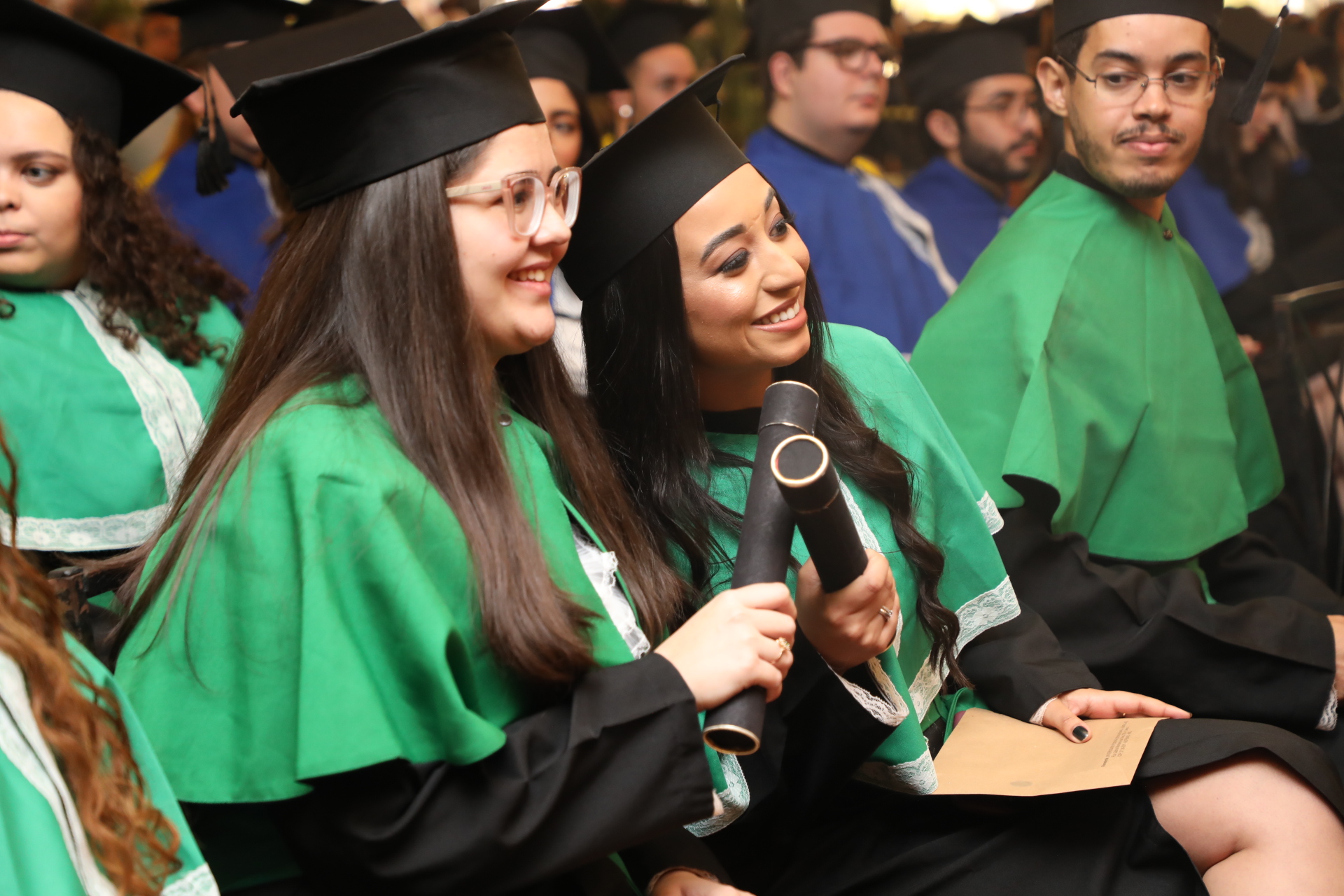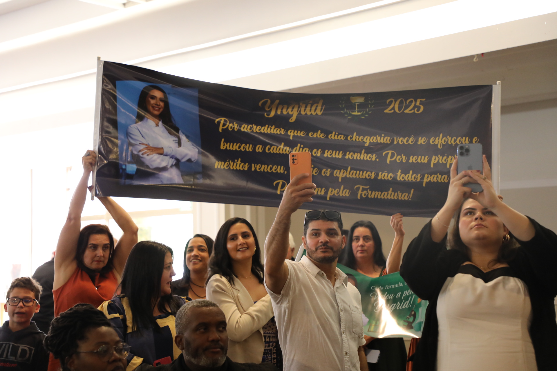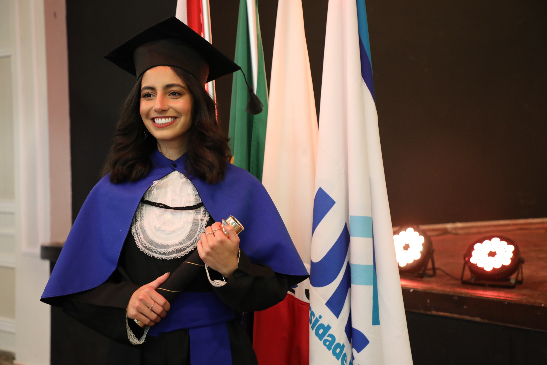 “A nossa instituição de ensino foi palco e testemunha das nossas transformações. Aqui, fomos lapidados como profissionais, mas, acima de tudo, como cidadãos conscientes da responsabilidade que carregamos. Sabemos que, ao sair daqui, seremos guardiões da vida, do conhecimento e da dignidade humana”, proferiu Maria Catarina Terra Bernardes, formanda de História, durante o seu discurso como oradora da turma.