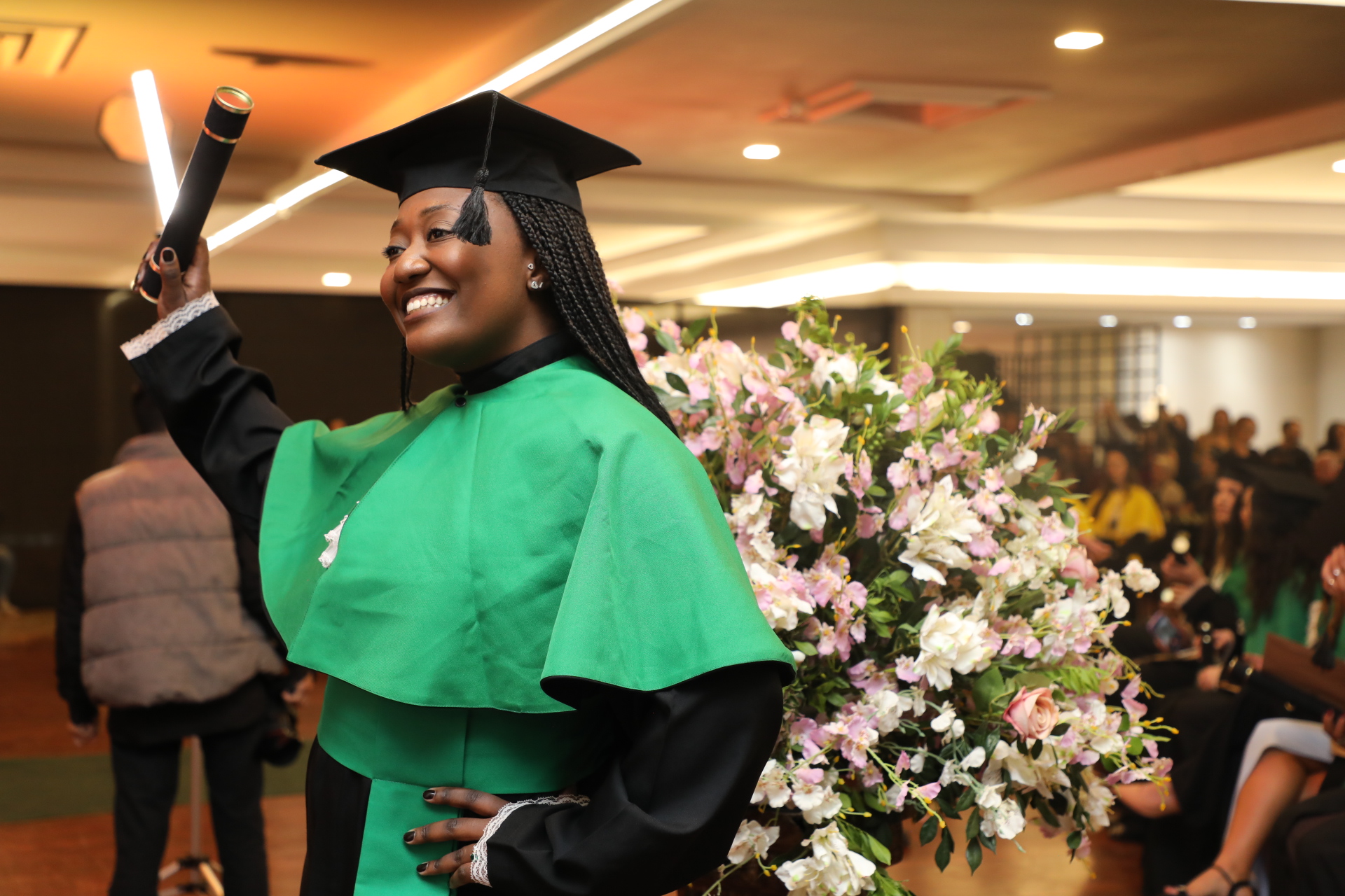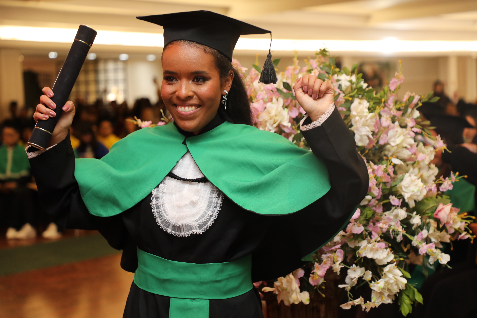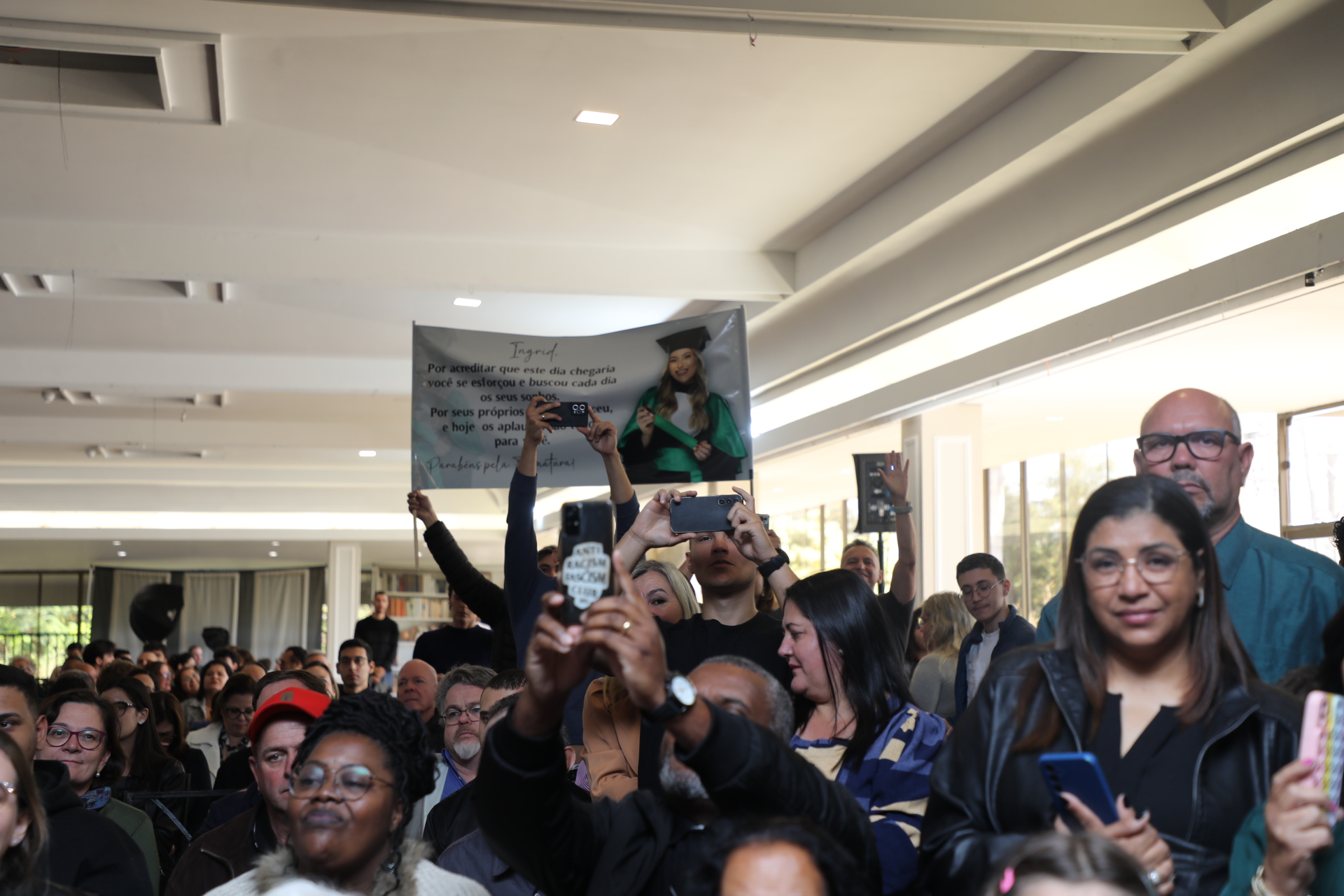 “A nossa instituição de ensino foi palco e testemunha das nossas transformações. Aqui, fomos lapidados como profissionais, mas, acima de tudo, como cidadãos conscientes da responsabilidade que carregamos. Sabemos que, ao sair daqui, seremos guardiões da vida, do conhecimento e da dignidade humana”, proferiu Maria Catarina Terra Bernardes, formanda de História, durante o seu discurso como oradora da turma.