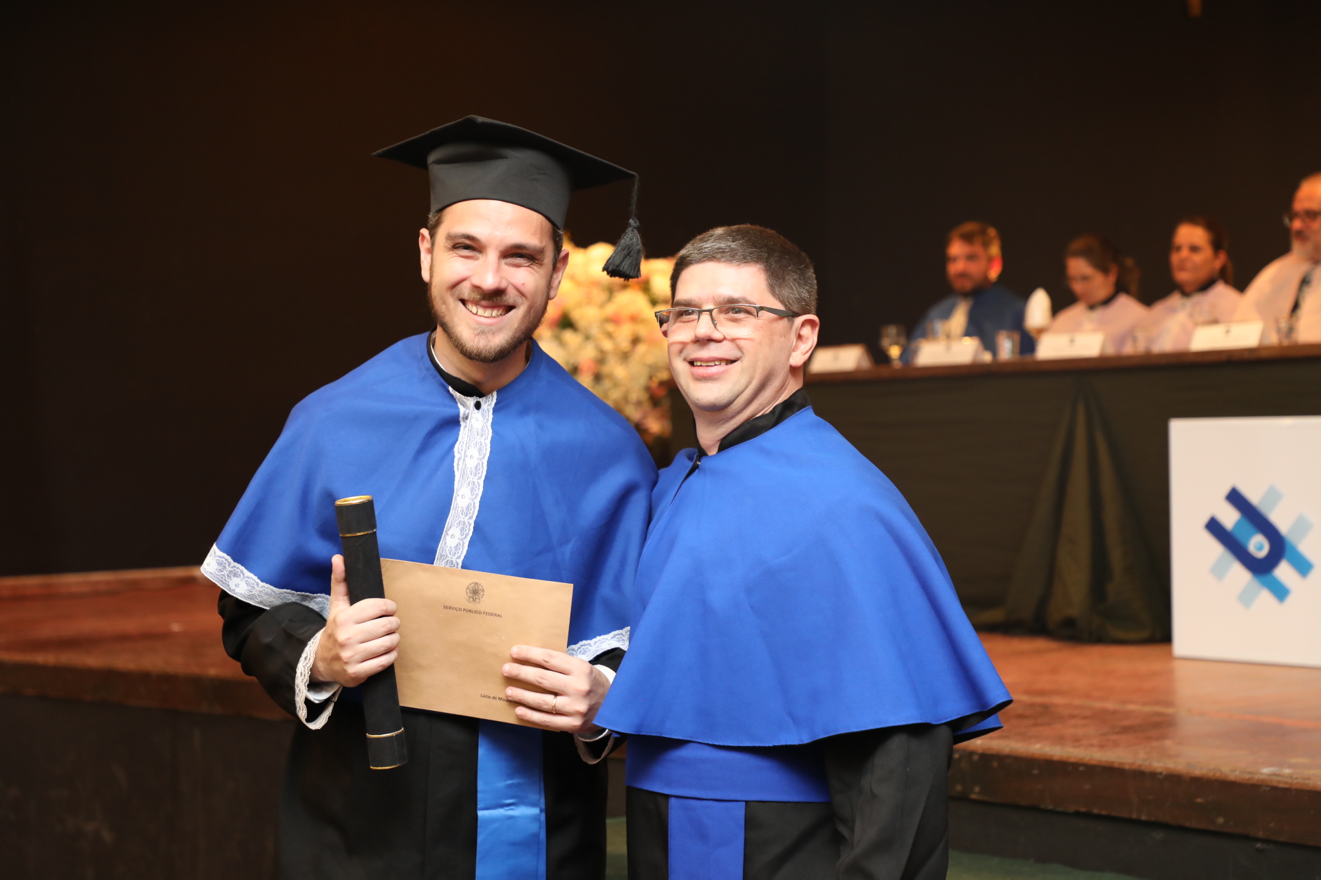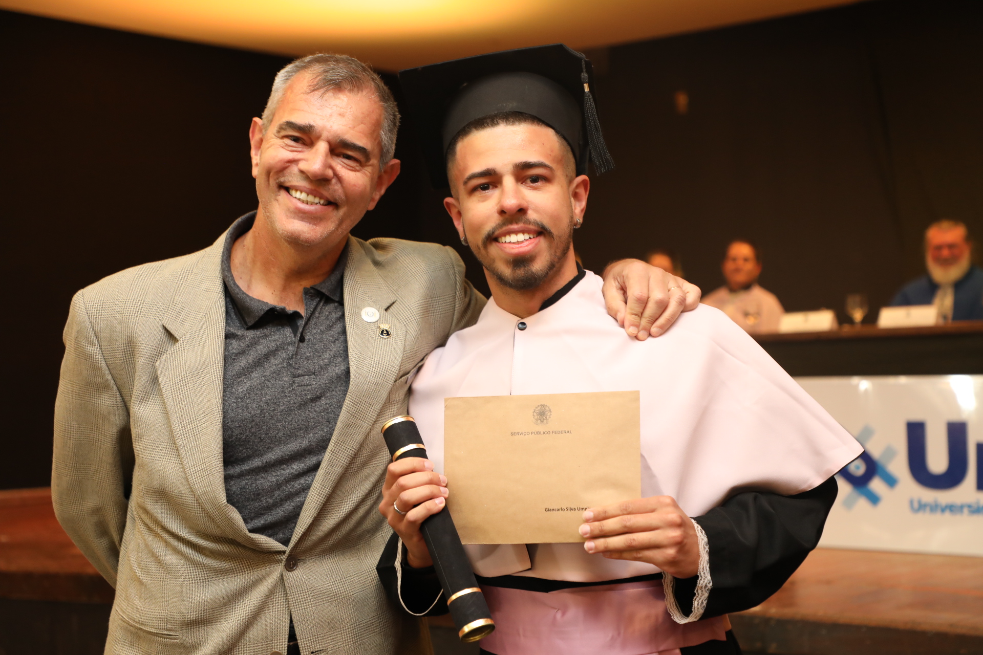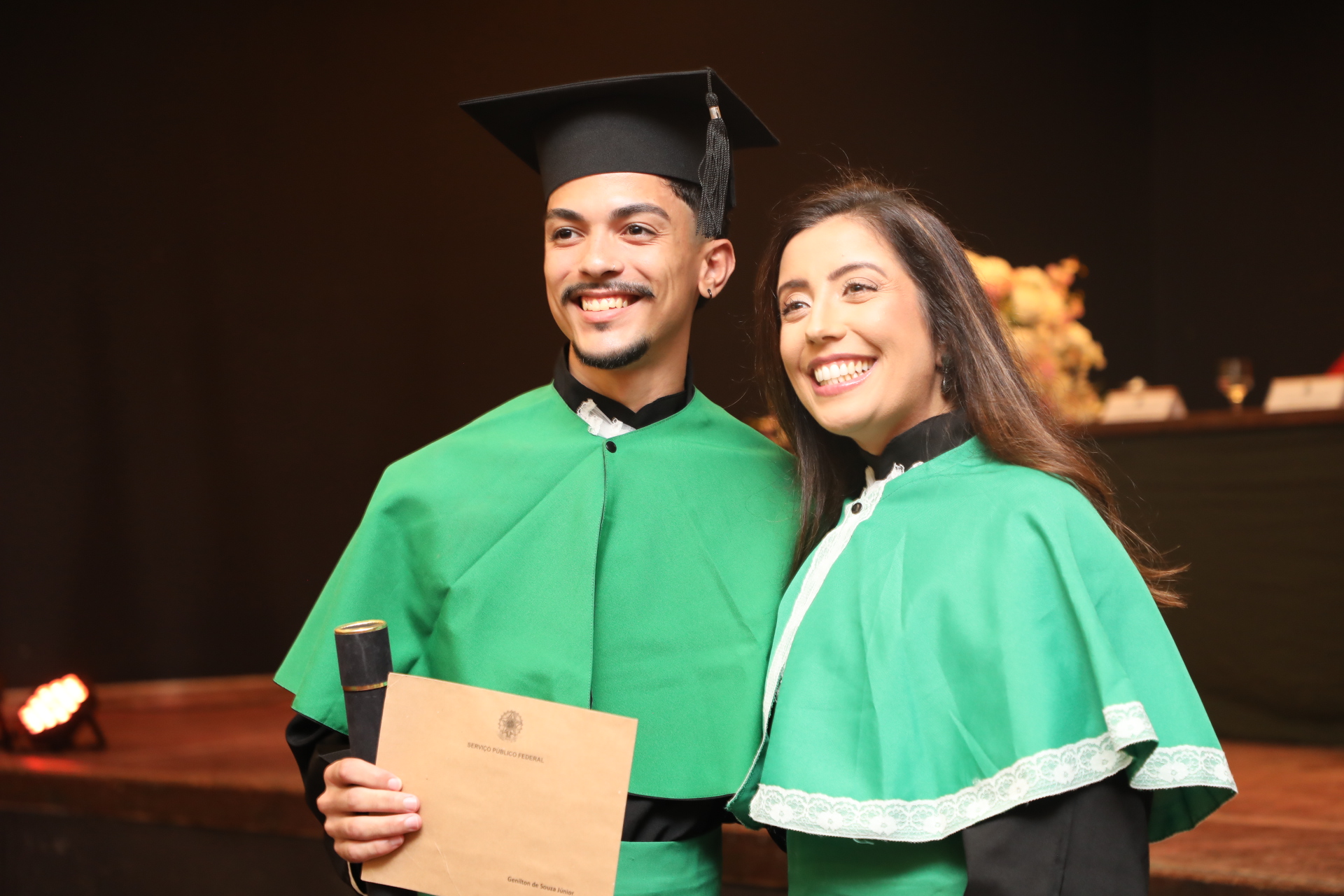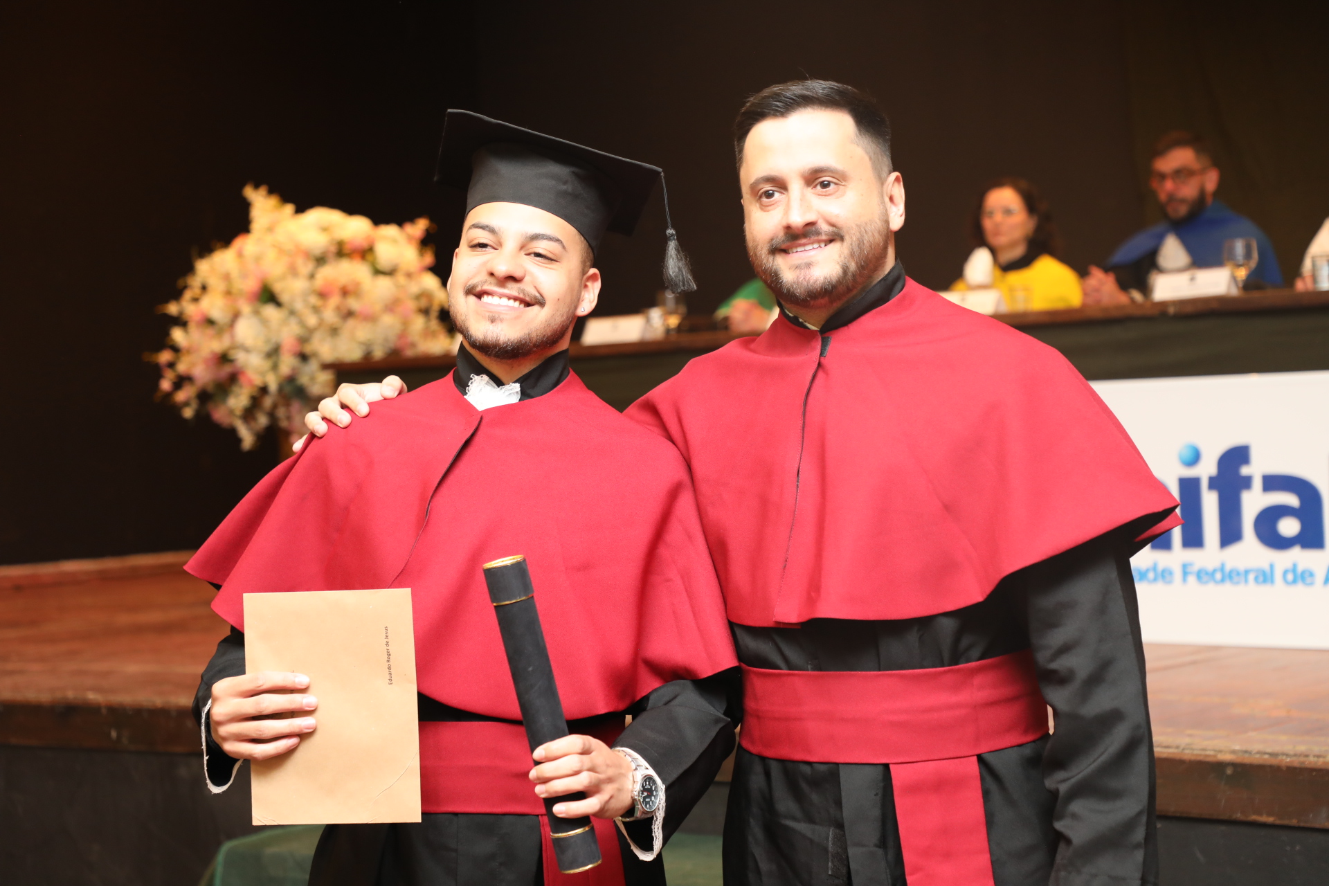 Em ambas as cerimônias, foi lido o Termo de Colação de Grau, que registrou o juramento dos formandos e a entrega dos títulos. Também, o reitor Sandro Cerveira realizou discursos que refletiram sobre a origem da palavra “obrigada” no latim. “Ela está relacionada aos laços, às conexões. Quando eu digo muito obrigado, eu estou dizendo que eu estou ligado a você. Eu sou conectado a você. E essa conexão é o reconhecimento de que nós não somos sozinhos. Nós somos fruto de uma série de conexões de pessoas que se convergiram, às vezes, anonimamente para que nós estivéssemos em casa”, evidencia.