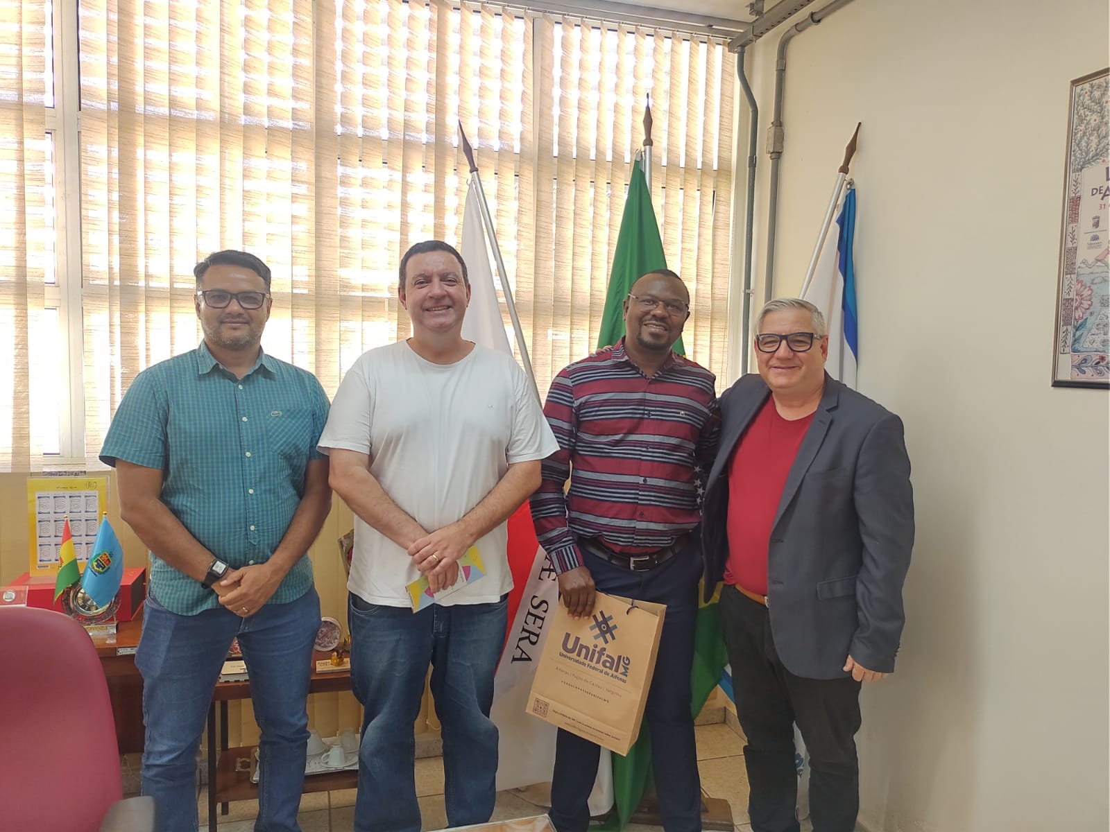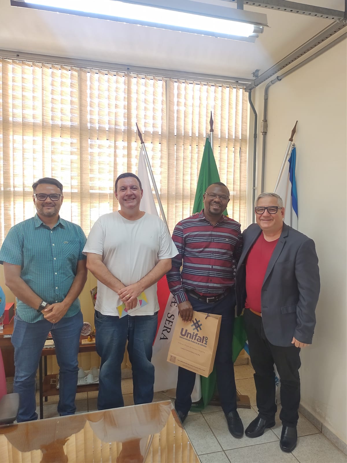 No dia 29 de julho, o reitor da UMUM, Prof. Sosdito Mananze, foi recebido pelo reitor da UNIFAL-MG, Prof. Sandro Cerveira. No dia 1 de agosto, o reitor da universidade moçambicana visitou as instalações da Café Ipanema, uma das parceiras da UNIFAL-MG, e participou de uma reunião para discutir o Protocolo de Intenções com a Diretoria de Relações Internacionais (DRI). Na ocasião, estavam presentes o professor Claudio Umpierre Carlan, então diretor de Relações Internacionais, Prof. Rodrigo José Pisani do ICN, a coordenadora do PPGEO, Profa. Sandra de Castro de Azevedo, entre outros representantes da Universidade.