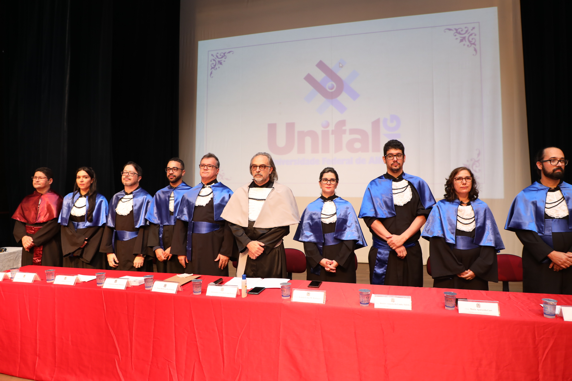 A solenidade, conduzida pelo vice-reitor da UNIFAL-MG, Prof. Alessandro Antônio Costa Pereira, contou com a participação de representantes docentes e das coordenações dos cursos, assim como familiares e amigos dos formandos. Além do vice-reitor, compuseram a mesa solene os docentes: Paulo Roberto Rodrigues de Souza, Letícia Lima Milani Rodrigues, Vinícius de Souza Moreira, Dimitri Augusto da Cunha Toledo, Leandro Ferreira, Bruno Aidar Costa, Cláudio Roberto Caríssimo, Maria Aparecida Curi e Débora Juliene Pereira Lima.