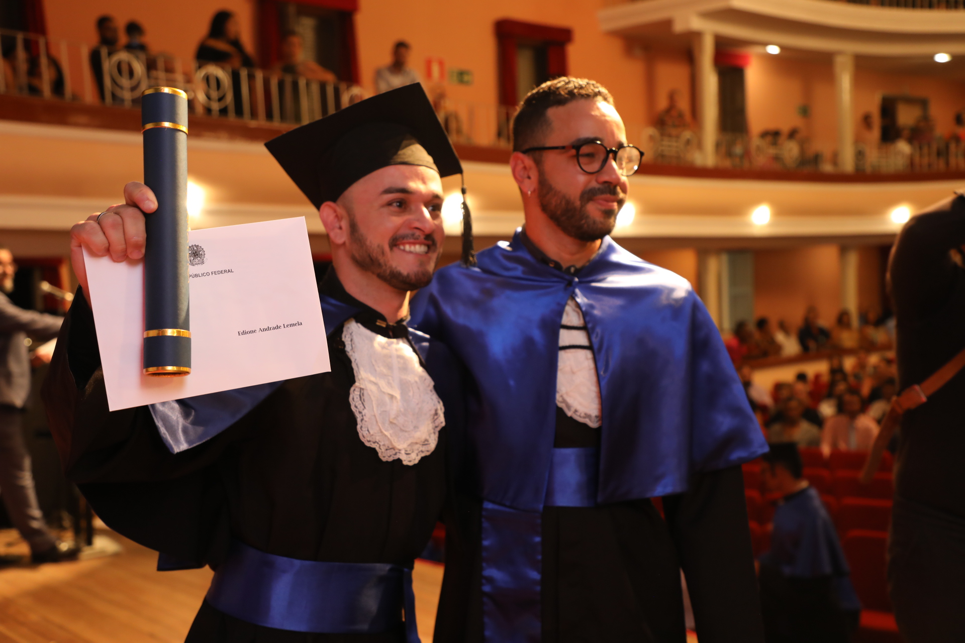 Após o juramento, o vice-reitor da Universidade conferiu os graus de bacharel e bacharelas aos estudantes presentes na cerimônia. Em seguida, a bacharela Interdisciplinar em Ciência e Economia Ranyelle Aparecida Silva recebeu o capelo das mãos do vice-reitor e os estudantes receberam os certificados entregues pelos paraninfos e coordenadores.
