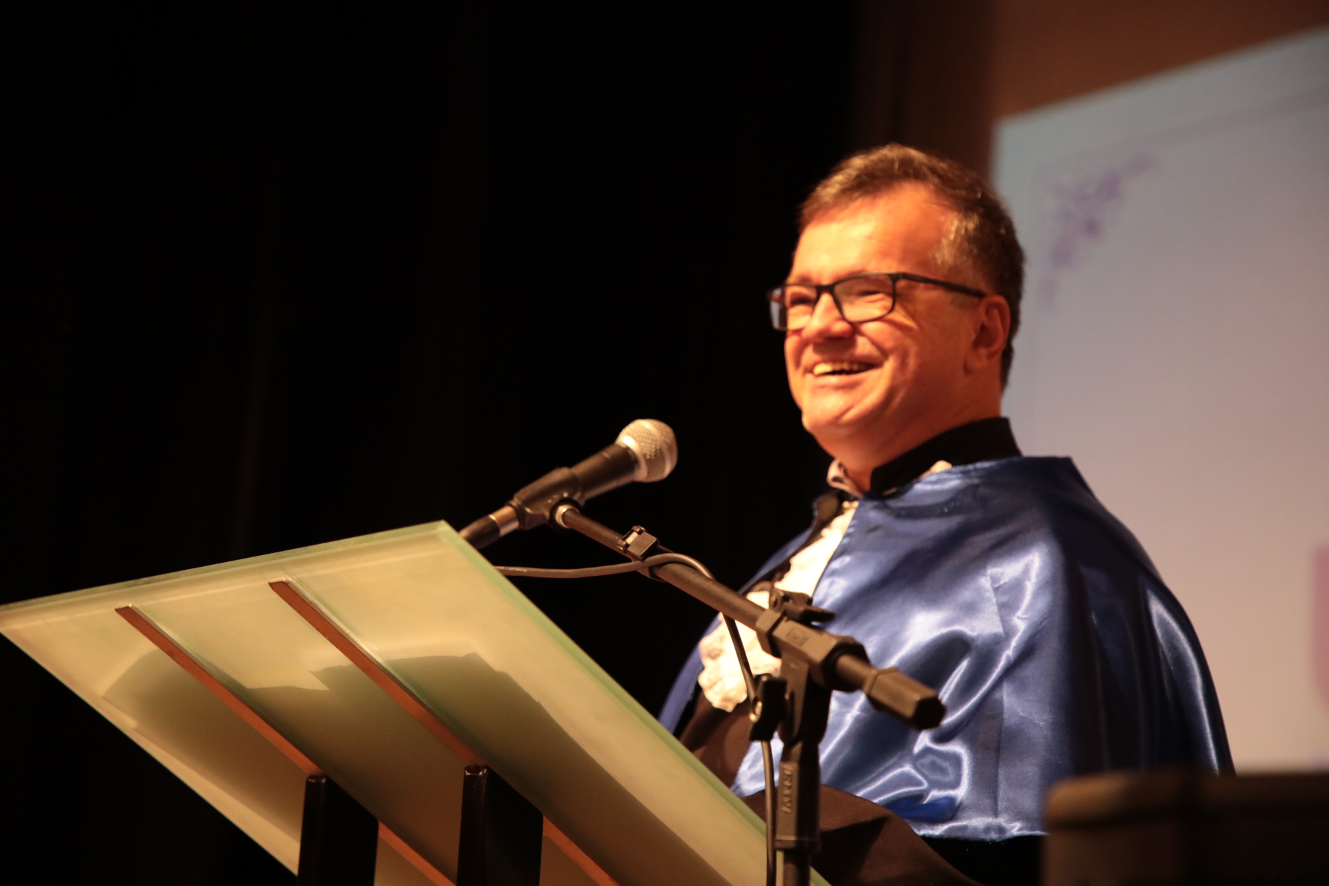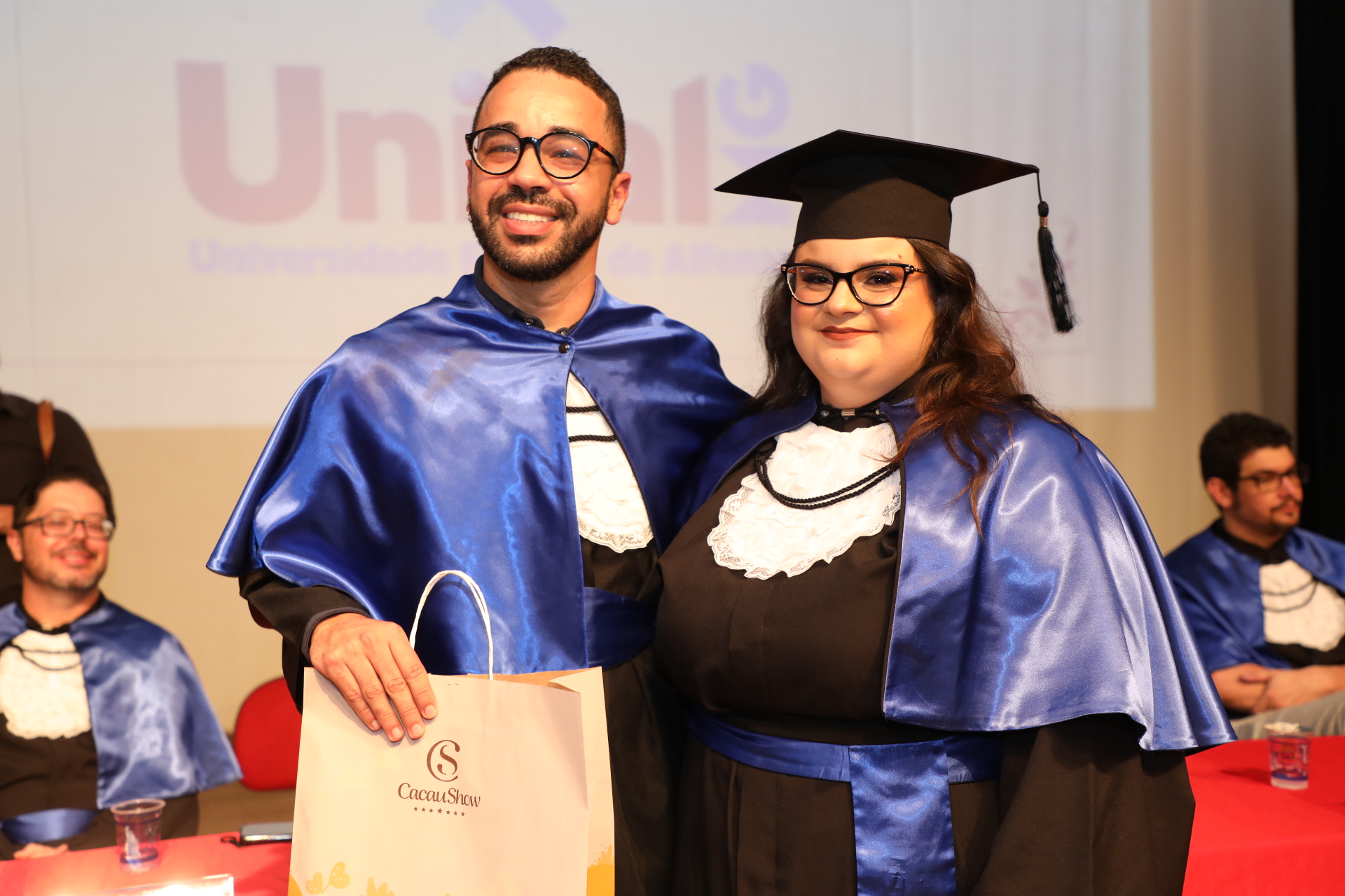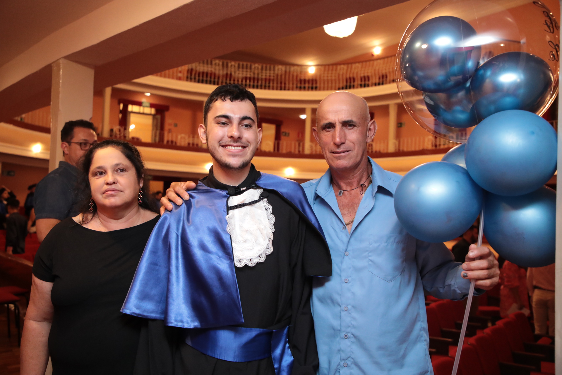 Na oportunidade, o paraninfo do Bacharelado Interdisciplinar em Ciência e Economia, Prof. Vinícius de Souza Moreira, prestou sua homenagem aos profissionais graduados. “Que vocês levem o que aprenderam na sala de aula para tentar mitigar os mais variados e inúmeros problemas que irão encontrar na sociedade: problemas sociais, econômicos e culturais. Que vocês tenham essa responsabilidade de dar o retorno à sociedade pelo investimento e pela oportunidade que foi dada a vocês em se formar em uma universidade pública, gratuita e de qualidade”, aconselhou o docente. “Usem a Ciência e a Economia para levar o que vocês têm de melhor e mudar a sociedade rumo a um mundo mais próspero, mais amigo e mais solidário”, completou.