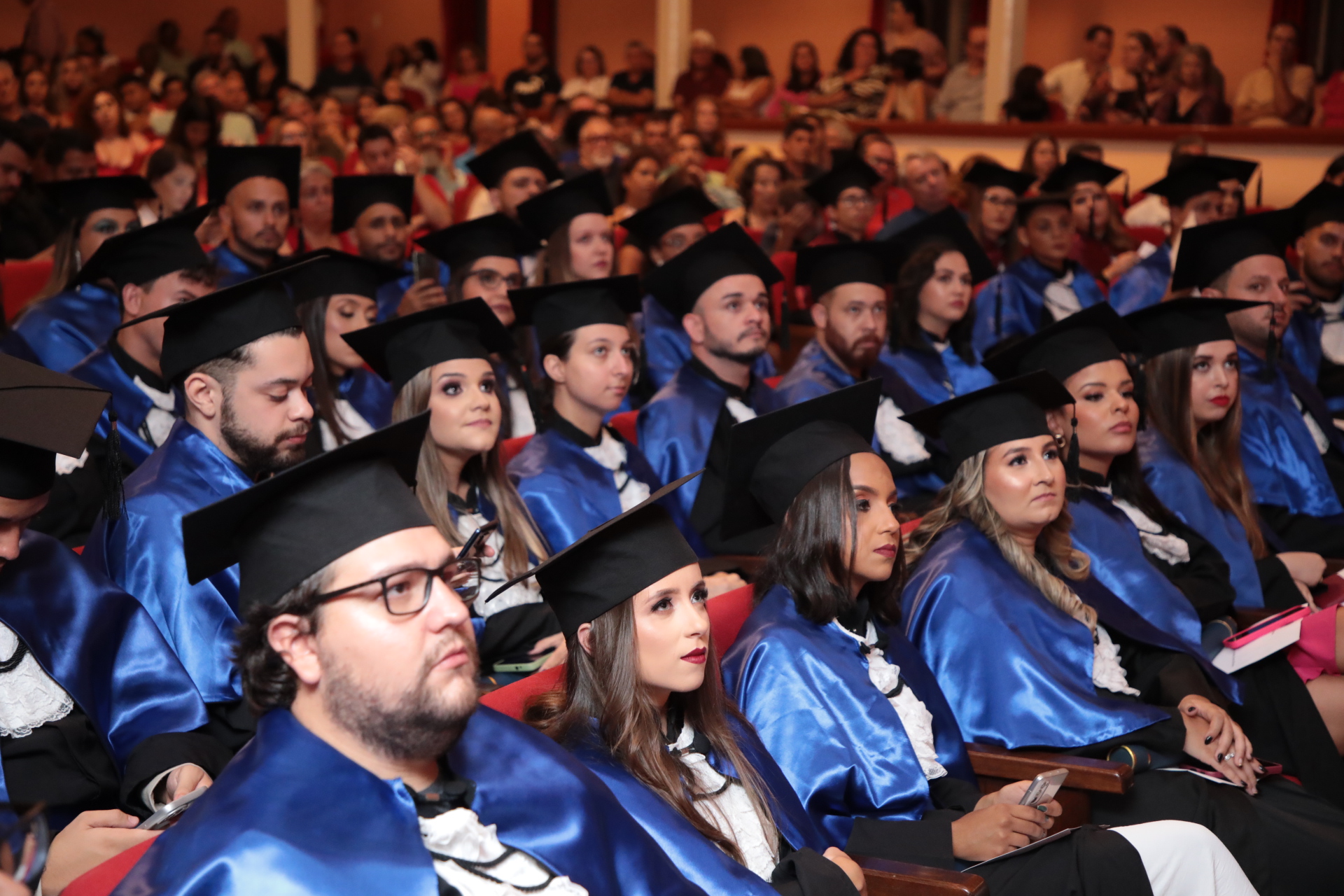 Formandos do curso de Bacharelado Interdisciplinar em Ciência e Economia, Administração Pública, Ciências Atuariais, Ciências Contábeis e Ciências Econômicas, do campus Varginha da UNIFAL-MG, se graduaram na última quinta-feira, 30/03. A cerimônia foi realizada às 19h, no Theatro Capitólio de Varginha. Ao todo, foram 65 profissionais formados pela Instituição.