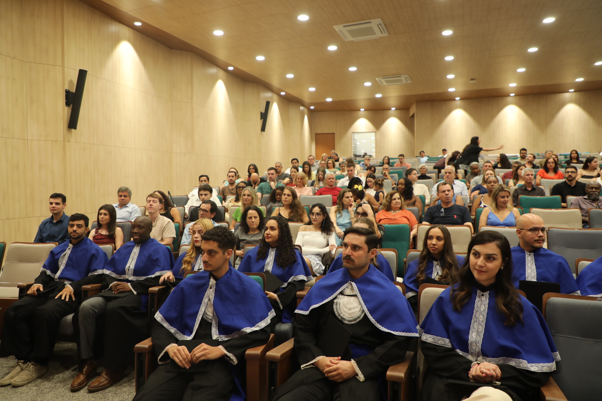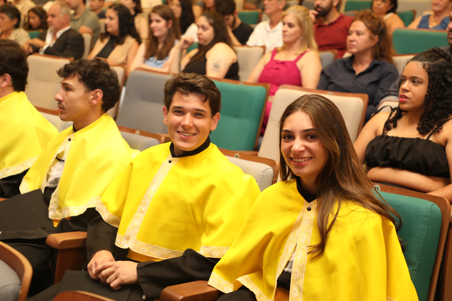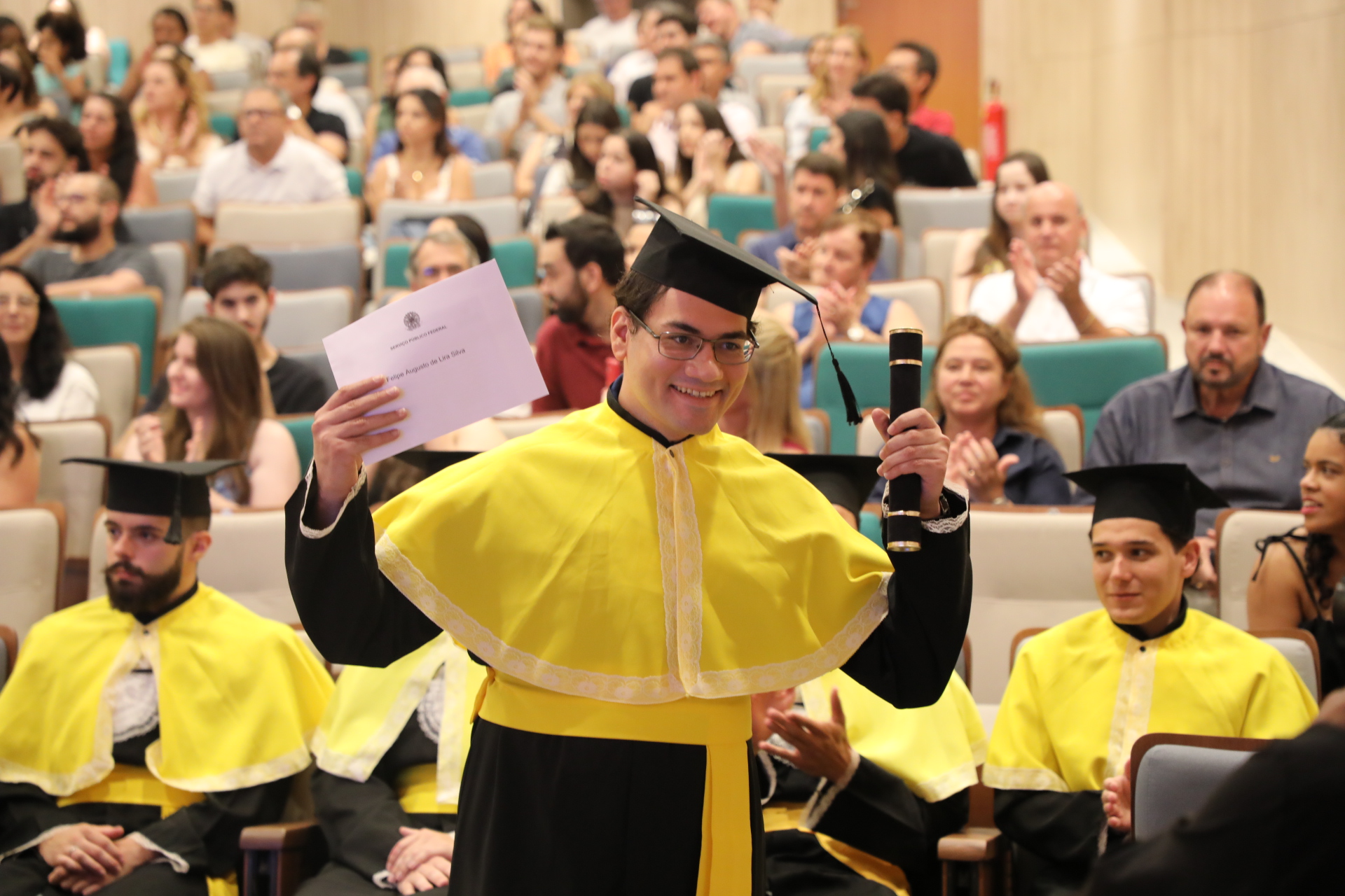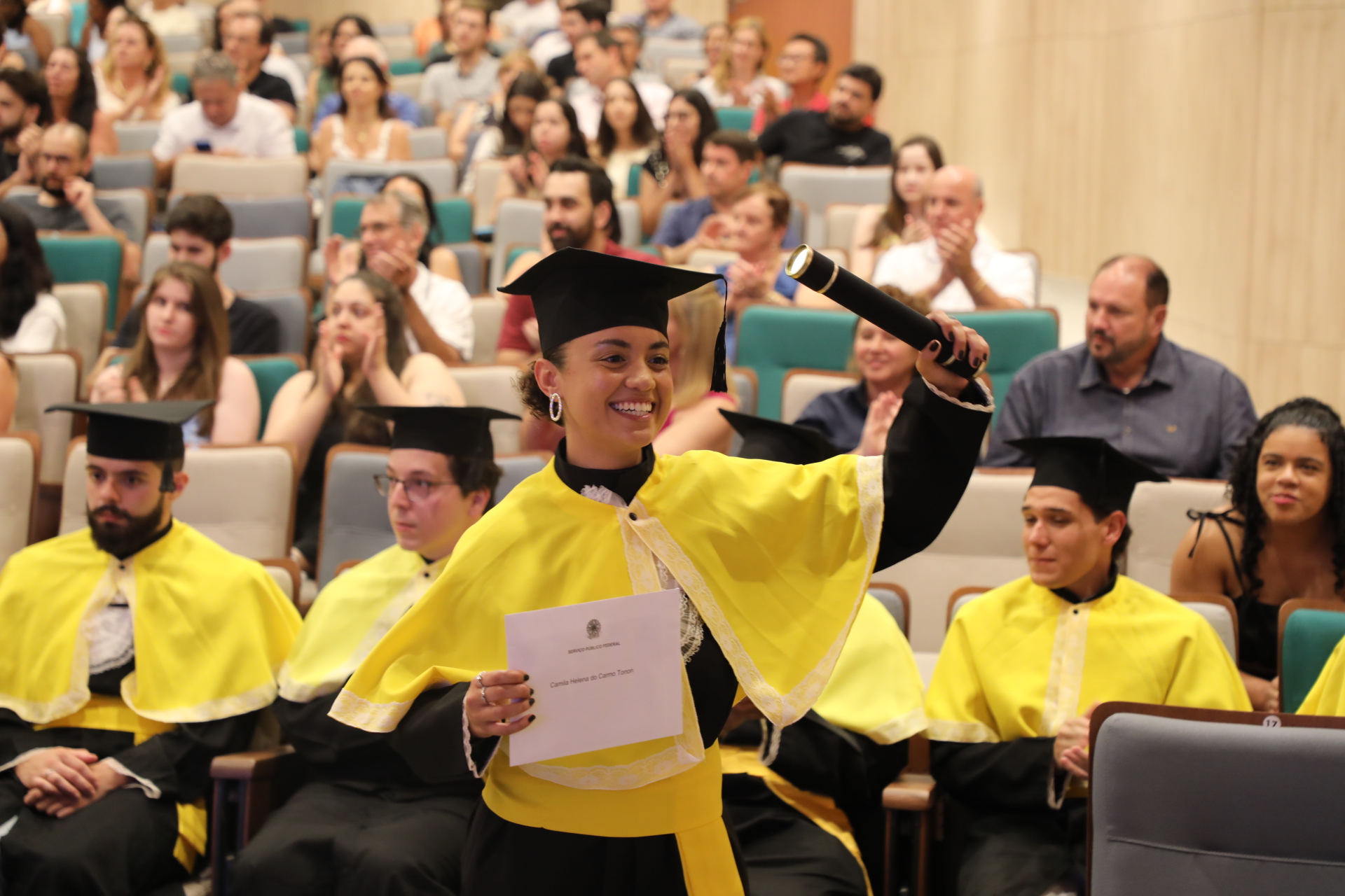 O paraninfo Leandro Lodi destacou a importância de valorizar a ciência. O docente recordou o esforço de gerações de pesquisadores na criação de tratamentos e vacinas e alertou para a “memória curta” da sociedade: “Continuem sempre acreditando na ciência, pois é uma das melhores formas de termos o mundo que queremos.” Ele também incentivou os formandos a conciliarem conhecimento e espiritualidade: “Por que não falar também da fé? Por que não acreditar que há uma força que nos governa e que podemos recorrer a ela para buscar forças e agradecer?”.