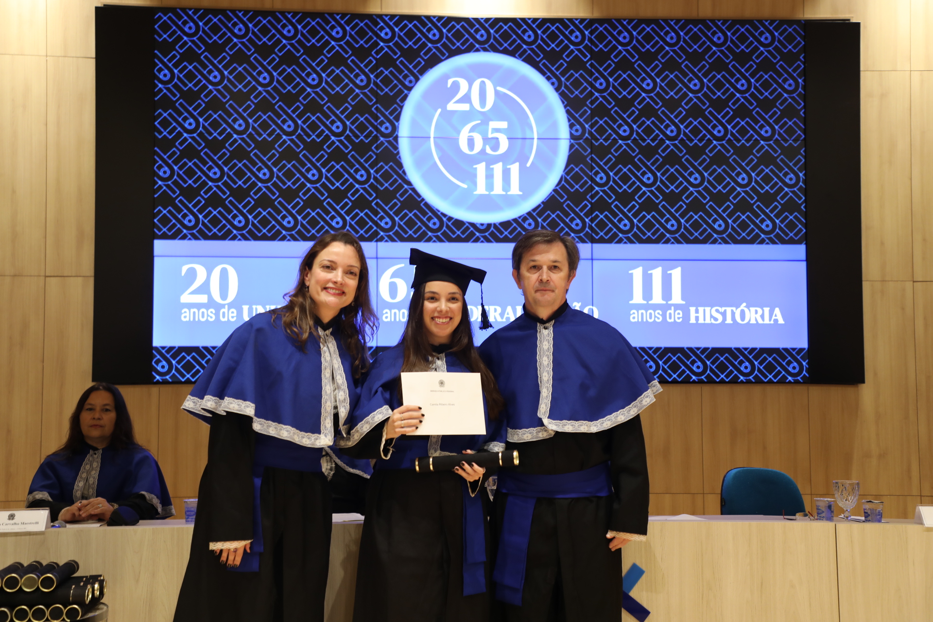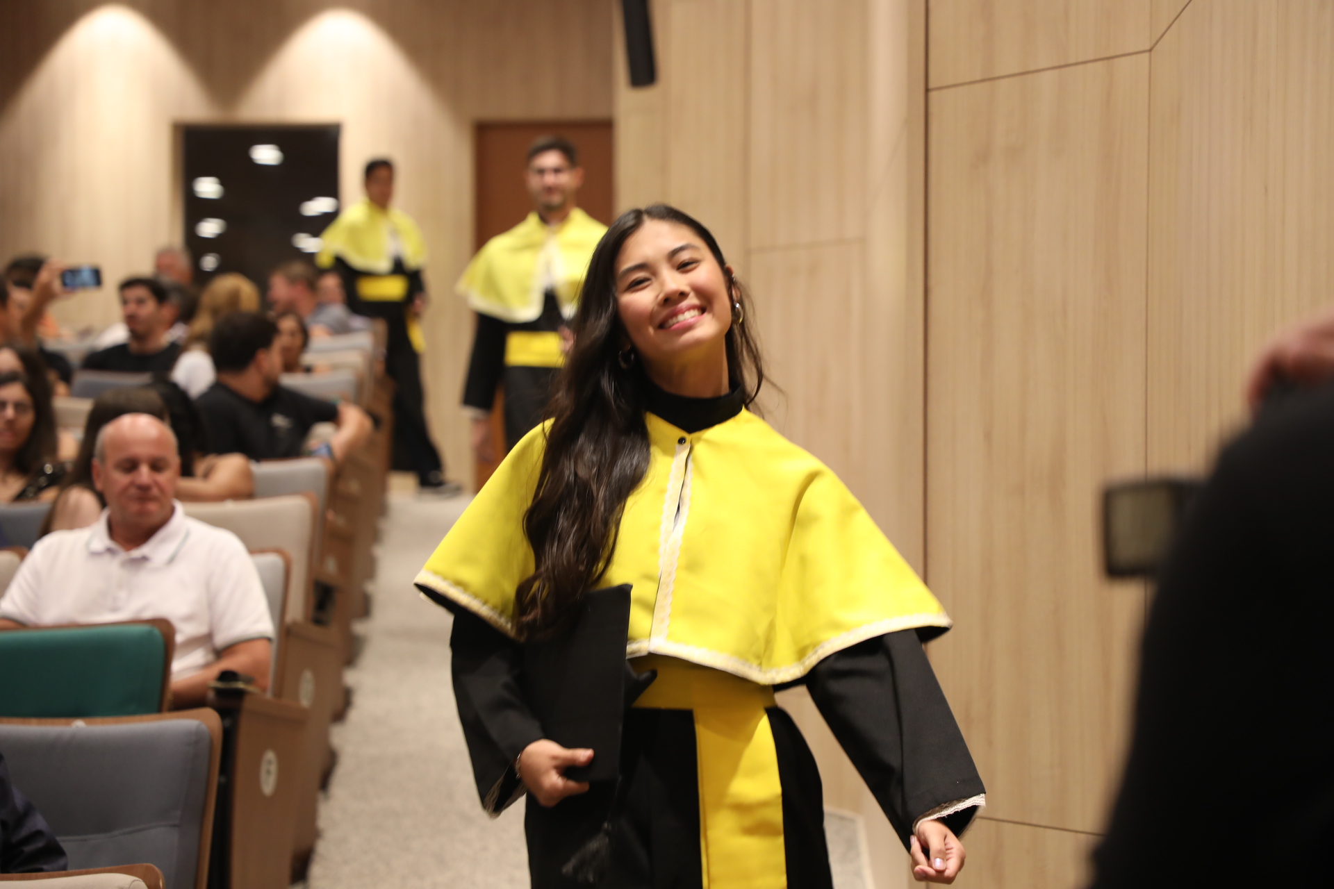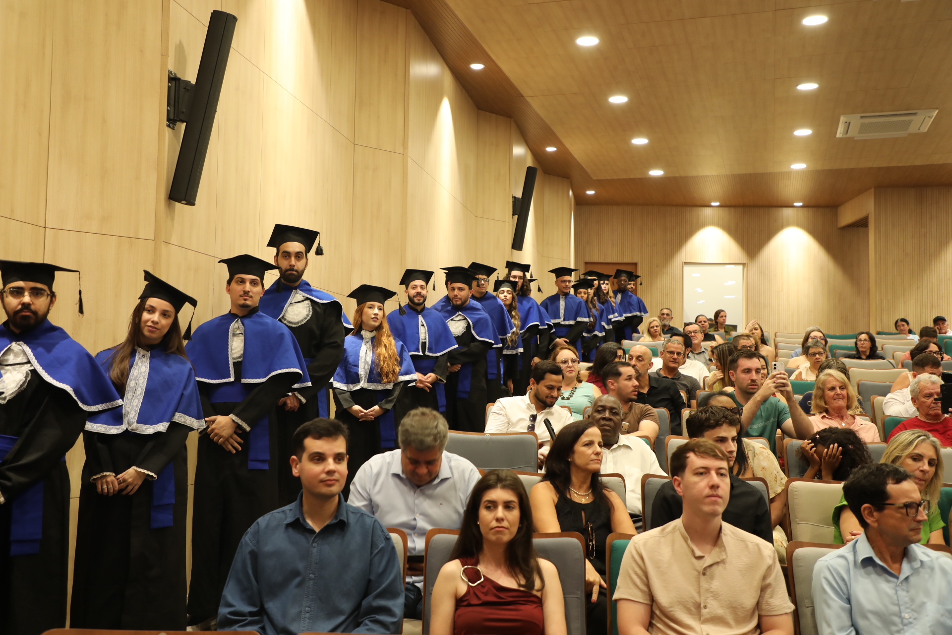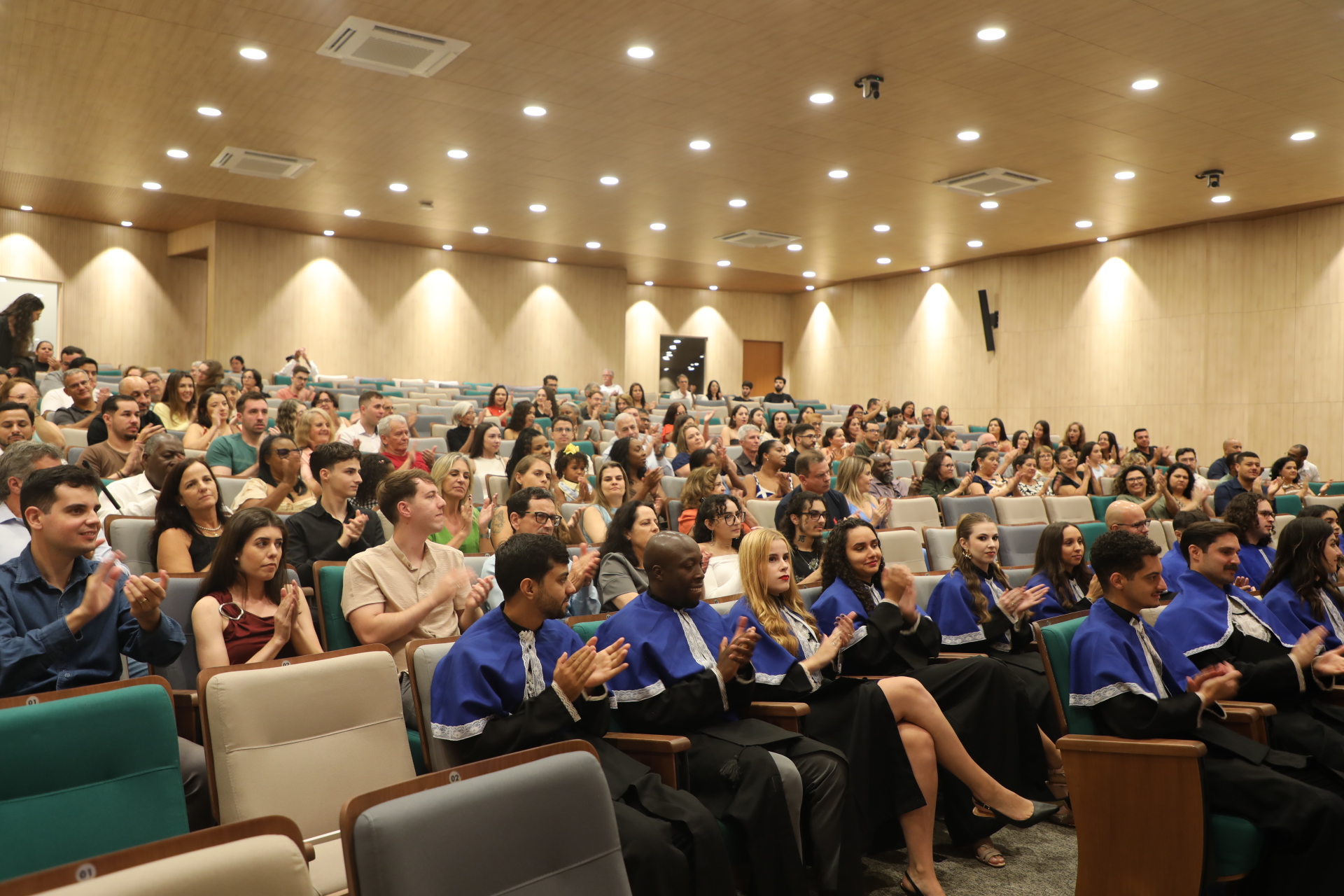 O paraninfo Leandro Lodi destacou a importância de valorizar a ciência. O docente recordou o esforço de gerações de pesquisadores na criação de tratamentos e vacinas e alertou para a “memória curta” da sociedade: “Continuem sempre acreditando na ciência, pois é uma das melhores formas de termos o mundo que queremos.” Ele também incentivou os formandos a conciliarem conhecimento e espiritualidade: “Por que não falar também da fé? Por que não acreditar que há uma força que nos governa e que podemos recorrer a ela para buscar forças e agradecer?”.