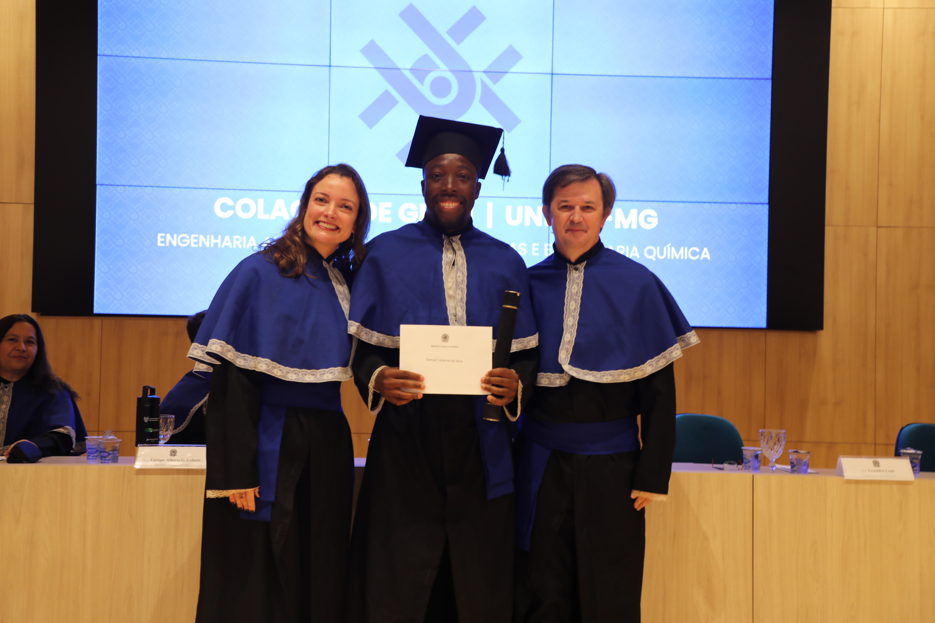 Samuel também agradeceu a professores, técnicos e familiares e salientou que a engenharia exige mais do que fórmulas ou processos: “Aprendemos que cada escolha carrega consequências e que o conhecimento adquirido aqui precisa ser aplicado com consciência e respeito à sociedade.” Em entrevista ao Jornal UNIFAL‑MG, ele homenageou o professor Leandro Lodi, seu paraninfo: “Eu tinha dúvidas quanto à engenharia, mas o professor Lodi abriu caminhos e me mostrou que havia N possibilidades; foi fundamental para eu passar a amar a Engenharia Química”, contou. Campeão de atletismo, Samuel lembrou que a universidade apoiou sua participação em competições nacionais e internacionais.