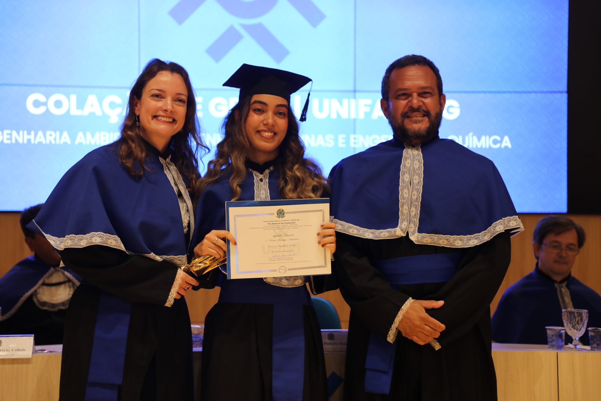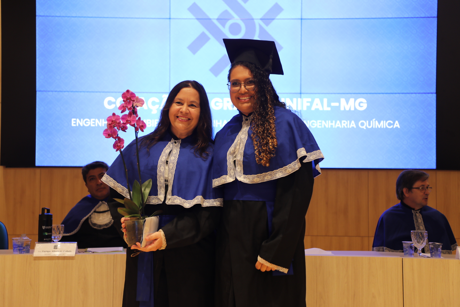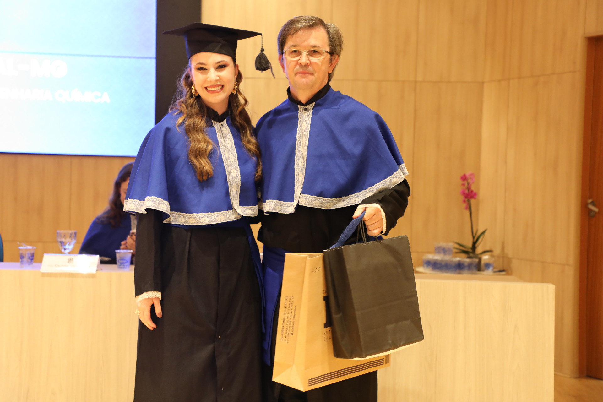 Durante a cerimônia, foram anunciados os destaques acadêmicos: Ana Lídia de Castro (Engenharia Ambiental), Carolina Mendes Gonçalves (Engenharia de Minas) e Isabelle Ferreira (Engenharia Química), que receberam certificados das coordenações dos cursos. Houve ainda homenagens da bacharela Maria Júlia Lordi Dias ao paraninfo Leandro Lodi e de Geiciane de Cássia Piza à professora Sylma Carvalho Maestrelli, escolhida como docente homenageada. A mesa da manhã contou com o vice-diretor do campus, Marlus Pinheiro Rolemberg, o vice‑diretor do Instituto de Ciência e Tecnologia, Enrique Alberto Gallegos Collado, o paraninfo Leandro Lodi, a professora homenageada Sylma Carvalho Maestrelli, e os coordenadores Paulo Henrique Bretanha Junker Menezes (Engenharia Ambiental), Guilherme José Ramos Oliveira Cubi (Engenharia de Minas) e Maurielen Guterres Dalcin (Engenharia Química).