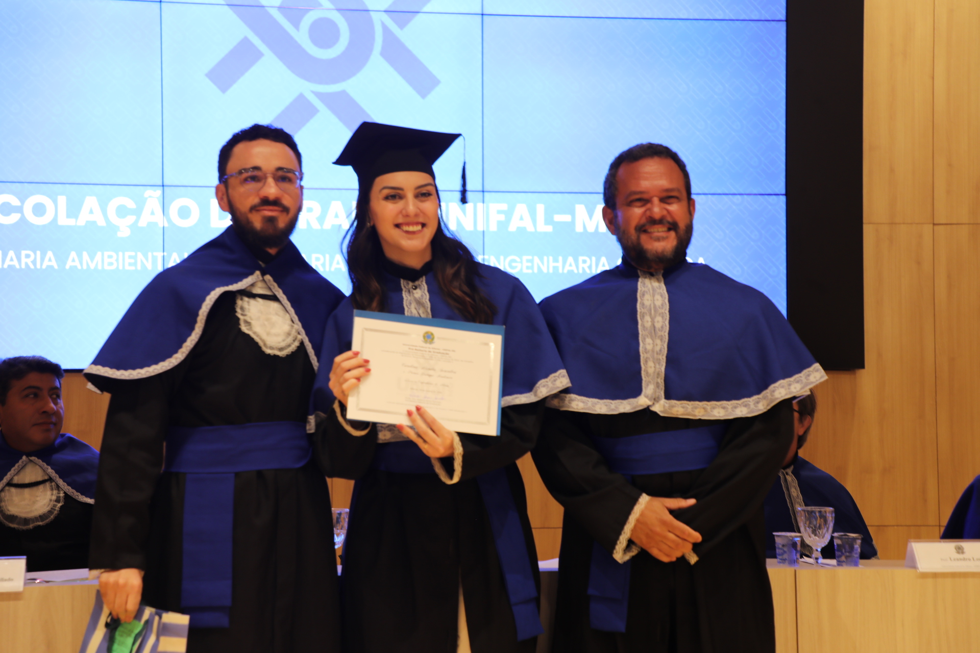 Na sessão matutina, os cursos de Engenharia Ambiental, Engenharia de Minas e Engenharia Química formaram seis, três e 19 estudantes, respectivamente. A juramentista Luiza Costa Cardoso conduziu o juramento com a mão direita estendida, e a capelista Brenda Vitória de Abreu Fonseca recebeu o capelo em nome dos colegas. O orador Samuel Venâncio da Silva ressaltou que a formatura representa o fechamento de um ciclo e o início de uma missão social: “Hoje não celebramos apenas a conclusão de um curso. Celebramos o encerramento de um ciclo que nos transformou como estudantes, como profissionais e, acima de tudo, como pessoas”, disse ele, lembrando que defender a universidade pública é defender a pesquisa e a formação profissional.
