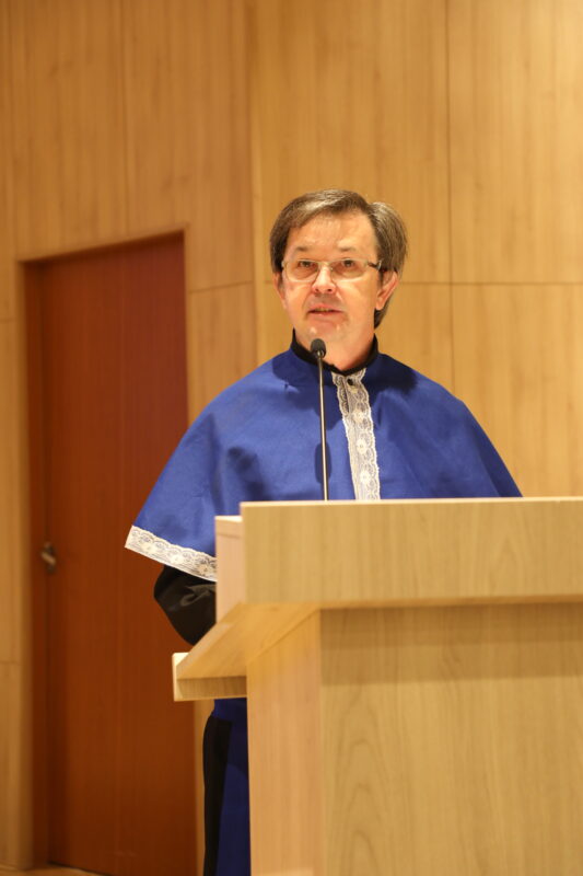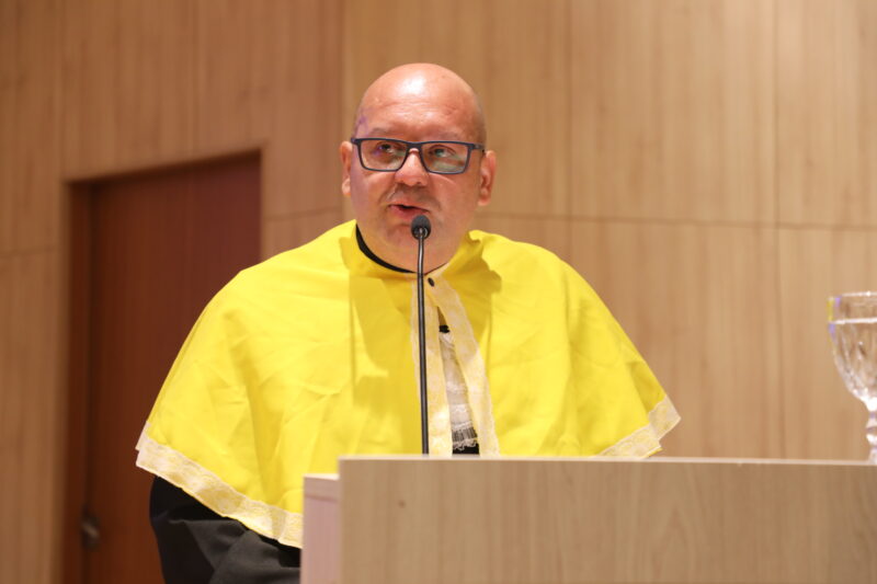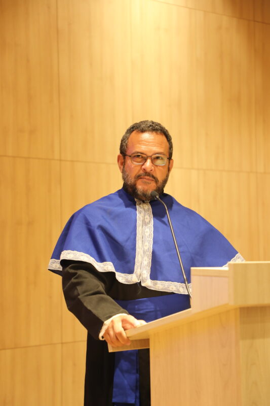 O paraninfo do BICT, professor Roni Antônio Mendes, fez uma reflexão sobre a importância de manter a mente aberta e de cultivar duas asas: conhecimento e amor. “A vida, como a ciência, não é linear; ela é caótica, dinâmica. Estejam prontos para agarrar as oportunidades, mesmo aquelas que vêm disfarçadas… Se a porta da frente estiver fechada, vocês têm a competência para projetar uma janela lateral”, disse. Em seguida, encorajou os novos bacharéis a ousarem e a aplicarem a tecnologia para o bem humano: “Tenham a ousadia de aplicar a tecnologia para o bem humano. O mundo precisa da inteligência de vocês, da técnica de vocês, mas precisa, acima de tudo, que vocês sejam pessoas boas.”