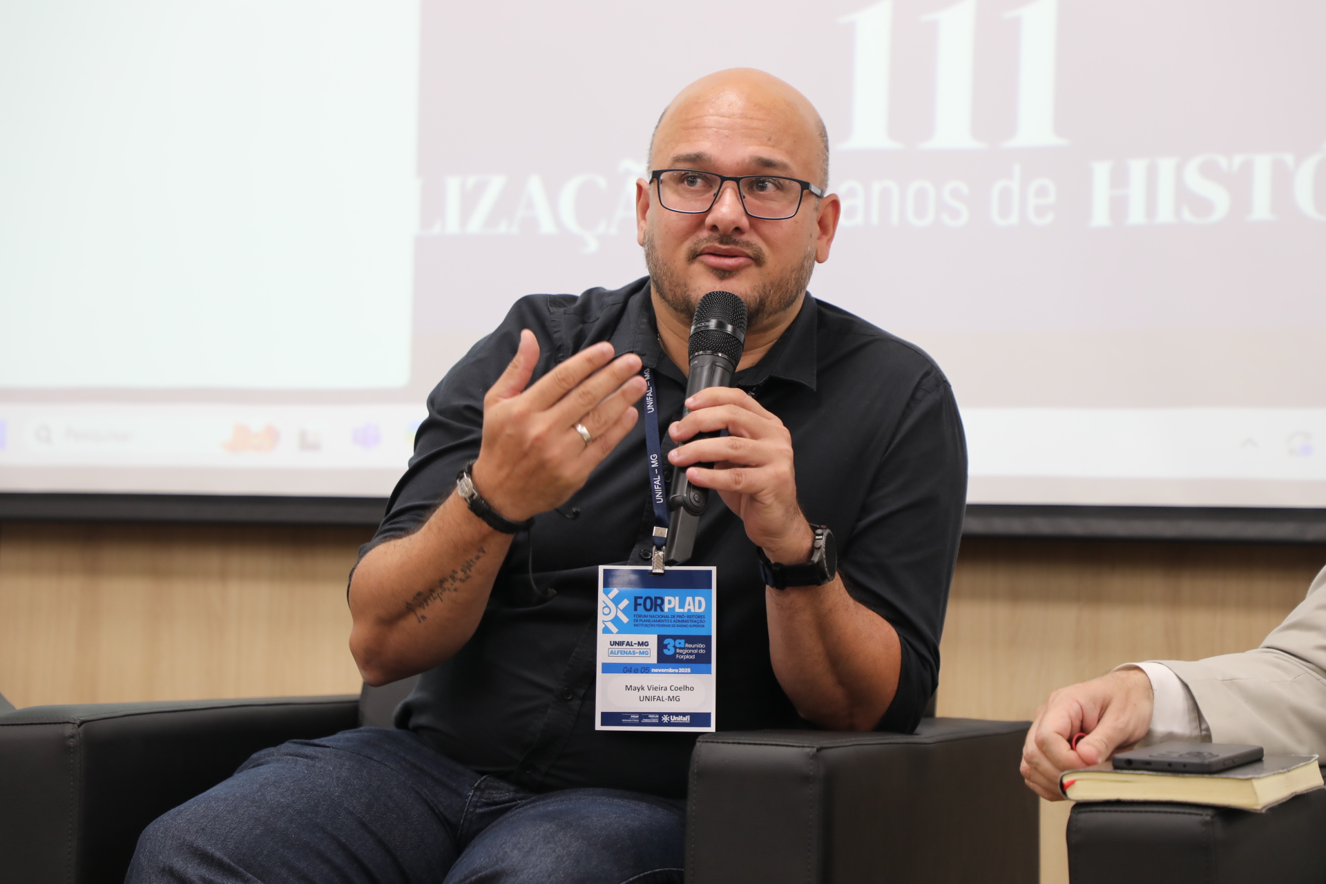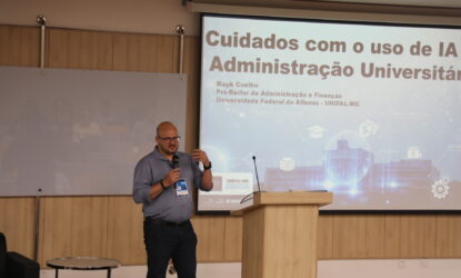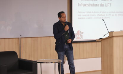 A programação do segundo dia de atividades, quarta (5), incluiu as mesas temáticas: “Contratos de Faciliti”, com a participação de João Batista Martins Teixeira (UFT), e “Cuidados com o uso de IA na Administração de uma Universidade Federal”, apresentada pelo professor Mayk Coelho, pró-reitor de Administração da UNIFAL-MG.