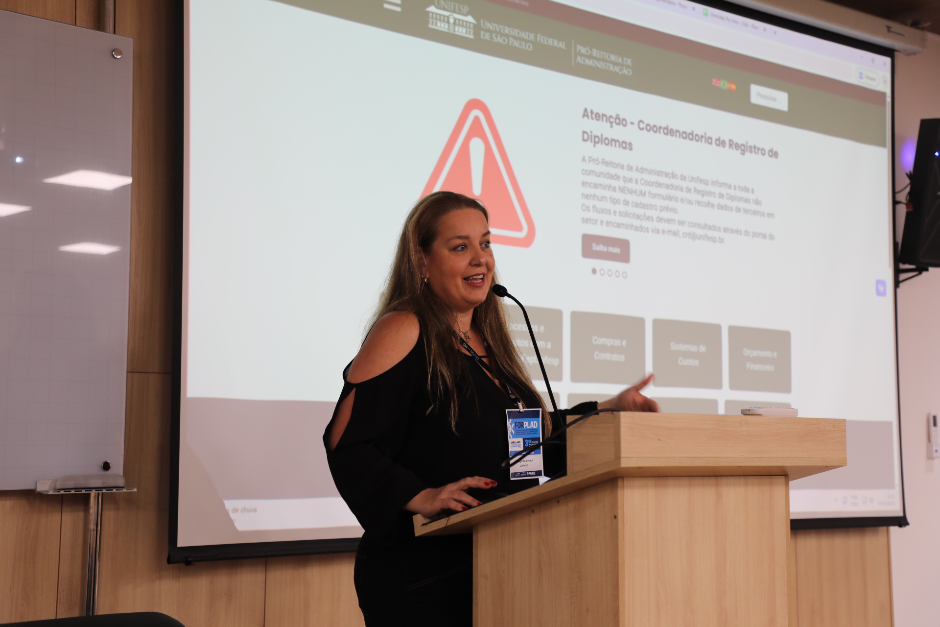 No primeiro dia do encontro, na terça (4), ocorreu o painel sobre Custos e Execução Orçamentária, ministrado pela professora Georgia Mansour, pró-reitora de Administração da Unifesp.
