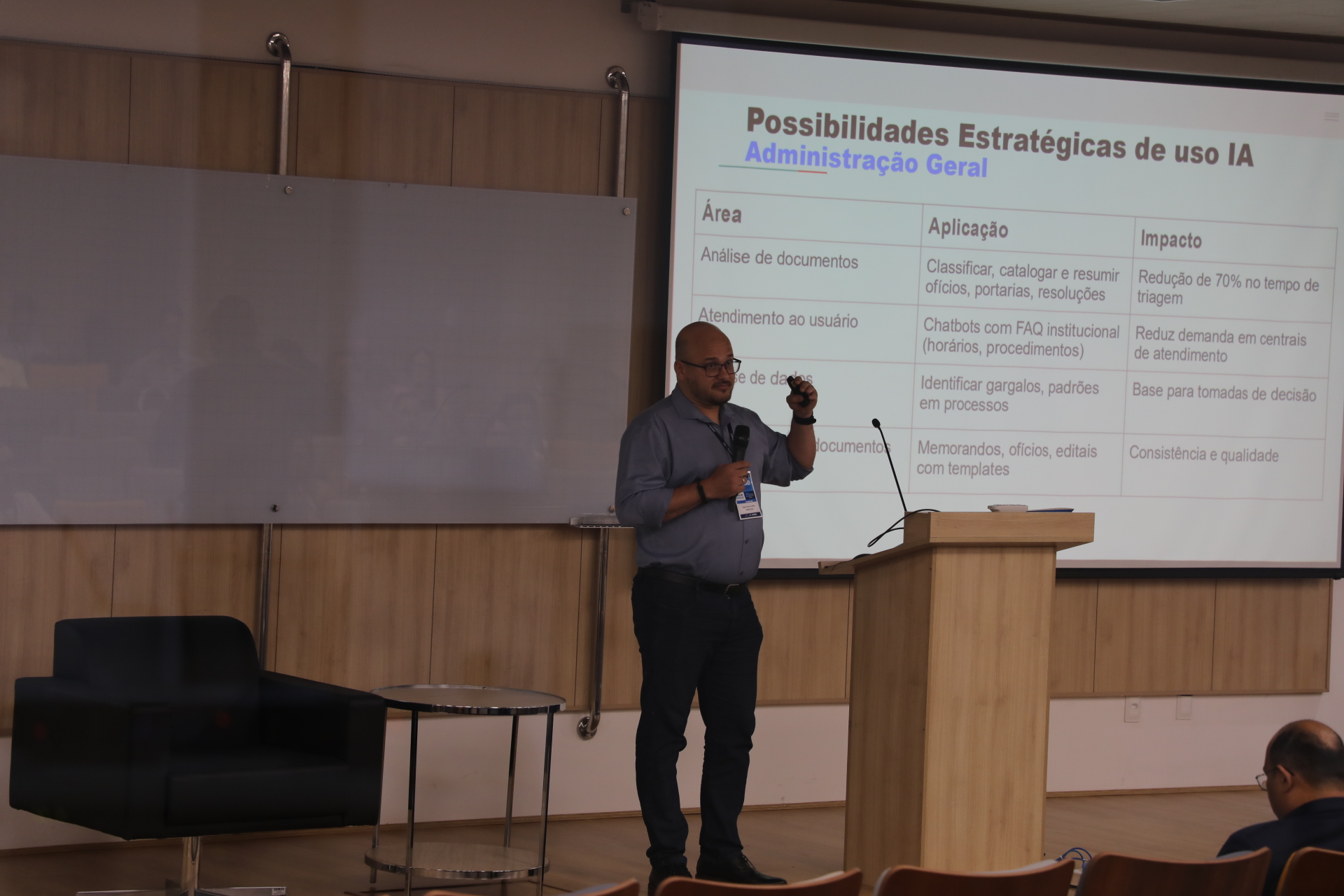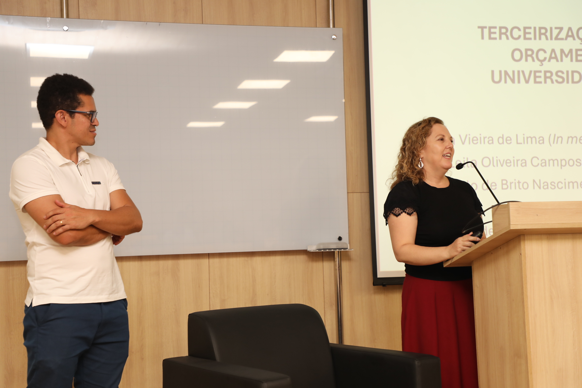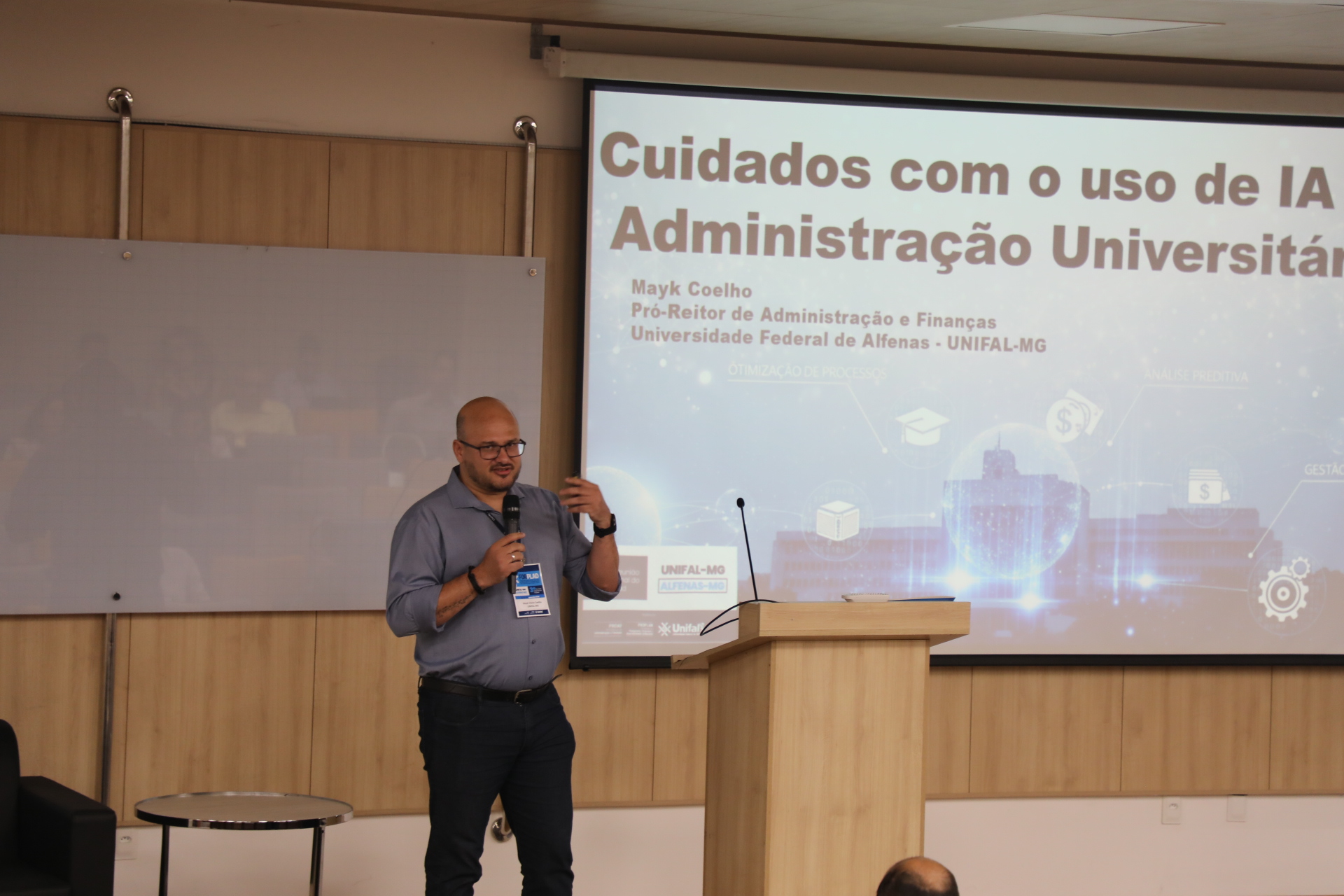 A programação do segundo dia de atividades, quarta (5), incluiu as mesas temáticas: “Contratos de Faciliti”, com a participação de João Batista Martins Teixeira (UFT), e “Cuidados com o uso de IA na Administração de uma Universidade Federal”, apresentada pelo professor Mayk Coelho, pró-reitor de Administração da UNIFAL-MG.
