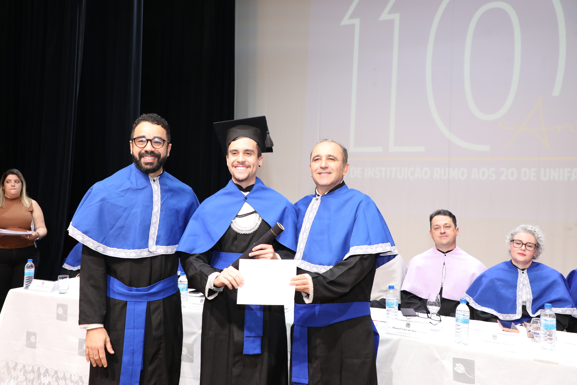 A cerimônia foi precedida pelo vice-reitor da Instituição, Prof. Alessandro Antônio Costa Pereira, e contou com a participação de representantes docentes e das coordenações dos cursos, assim como familiares e amigos dos formandos.