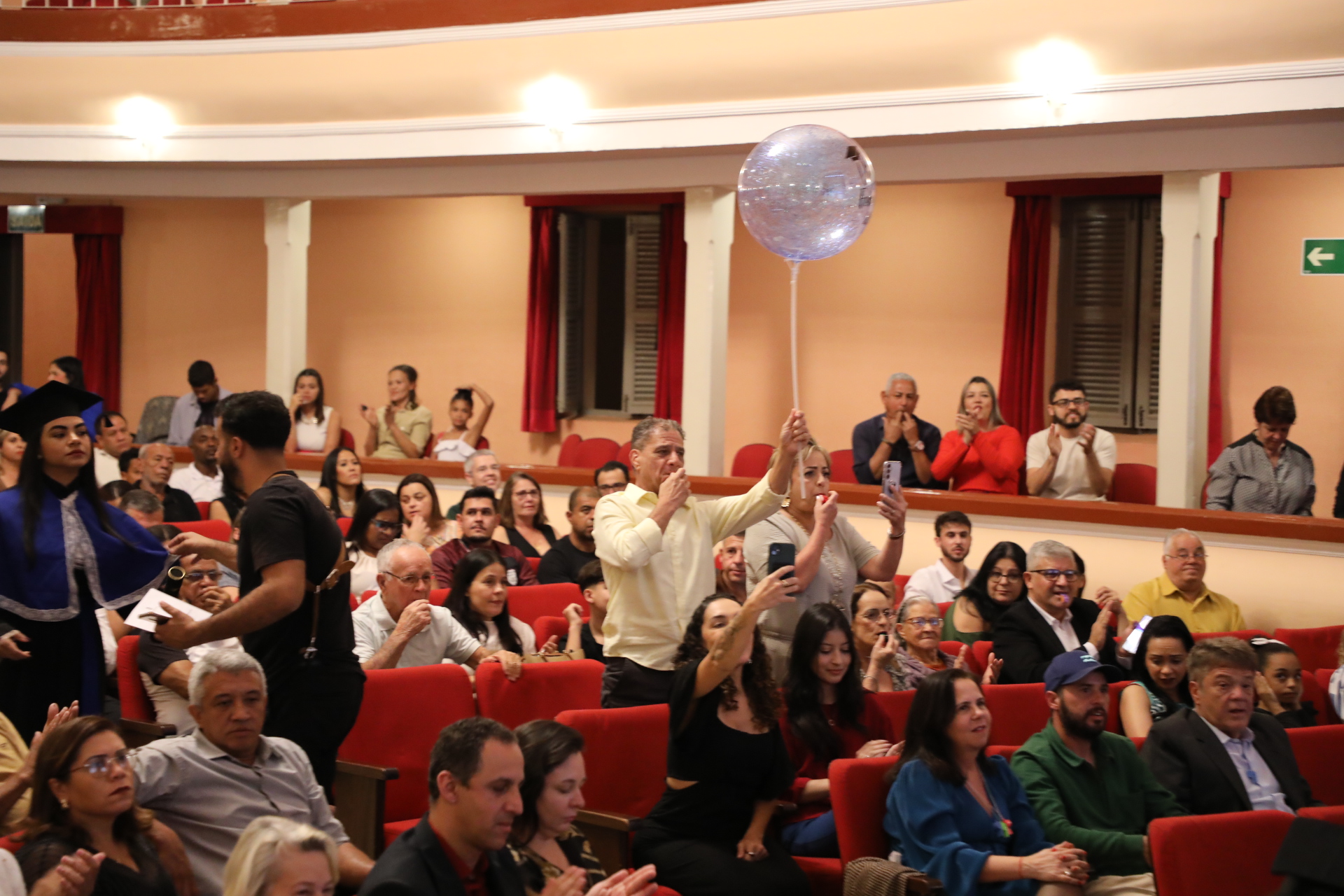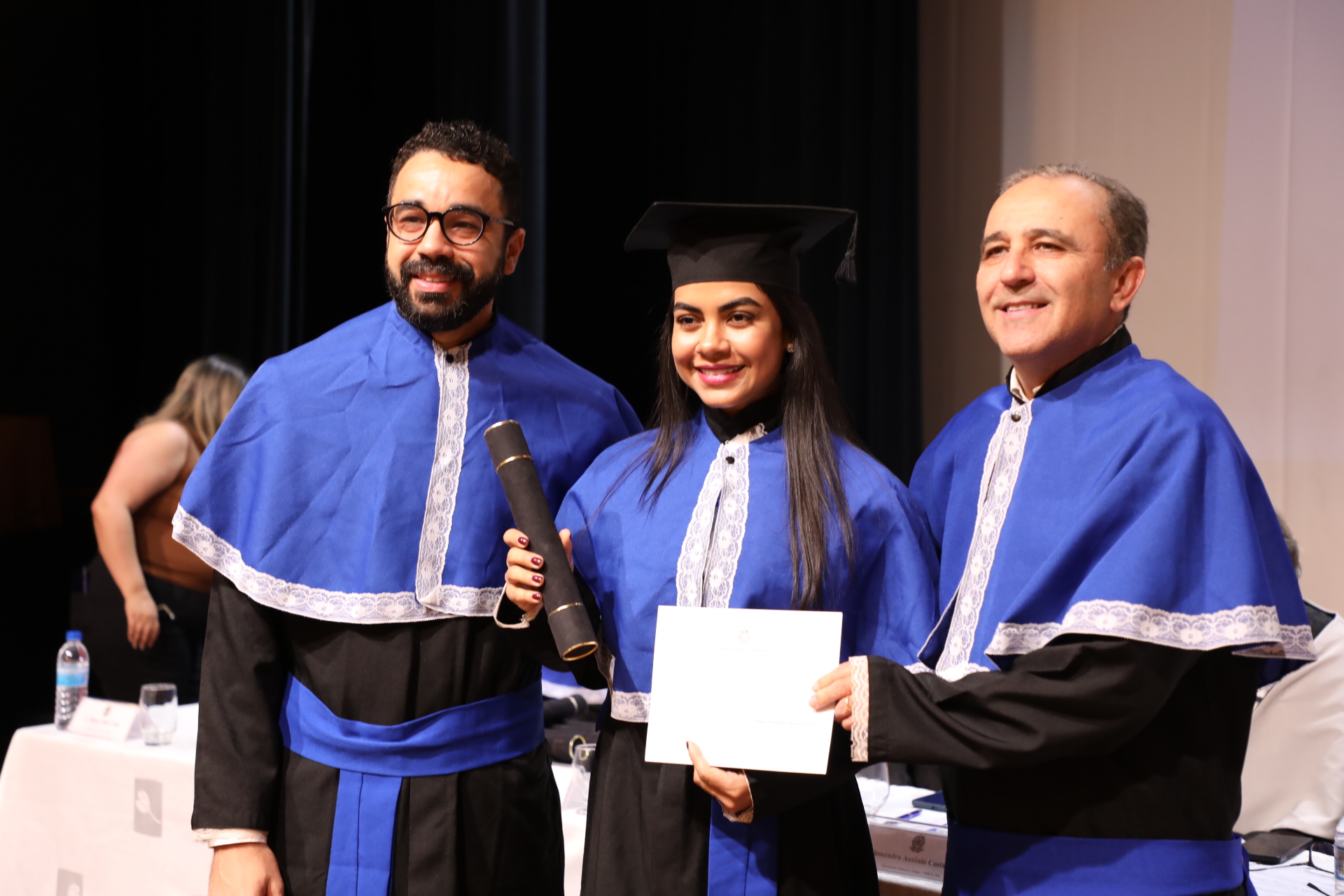 Após fazerem o juramento, o bacharel em Ciência e Economia, Luís Otávio Andrade Marques, recebeu o capelo das mãos do vice-reitor, que conferiu os graus de bacharel e bacharelas aos estudantes presentes na solenidade, e os profissionais formados receberam seus diplomas pelas mãos dos coordenadores de cada curso e paraninfos.
