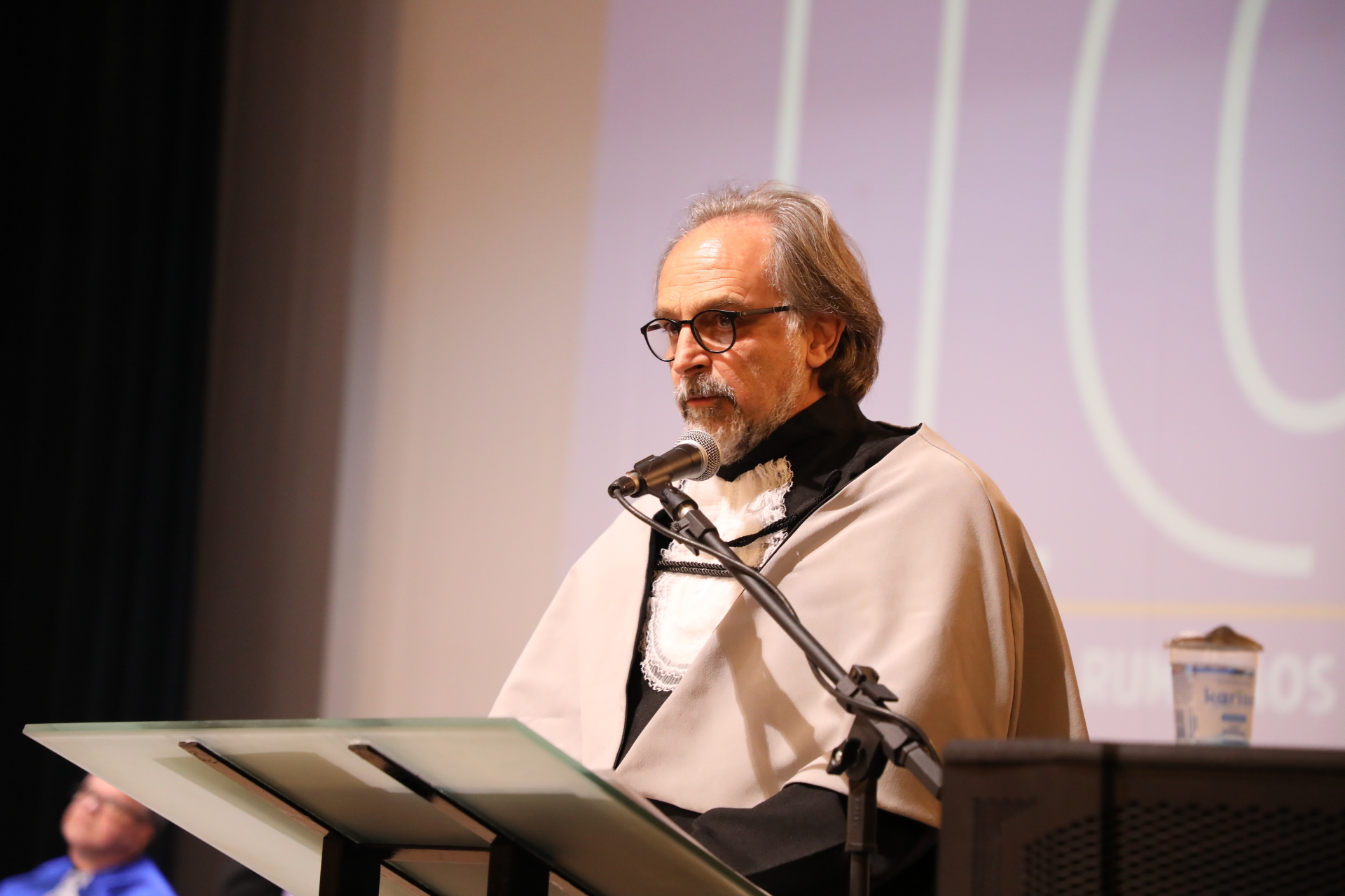 O vice-reitor da Universidade, Prof. Alessandro Pereira, pontuou, em sua fala, os três pilares que balizam a atuação da Universidade; Ensino, Pesquisa e Extensão; destacando a relevância da indissociabilidade entre eles e da inclusão para que a Instituição continue funcionando. Ainda, o vice-reitor frisou a importância do respeito ao juramento feito pelos profissionais na erradicação das desigualdades sociais. “Tenham como objetivo máximo construir uma sociedade livre, justa e solidária. Sejam fiéis aos princípios da ética, da liberdade e da diversidade”, finalizou o vice-reitor, Prof. Alessandro Pereira.
